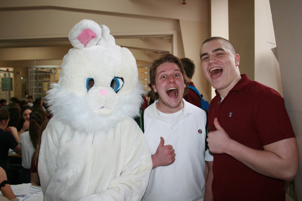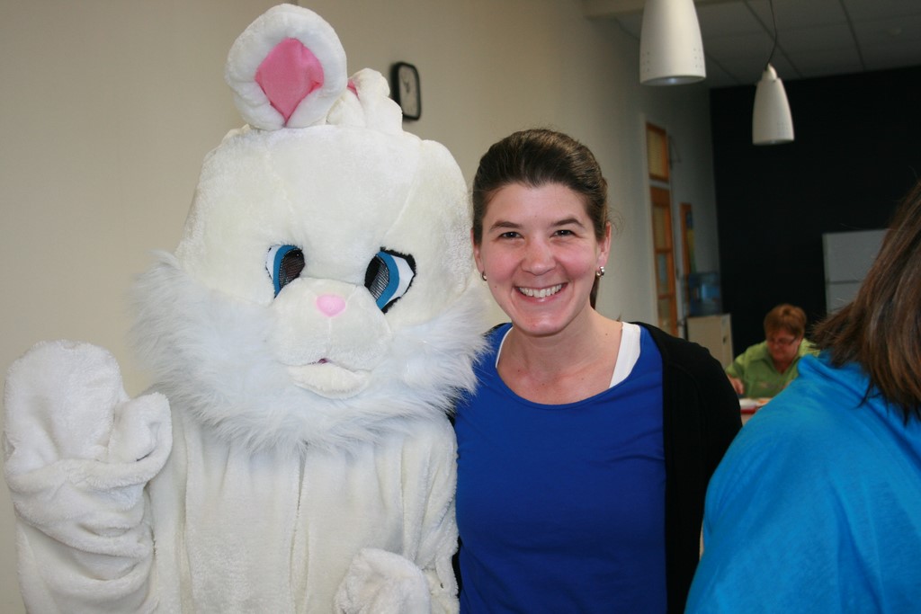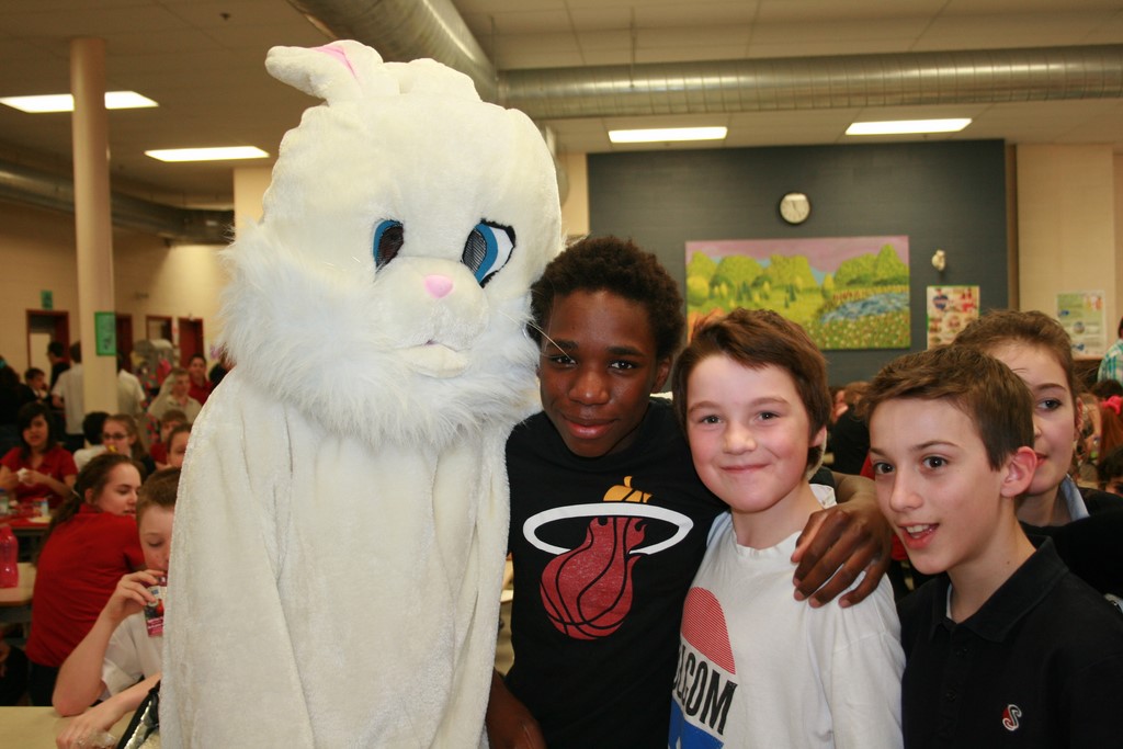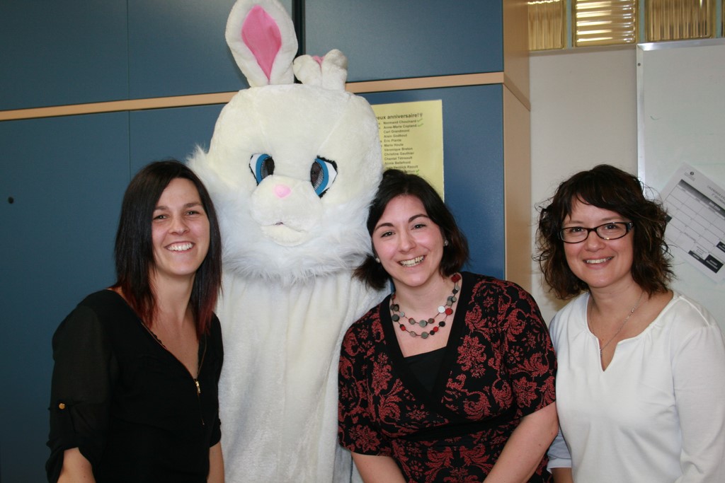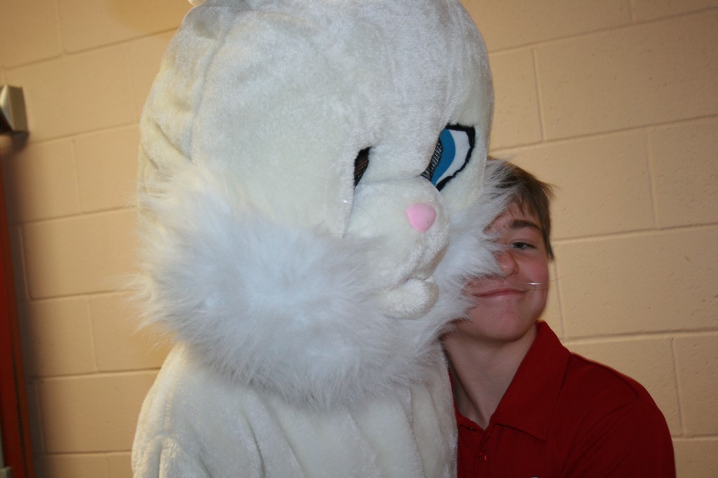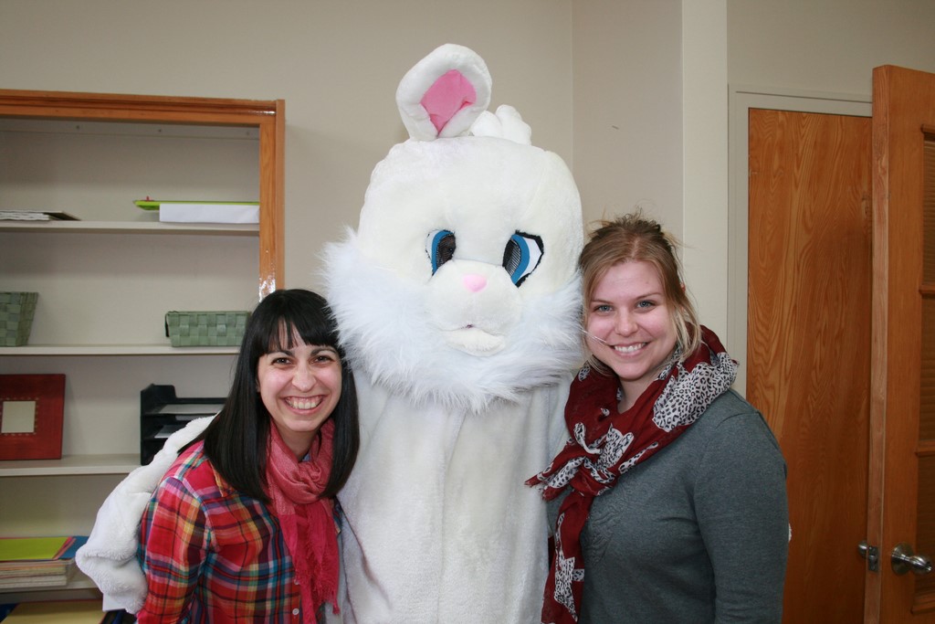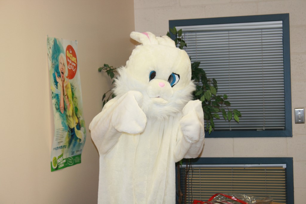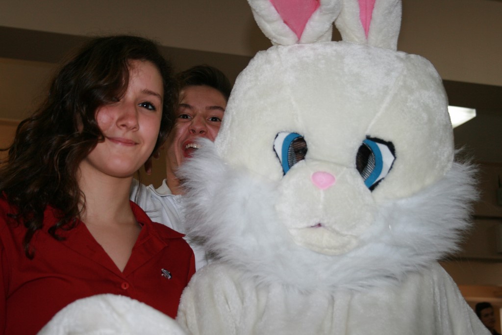 Plusieurs photos avec la mascotte de Pâques