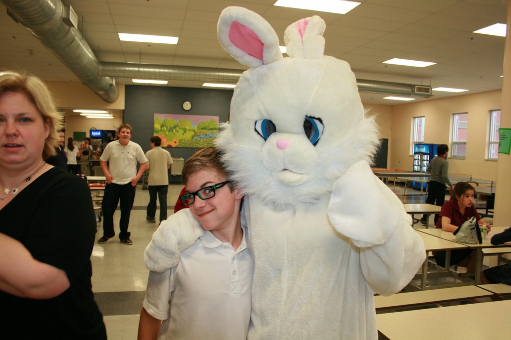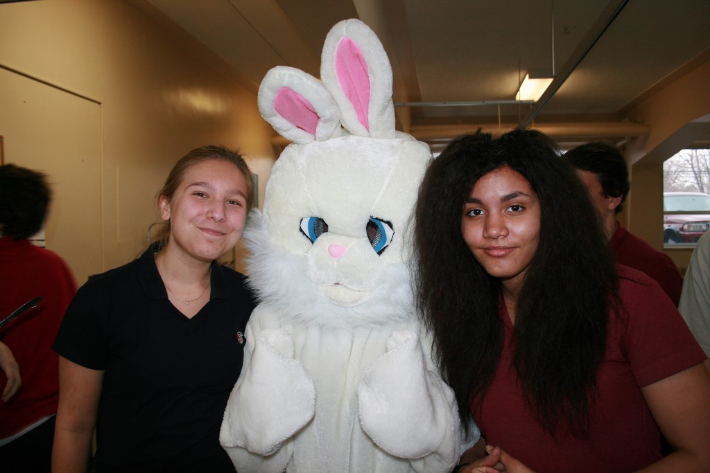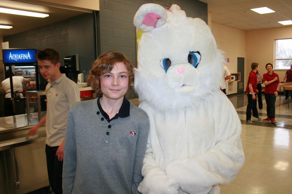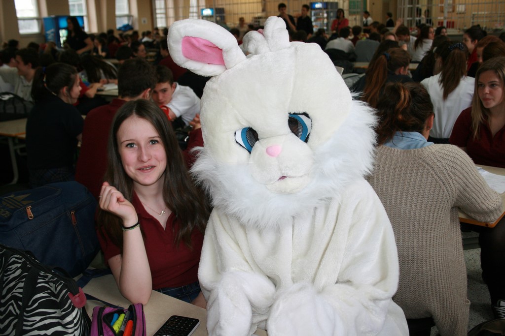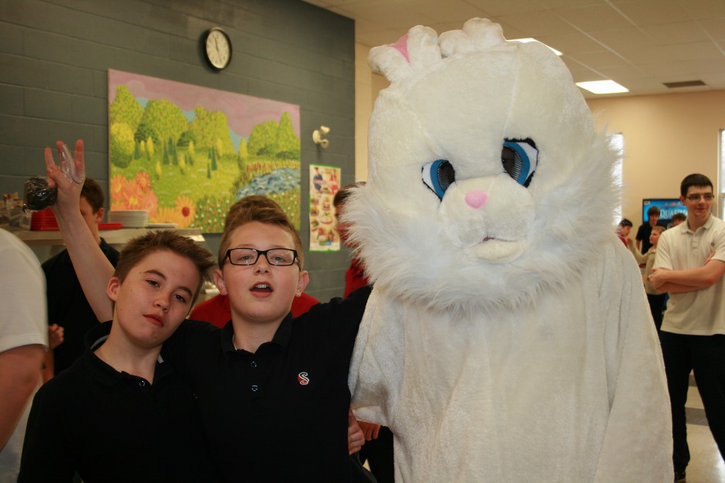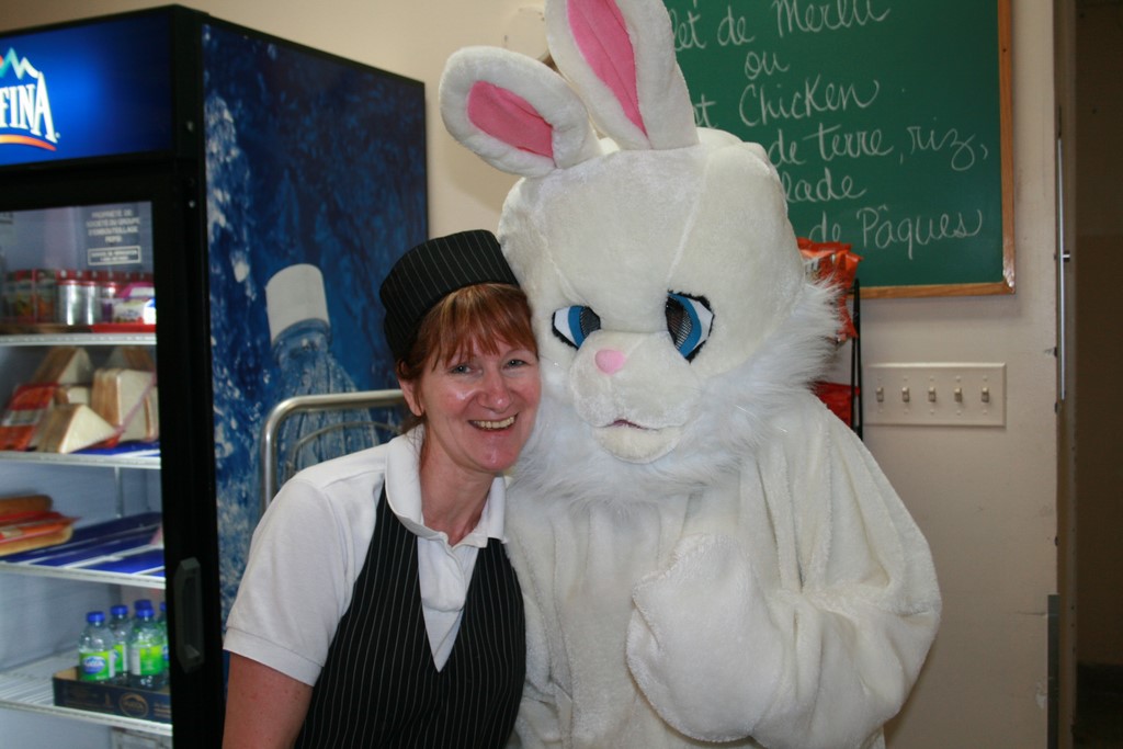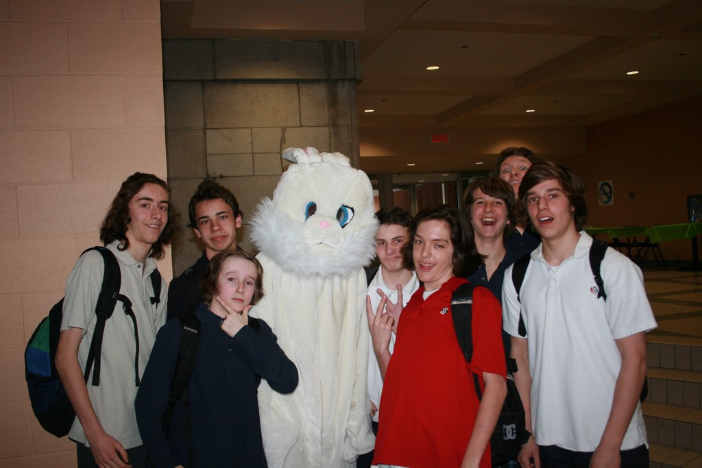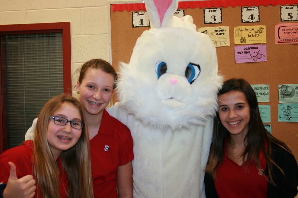 Plusieurs photos avec la mascotte de Pâques