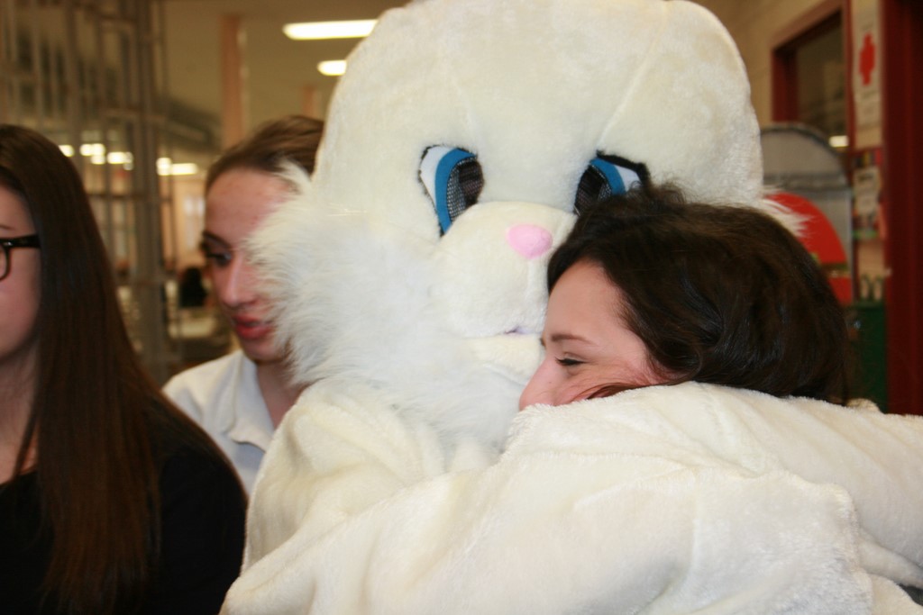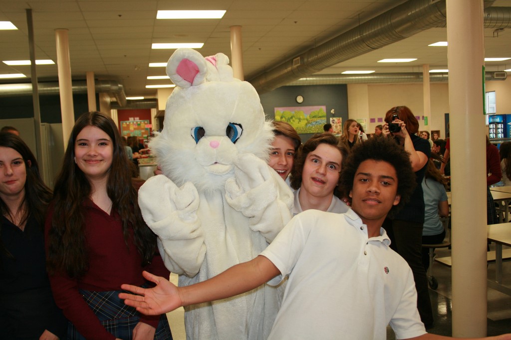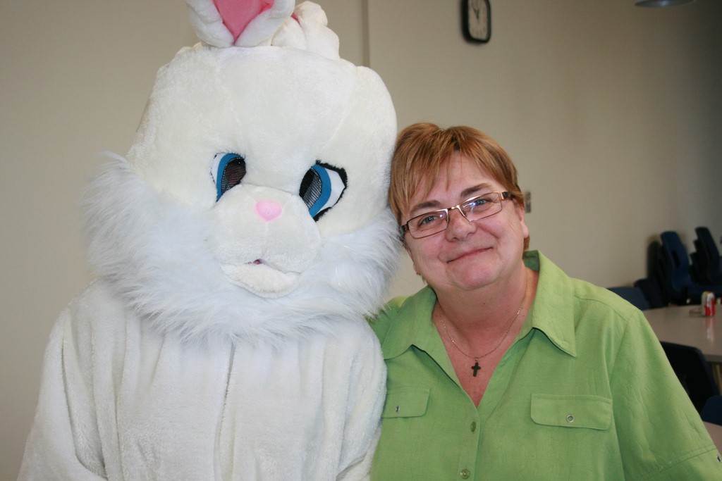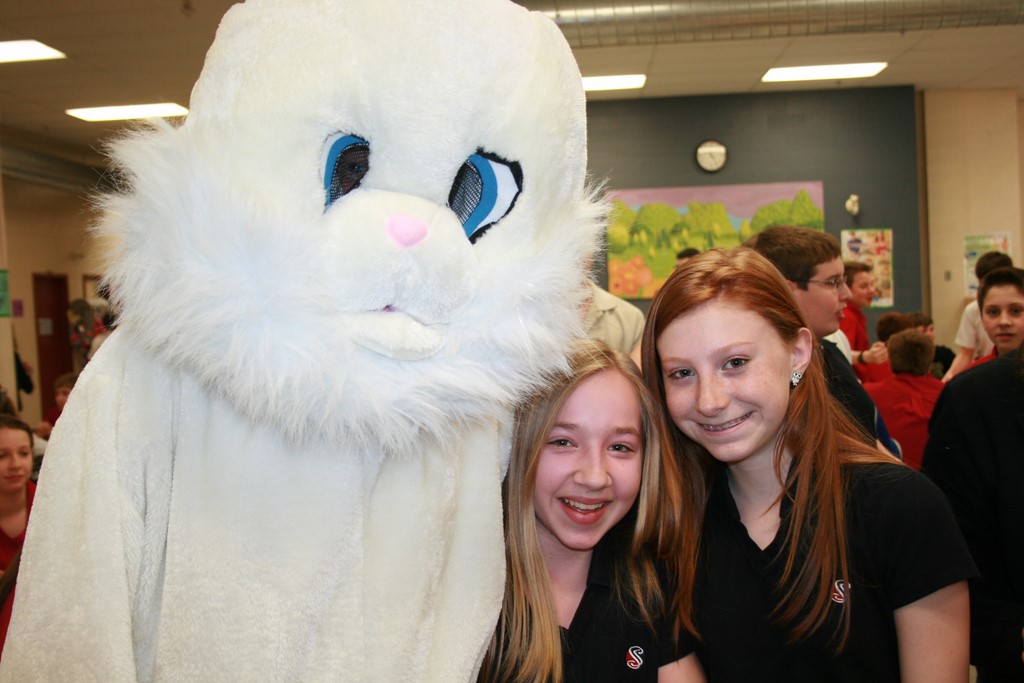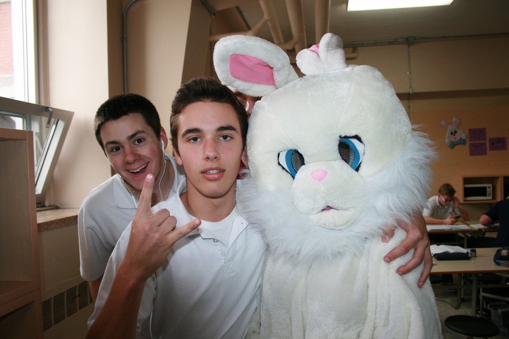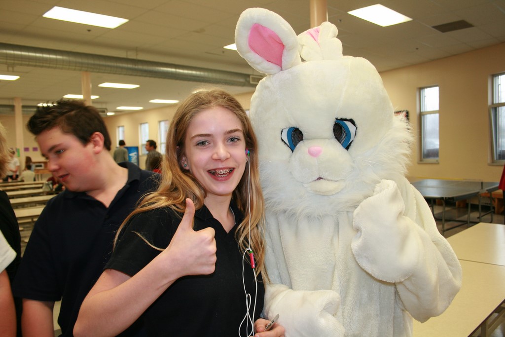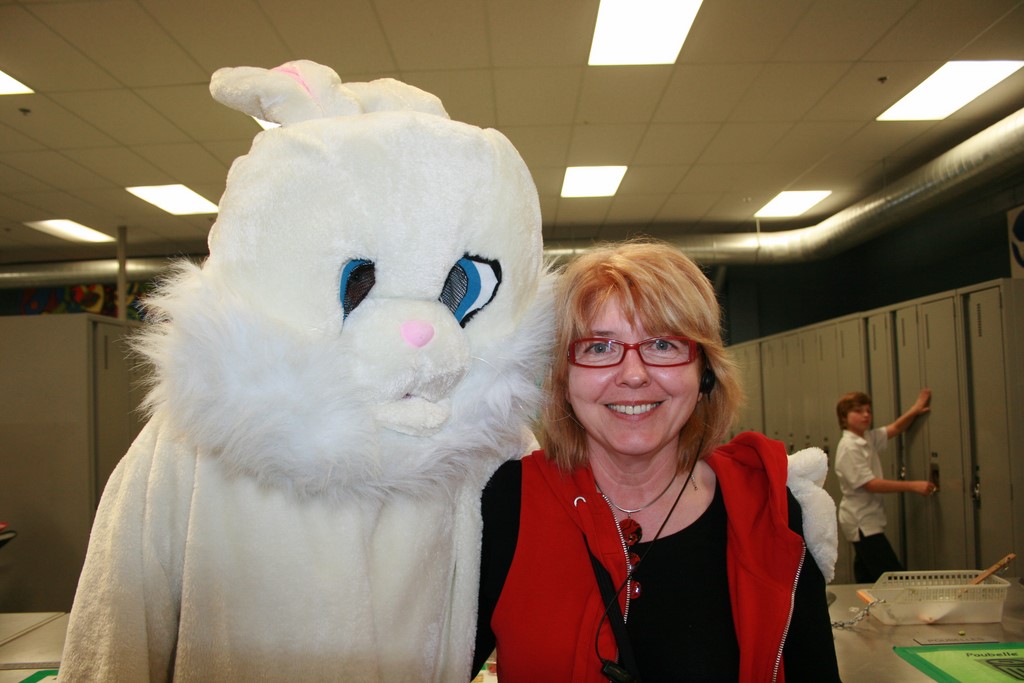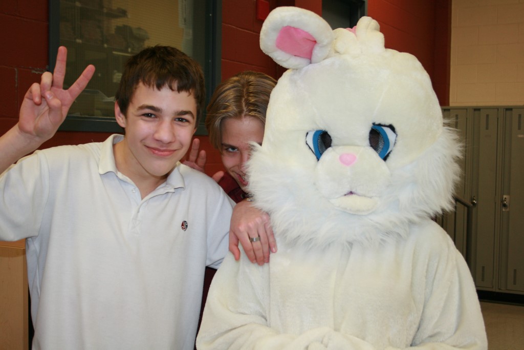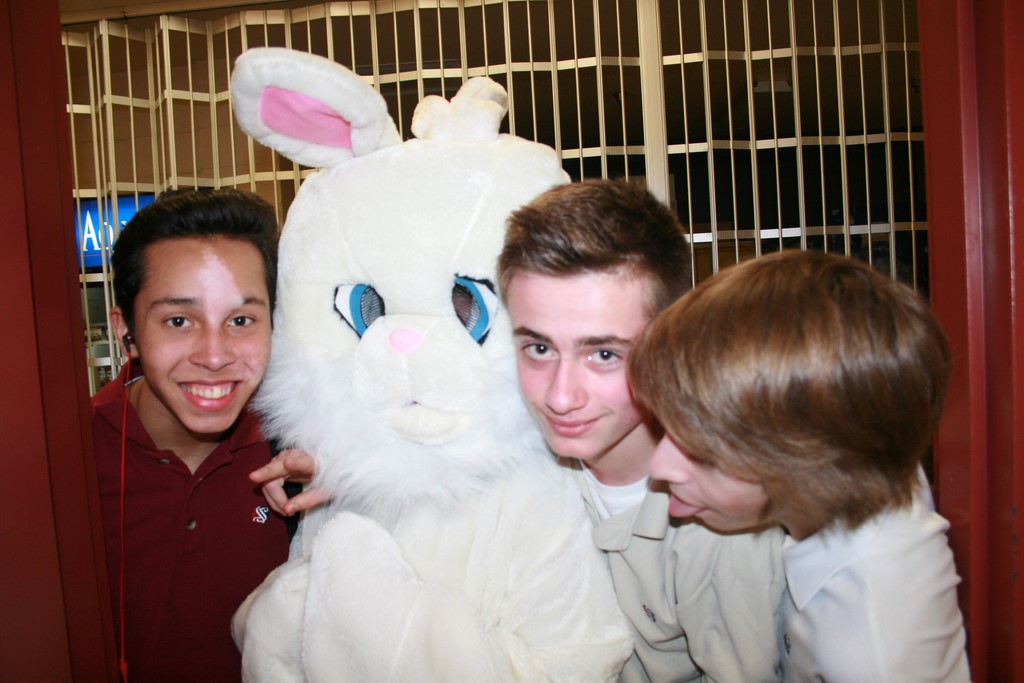 Plusieurs photos avec la mascotte de Pâques