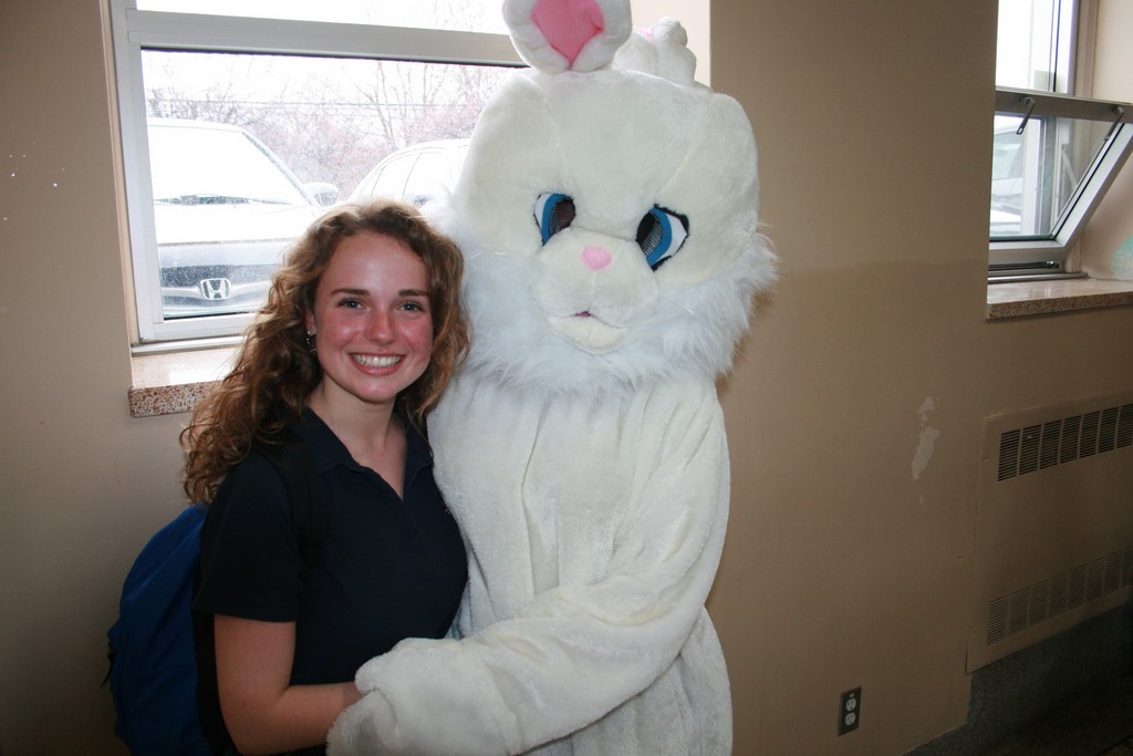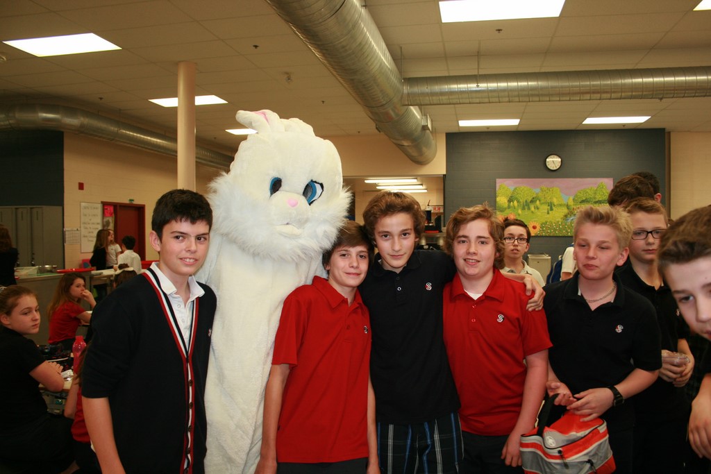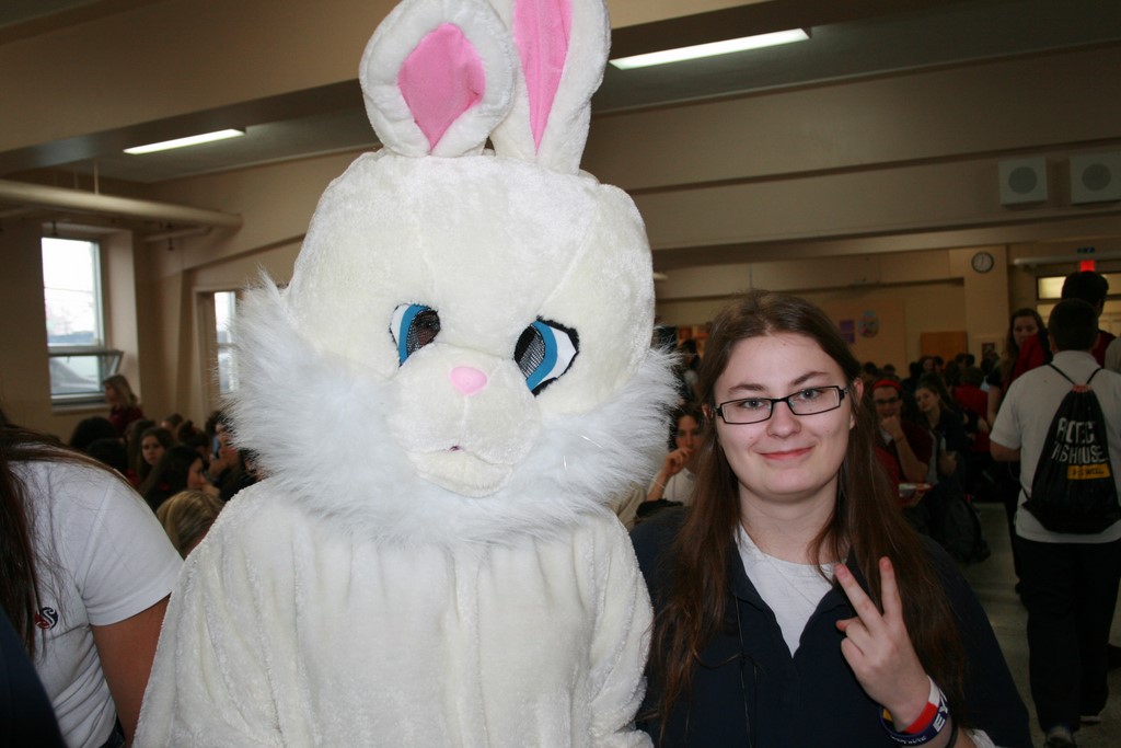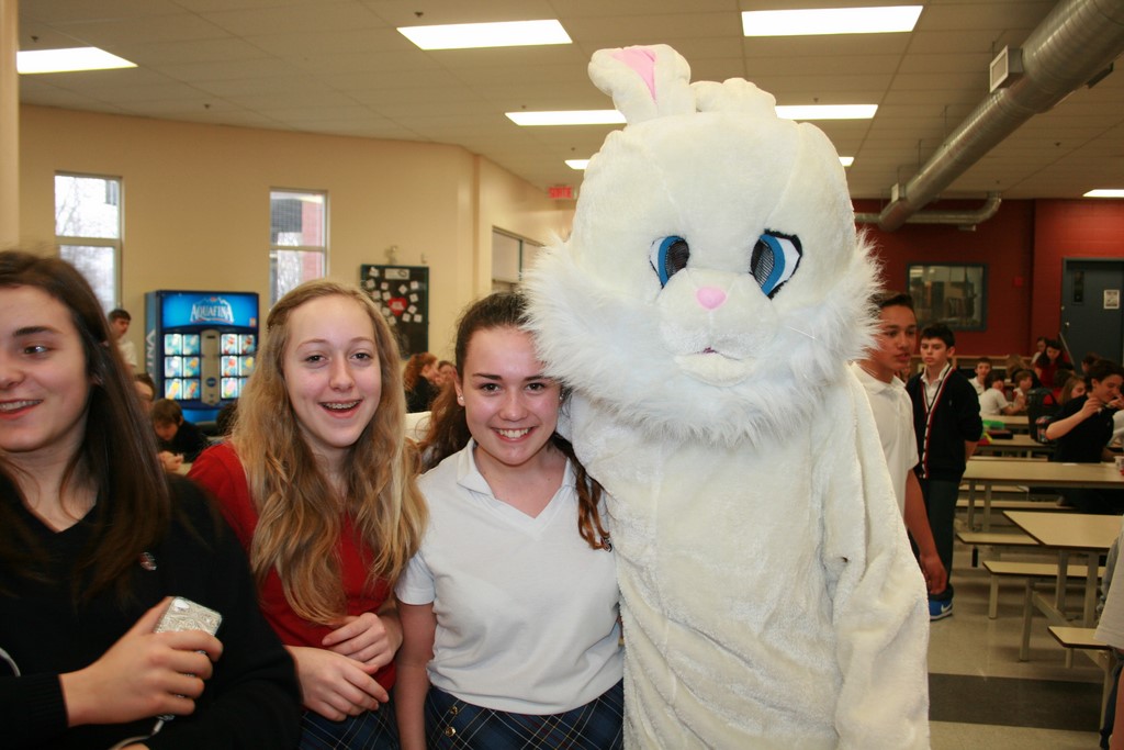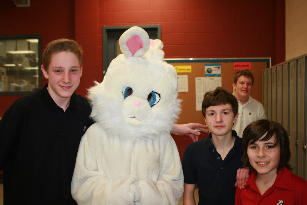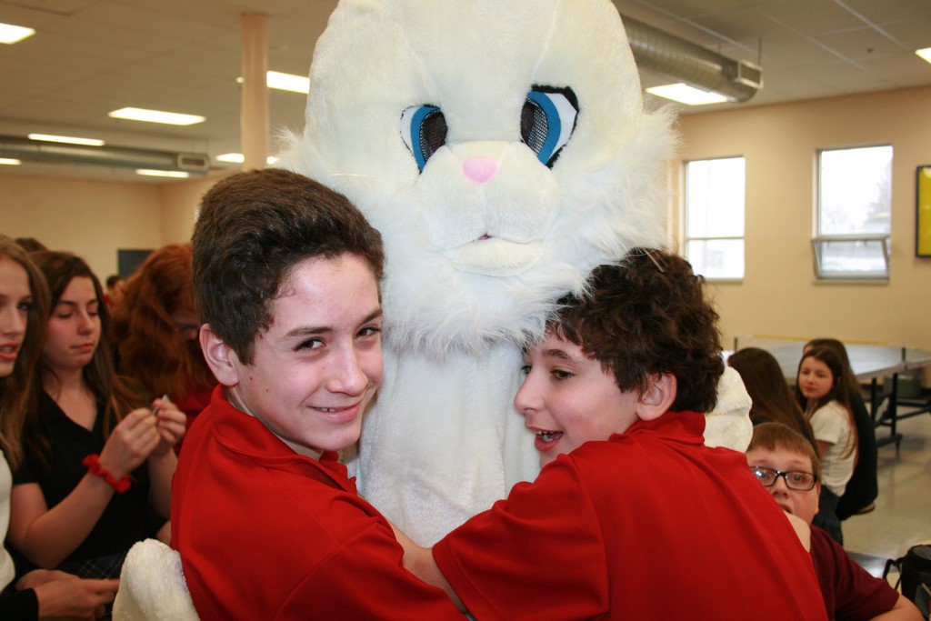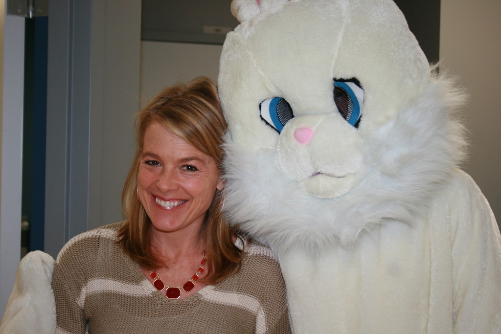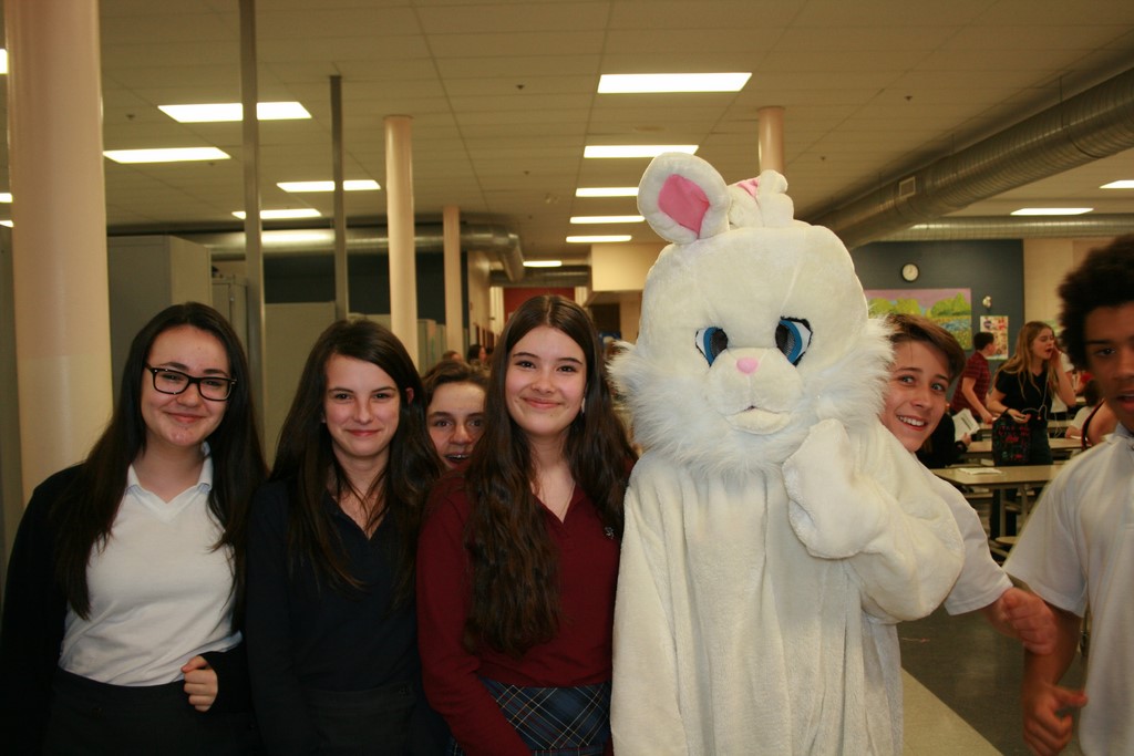 Plusieurs photos avec la mascotte de Pâques