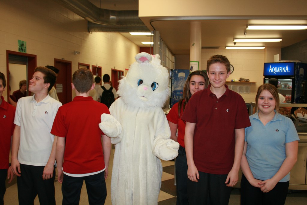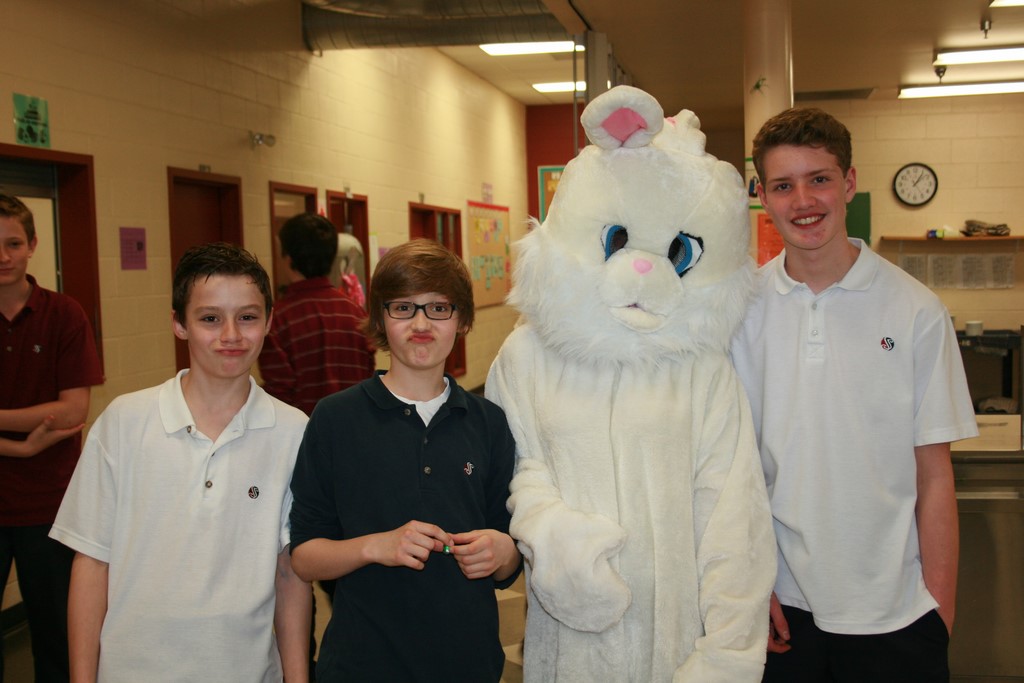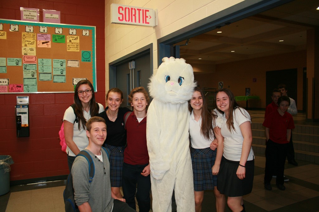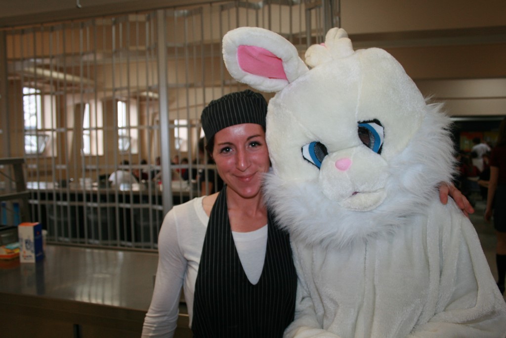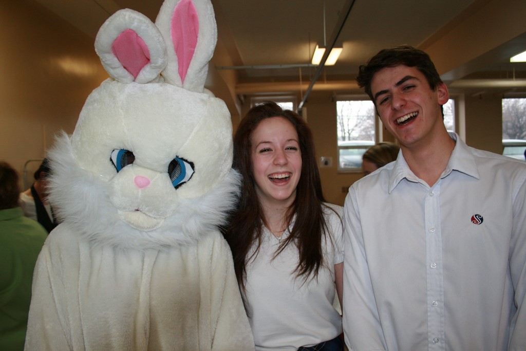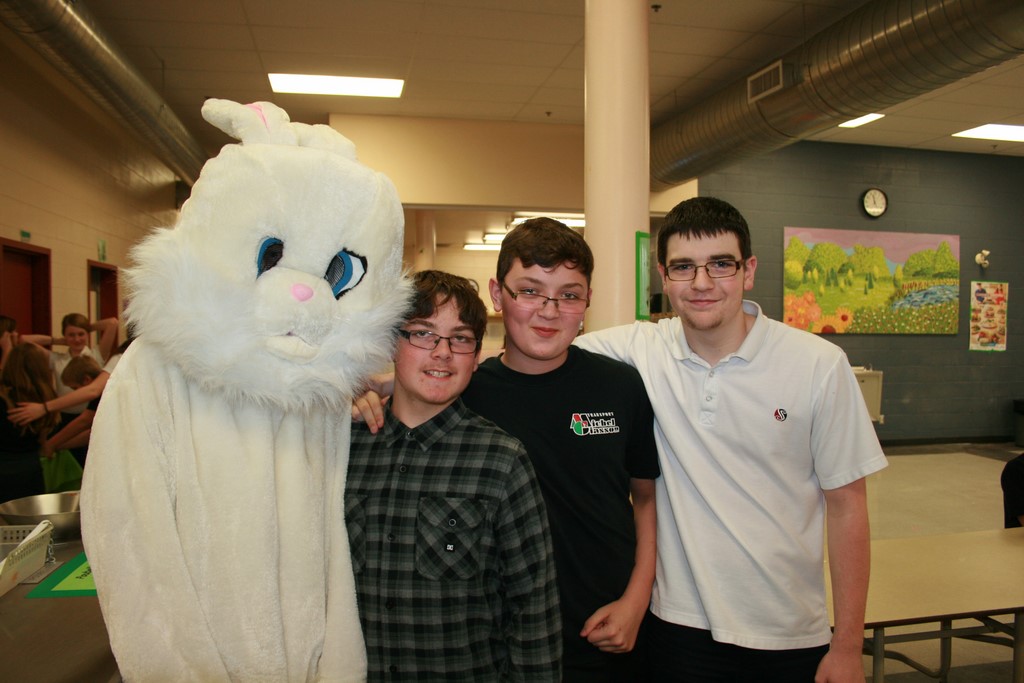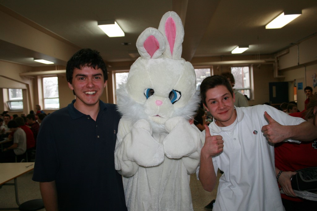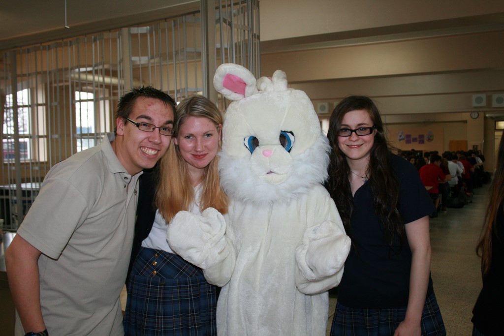 Plusieurs photos avec la mascotte de Pâques