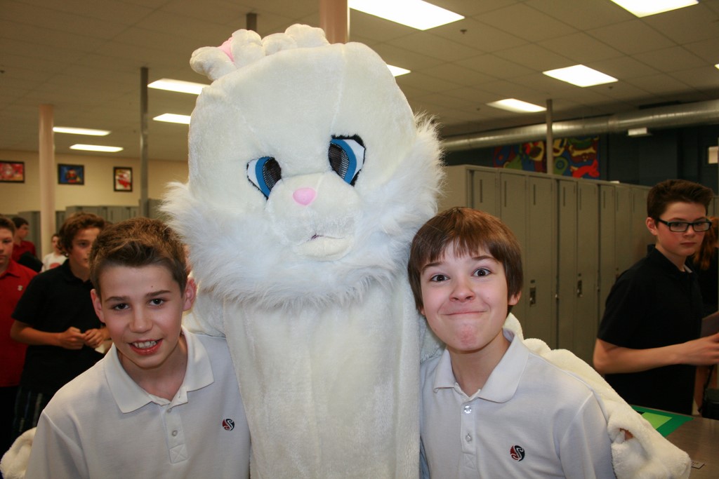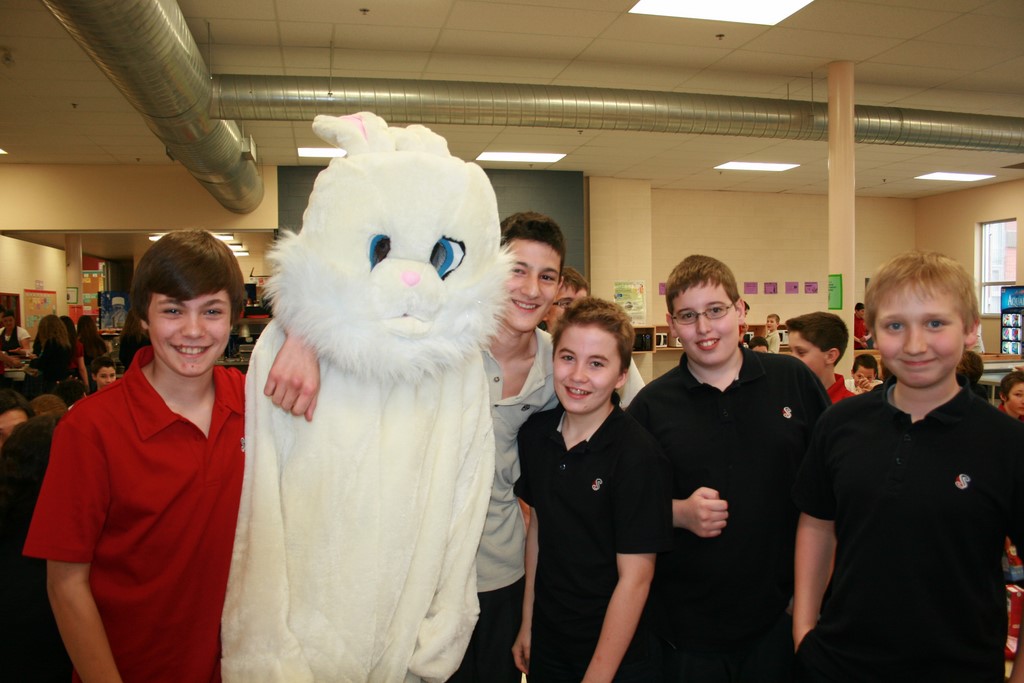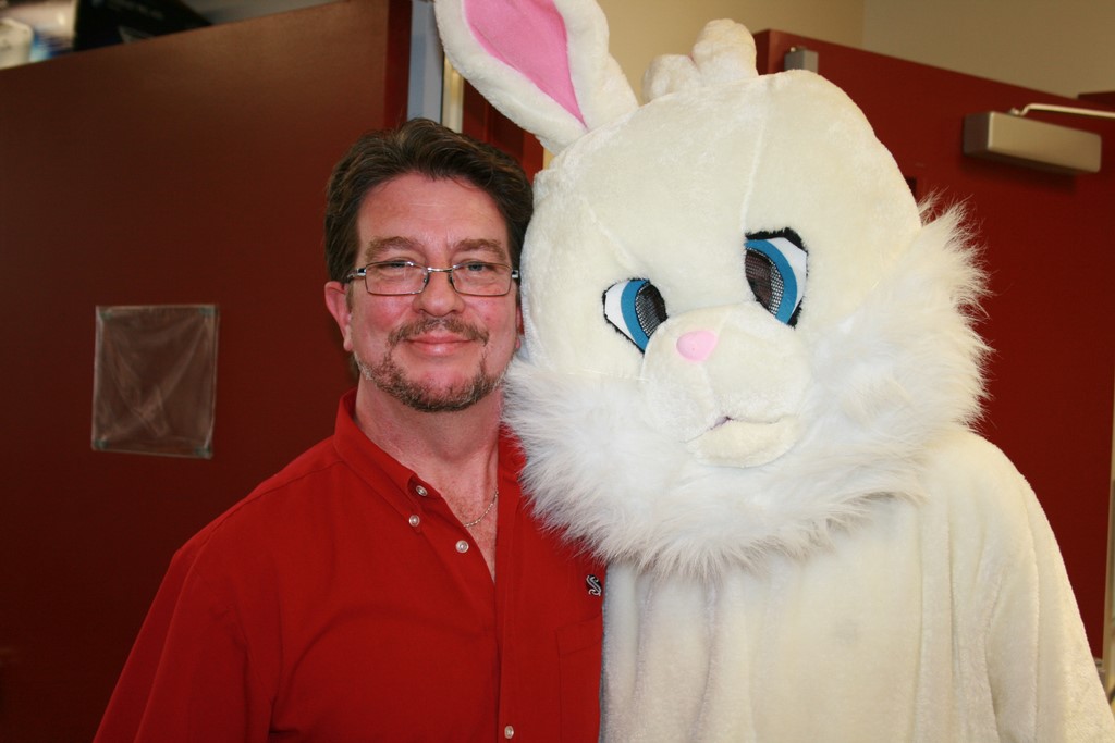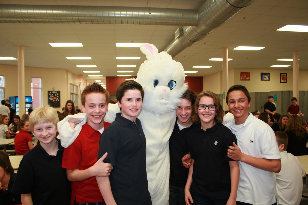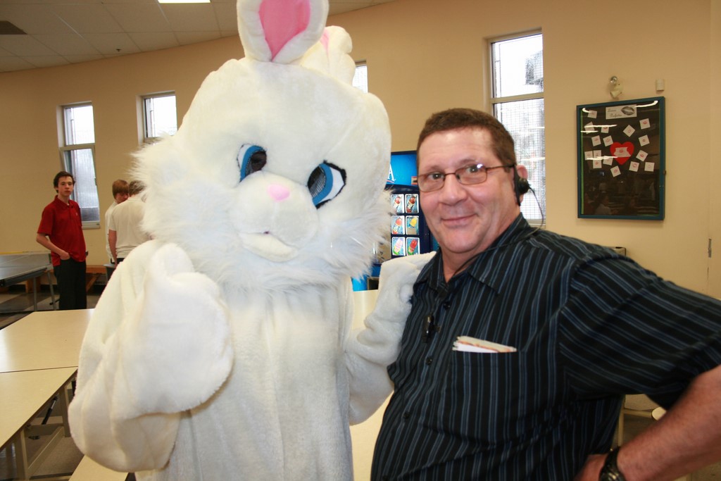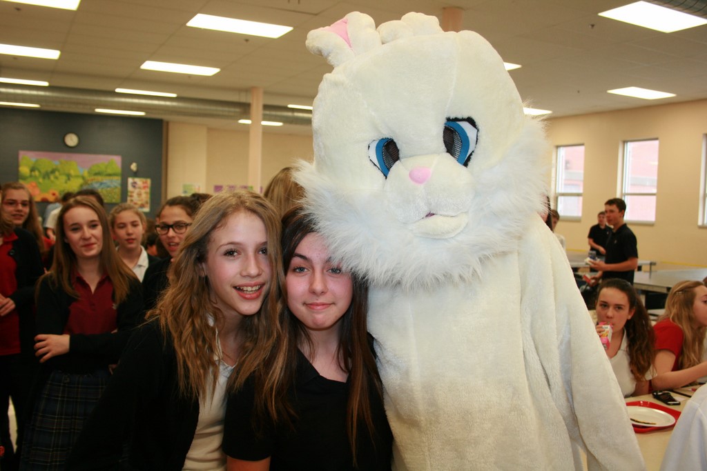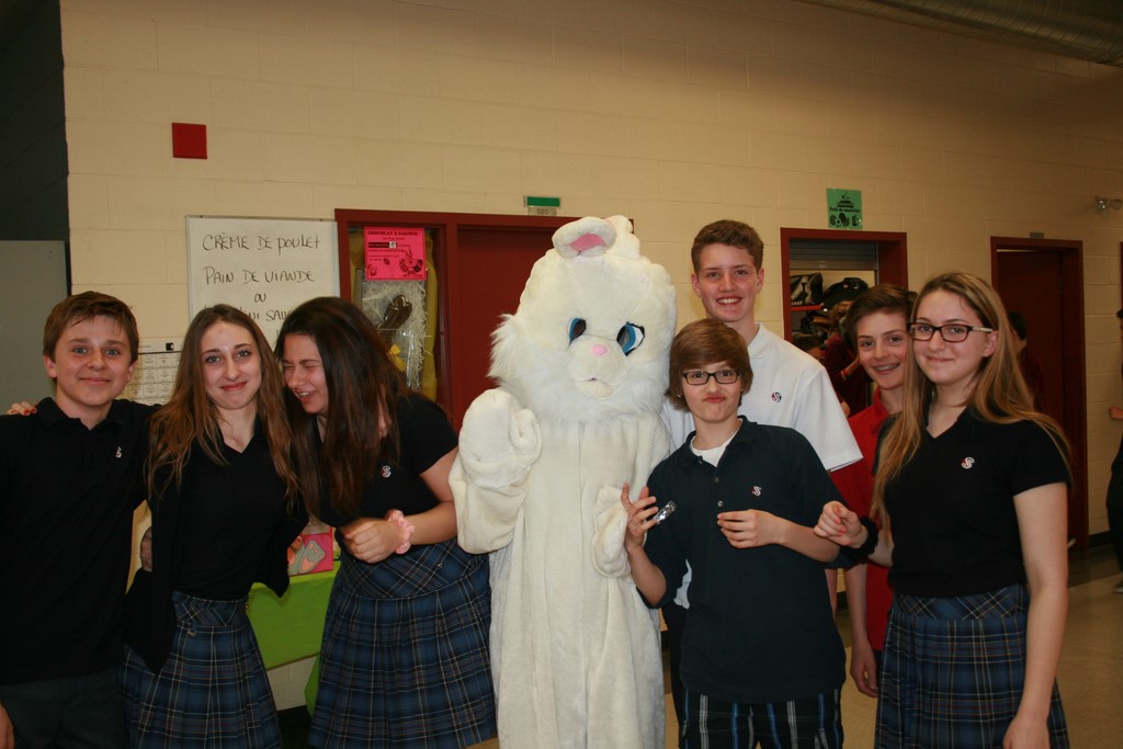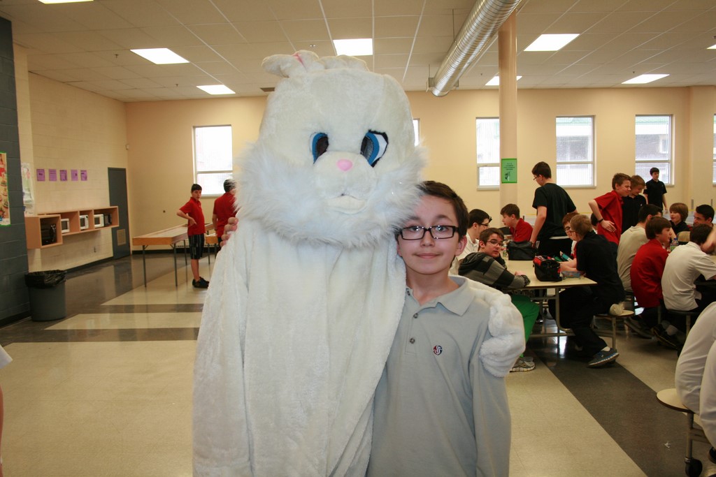 Plusieurs photos avec la mascotte de Pâques