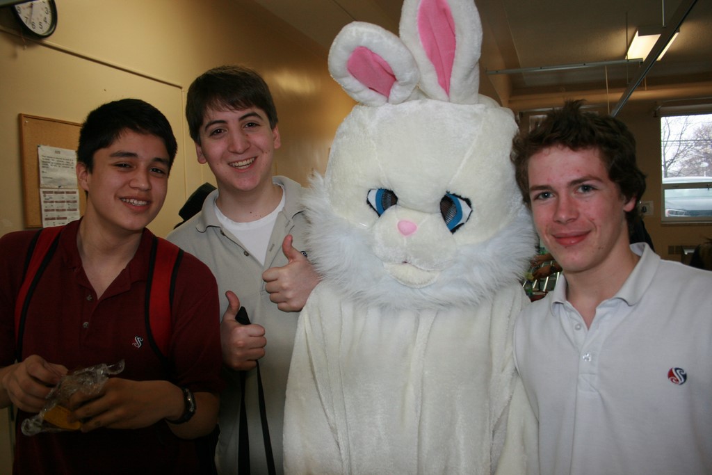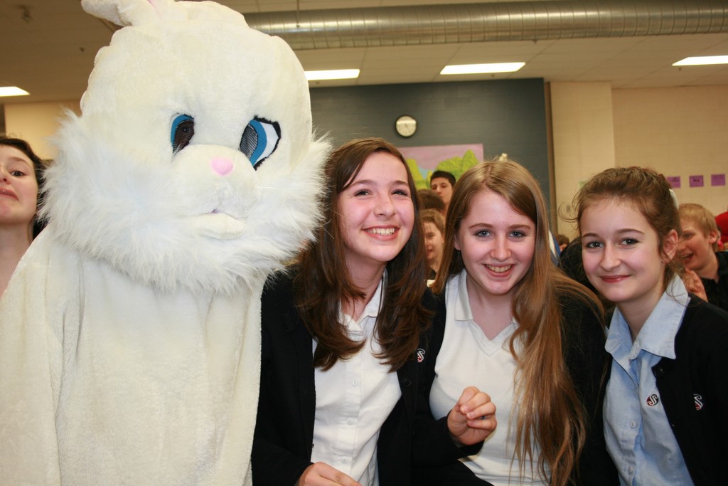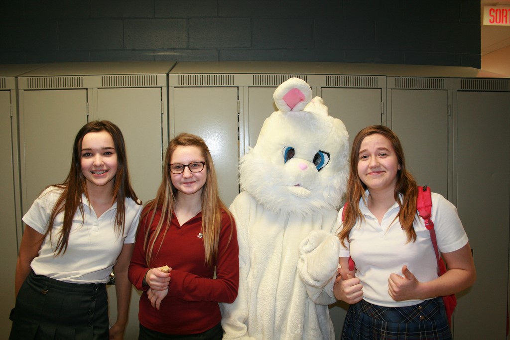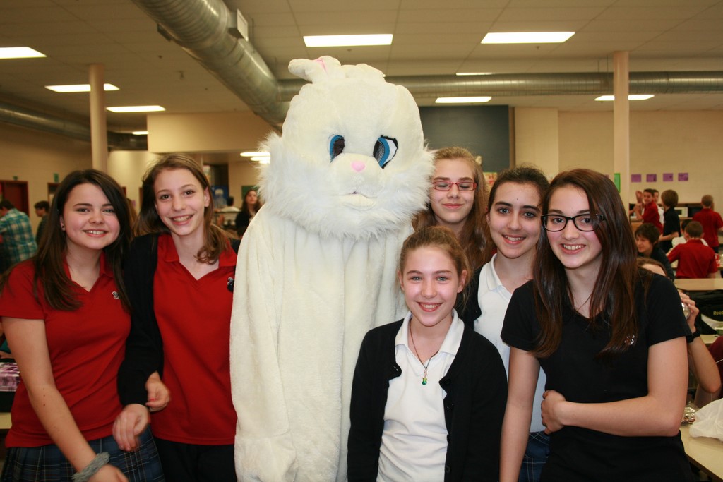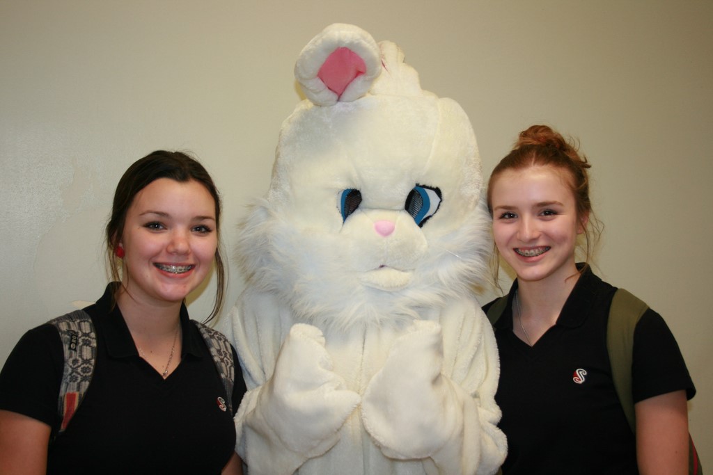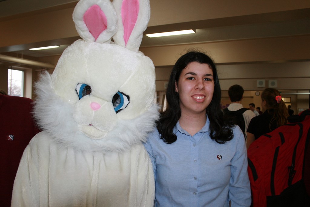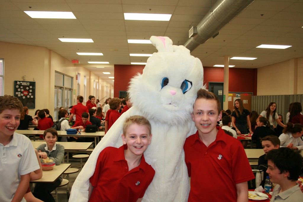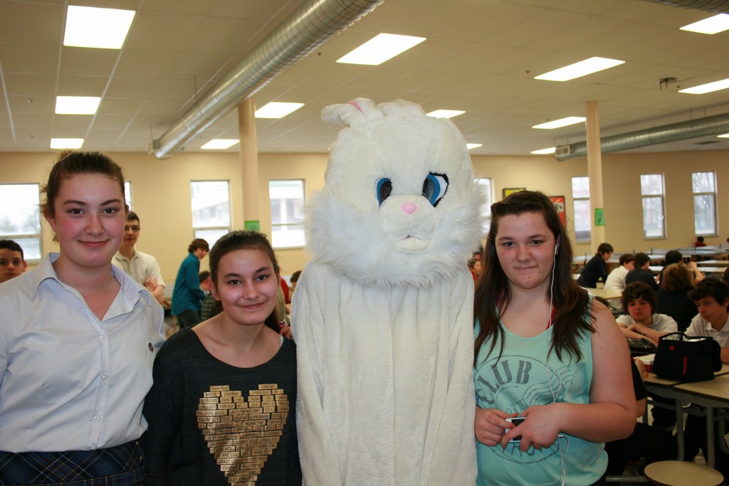 Plusieurs photos avec la mascotte de Pâques