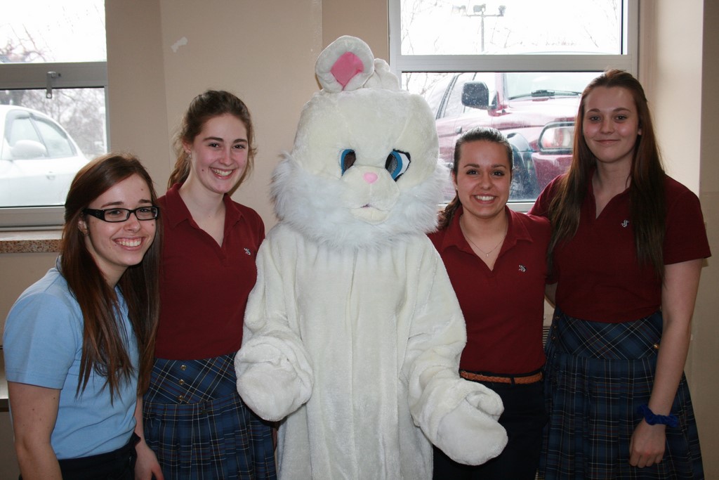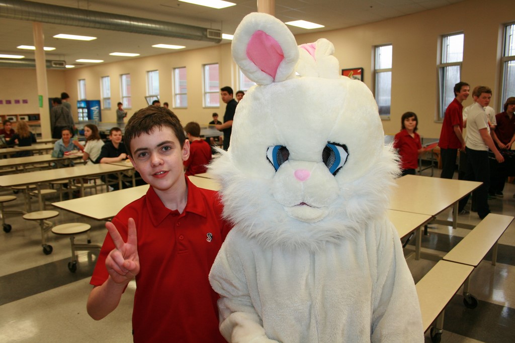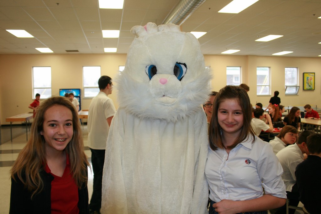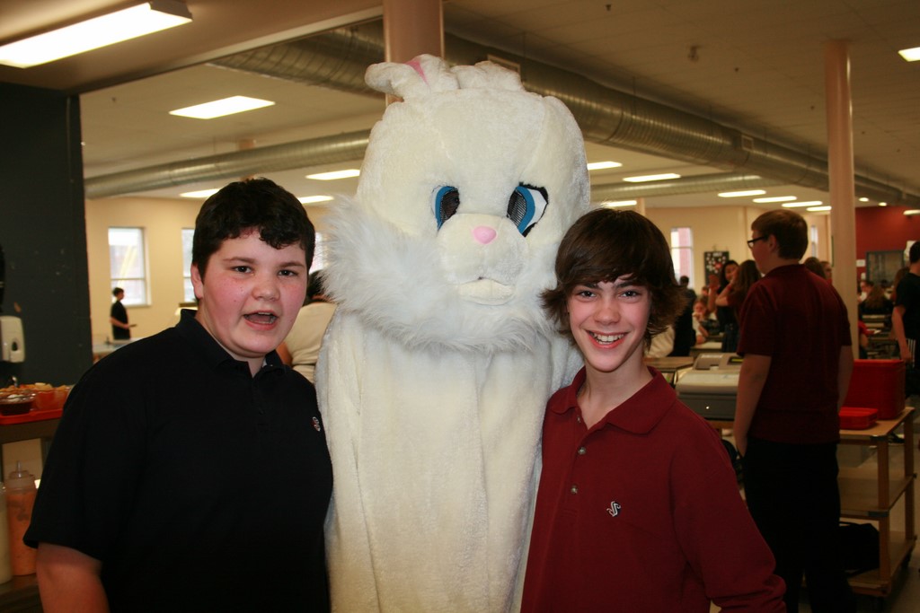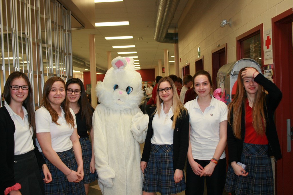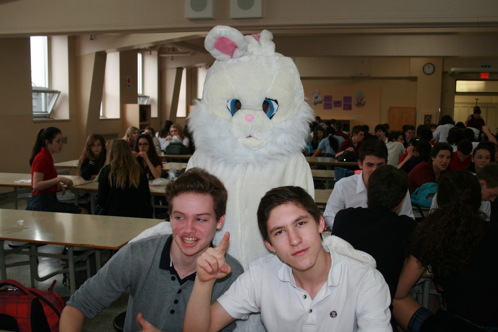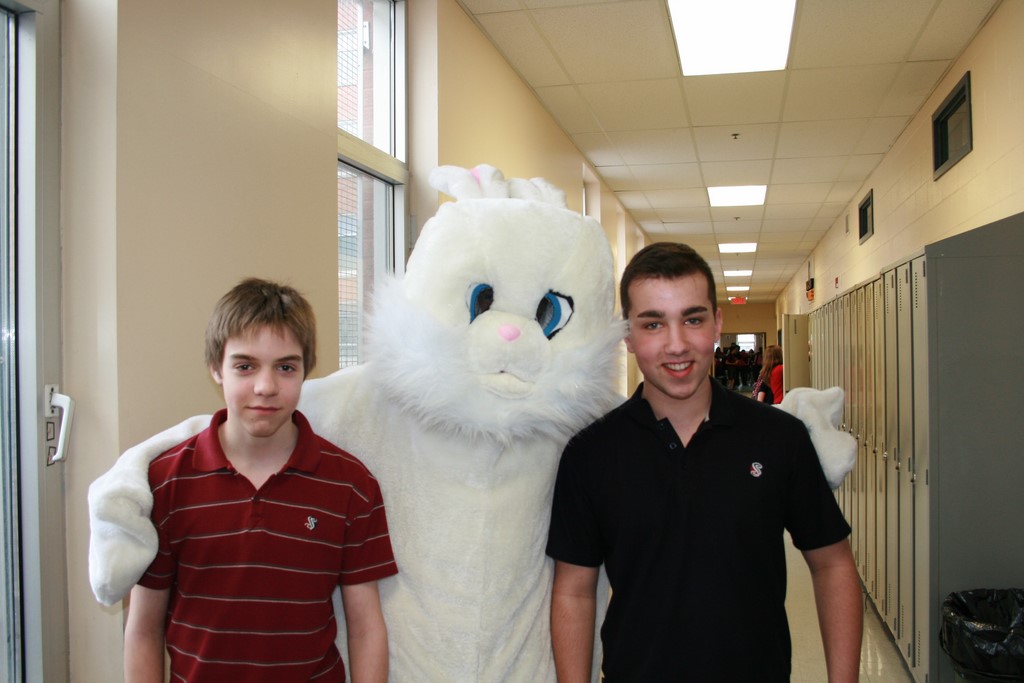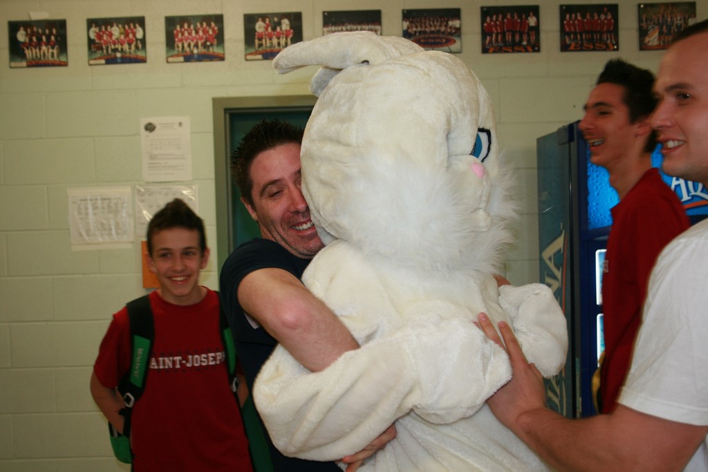 Plusieurs photos avec la mascotte de Pâques