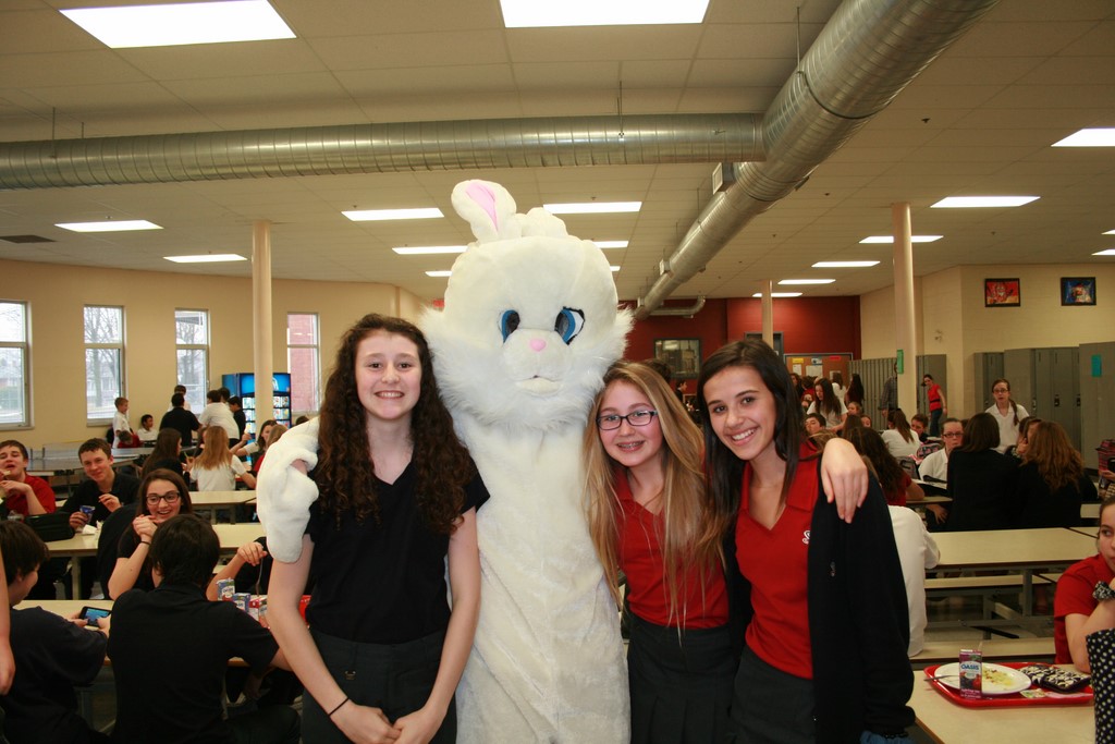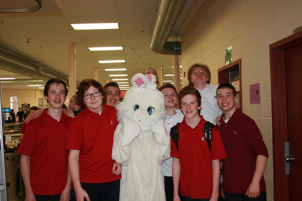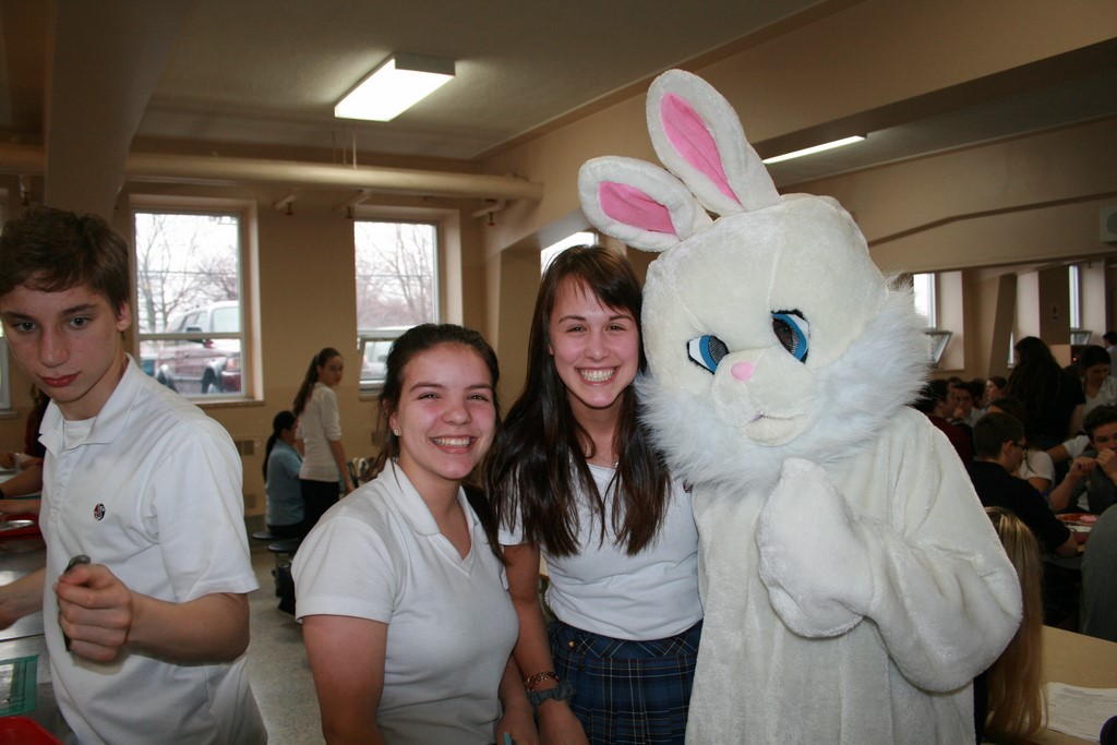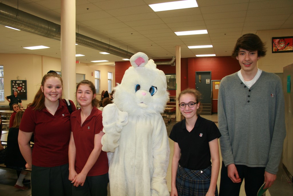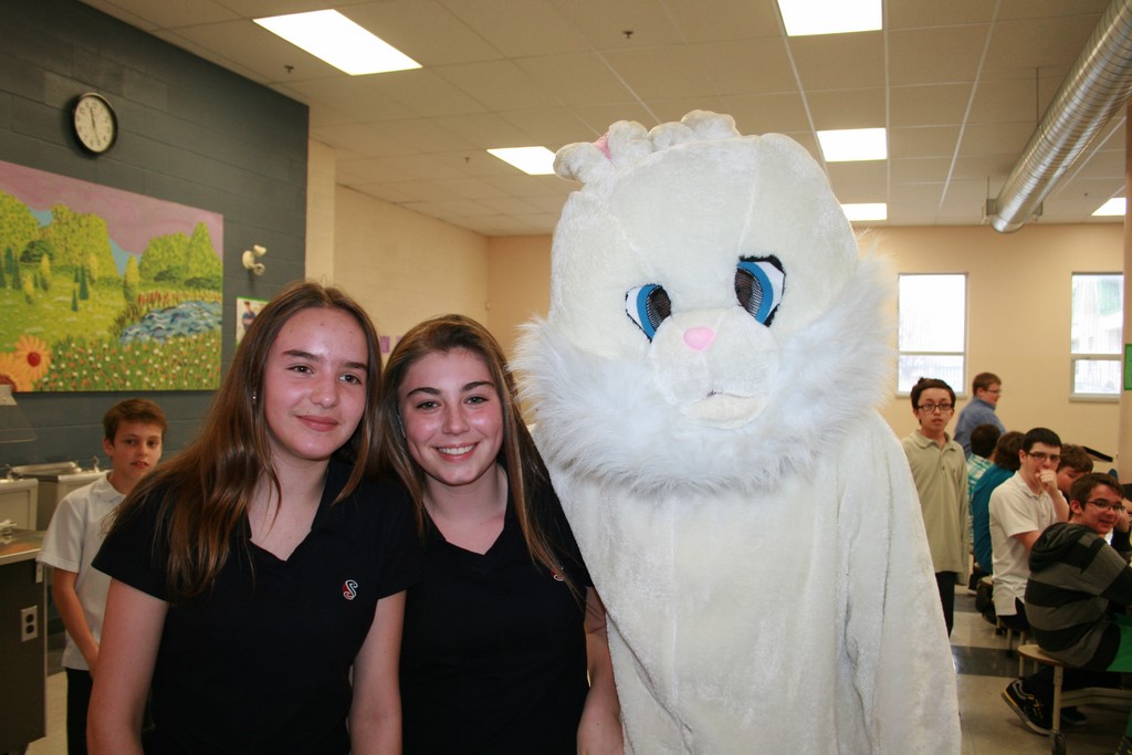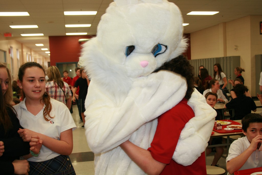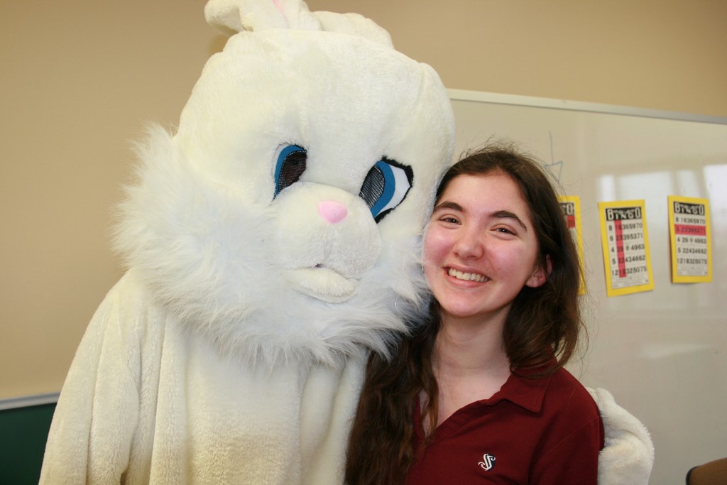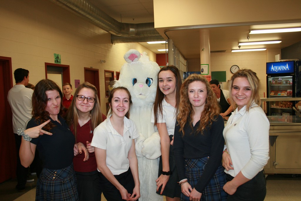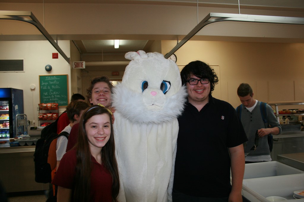 Plusieurs photos avec la mascotte de Pâques