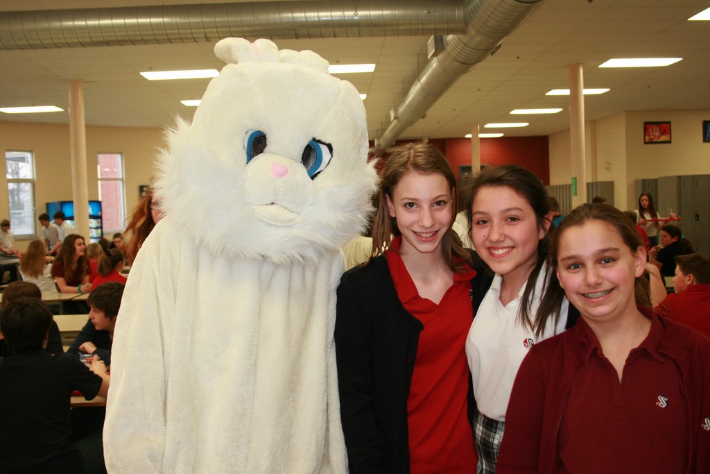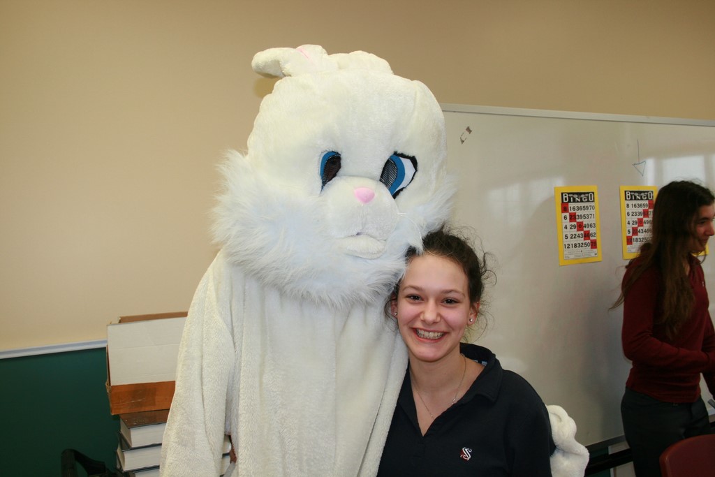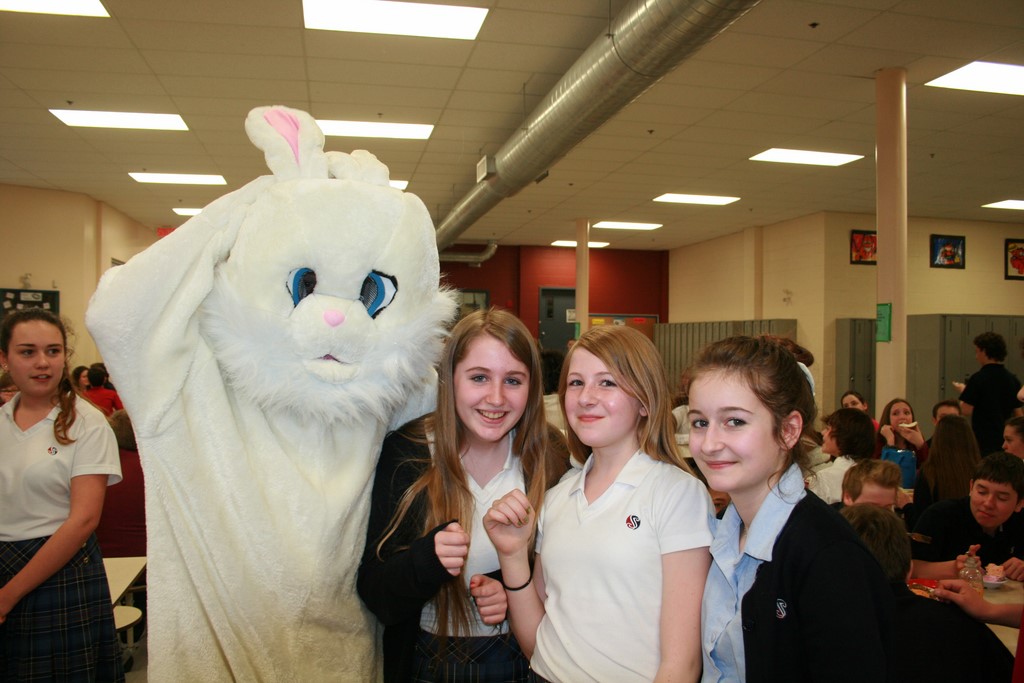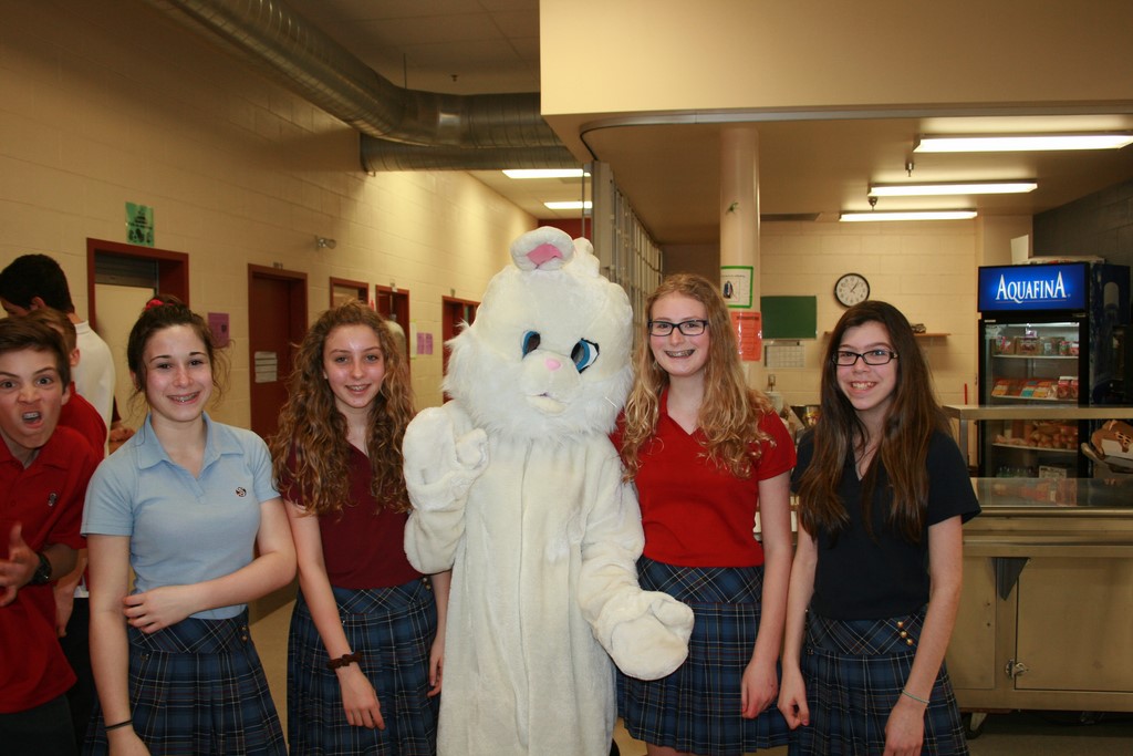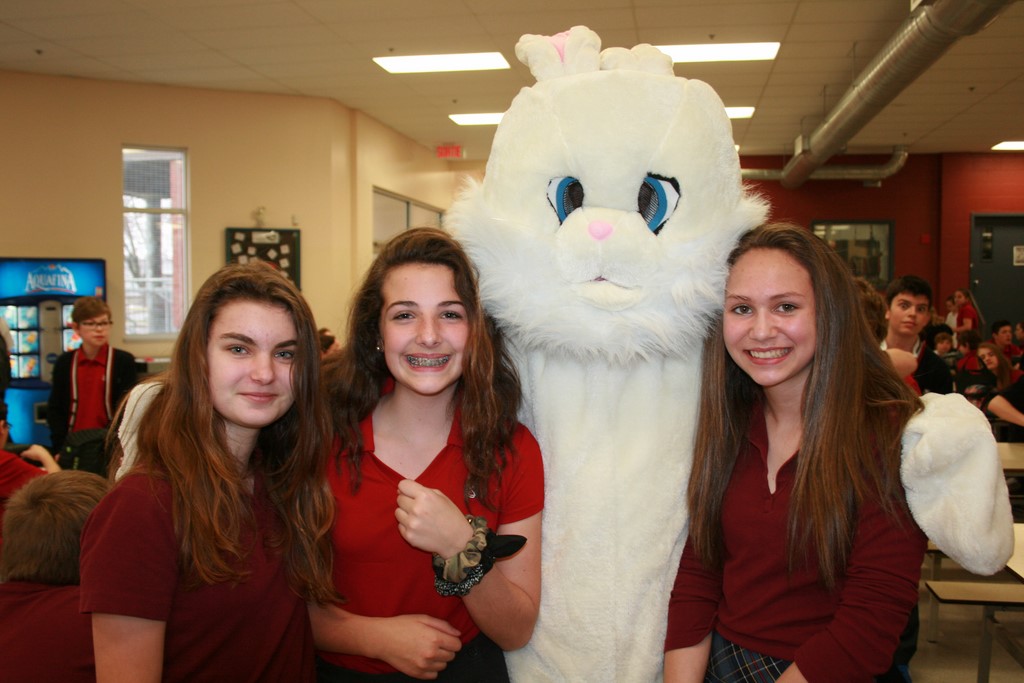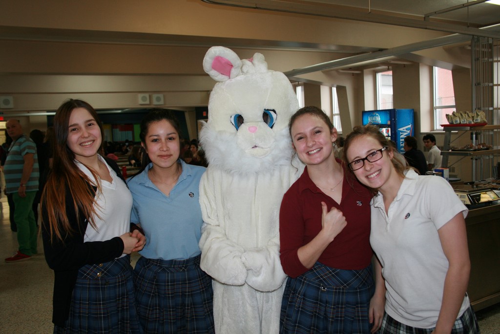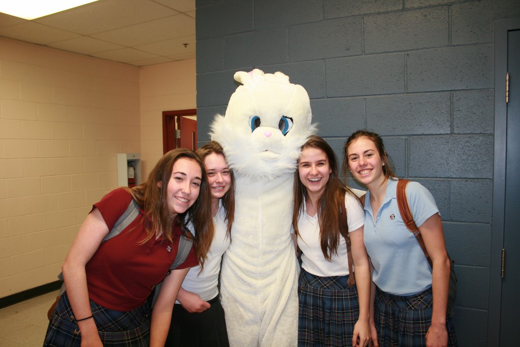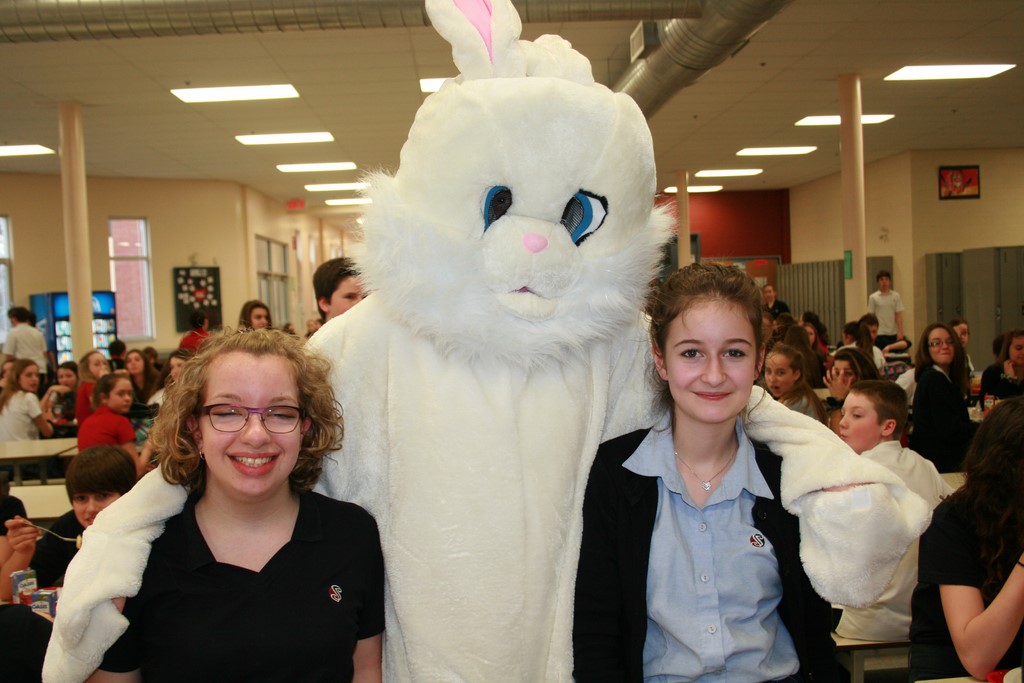 Plusieurs photos avec la mascotte de Pâques
