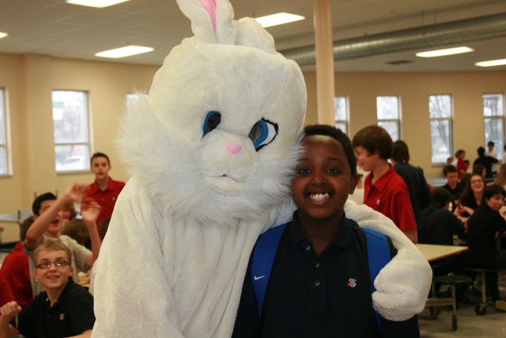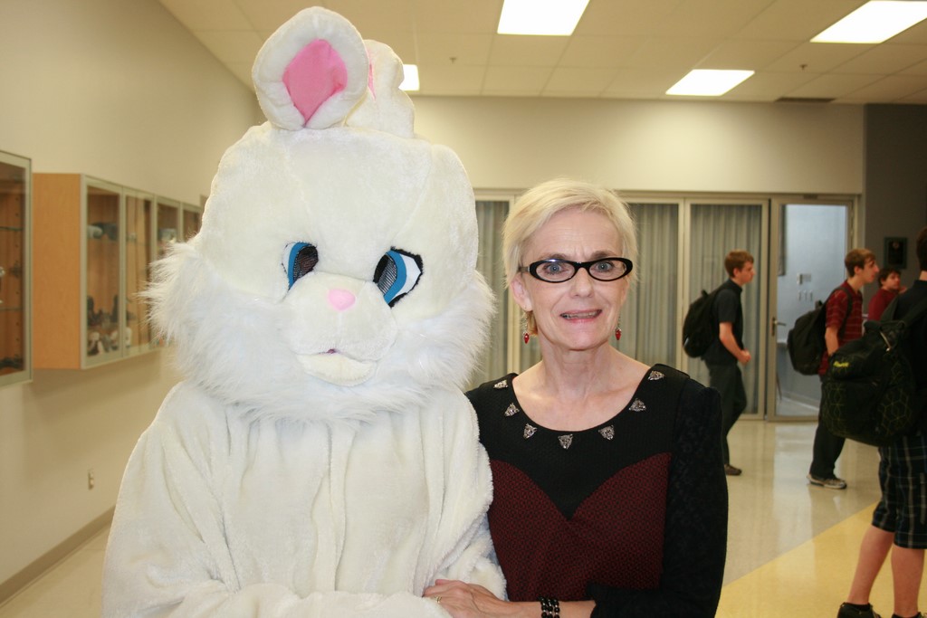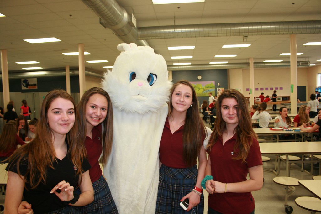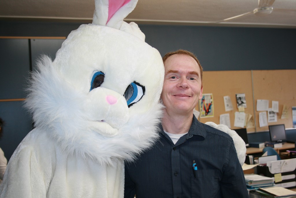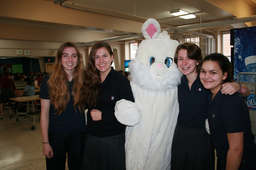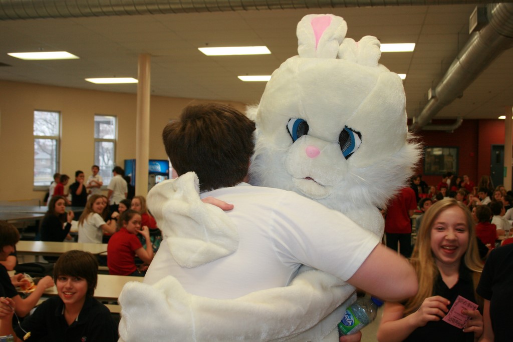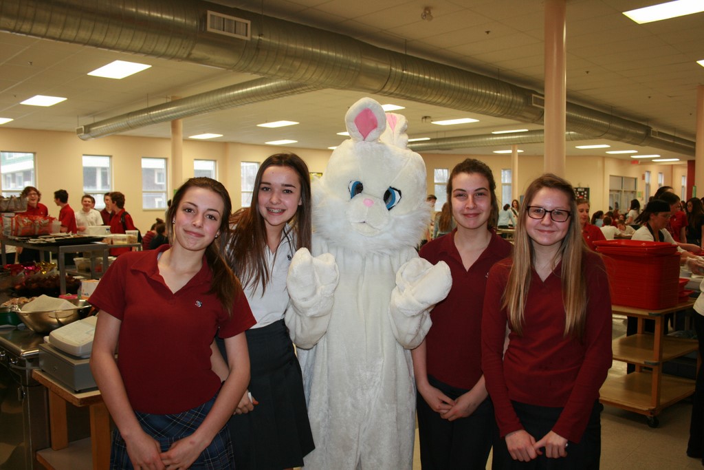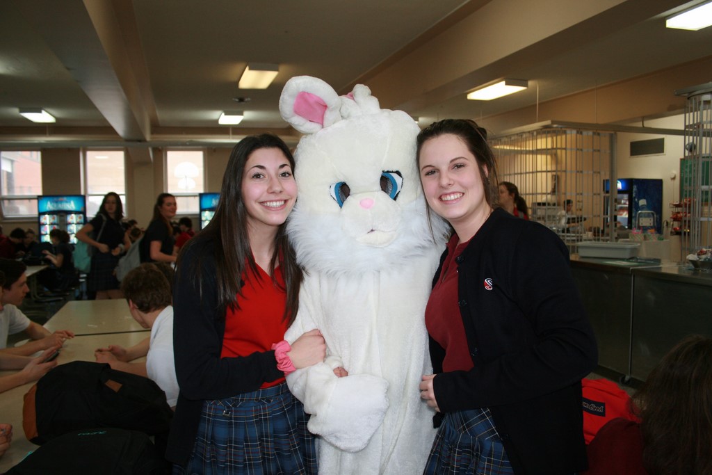 Plusieurs photos avec la mascotte de Pâques