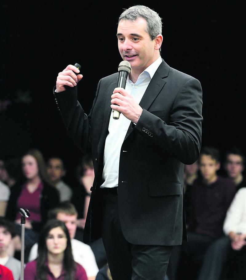 Le pilote et conférencier Bertrand Godin est désormais une source de motivation pour les élèves de 3e secondaire de l’ESSJ. Photo François Larivière | Le Courrier ©