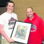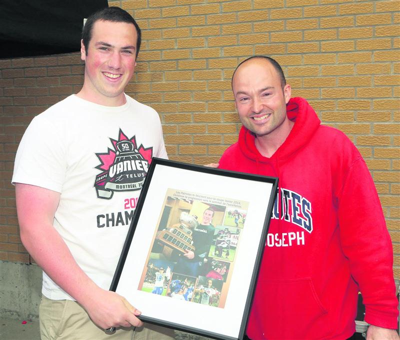 L’École secondaire Saint-Joseph a tenu à honorer le travail de Louis-Philippe en lui remettant un montage relatant les moments marquants de sa carrière, depuis qu’il a fait ses débuts avec les Patriotes. Photo Robert Gosselin | Le Courrier ©