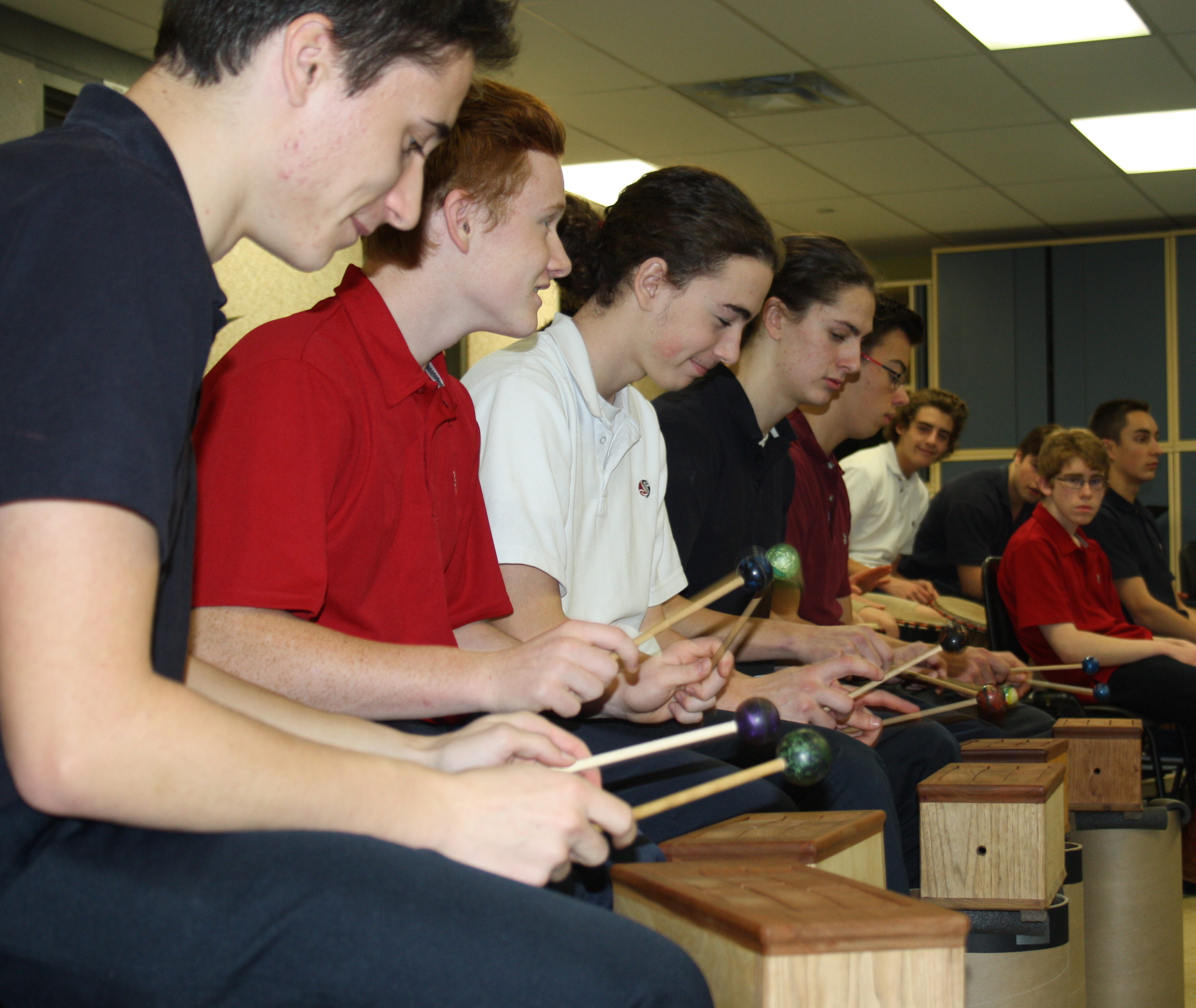 En musique, les élèves ont eu la chance de rencontrer Mme Marise Demers (percussionniste et multi-instrumentiste professionnelle). L’objectif de cet atelier de percussions était la découverte et l’expérimentation d’instruments d’origines diverses tels que le djembé, les tamböas, la darbouka et des tambours brésiliens. Le but de la rencontre était aussi d’explorer la fusion de ceux-ci à travers des rythmes métissés. Les jeunes ont ensuite été initiés au processus de création et amenés à partager et expérimenter leurs idées dans un contexte collectif. Les élèves ont ainsi goûté aux saveurs de plusieurs instruments à travers une démarche créatrice de métissage que l’on retrouve de plus en plus sur la scène musicale actuelle.
