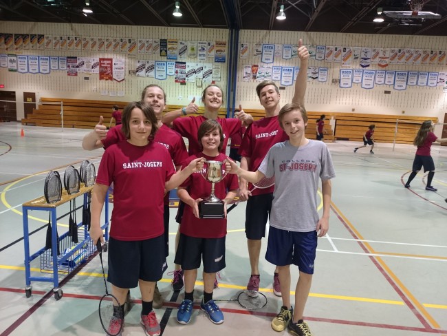 Dans le cadre du cours d’éducation physique du programme arts et sports de 1re secondaire, les élèves ont vécu un tournoi de badminton le 21 mars dernier. Marc-Olivier St-Rock, Charles-Édouard Fréchette et Lou Walter sont repartis avec les grands honneurs. Beaucoup de plaisir, de beaux coups et du dépassement de soi étaient au rendez-vous.