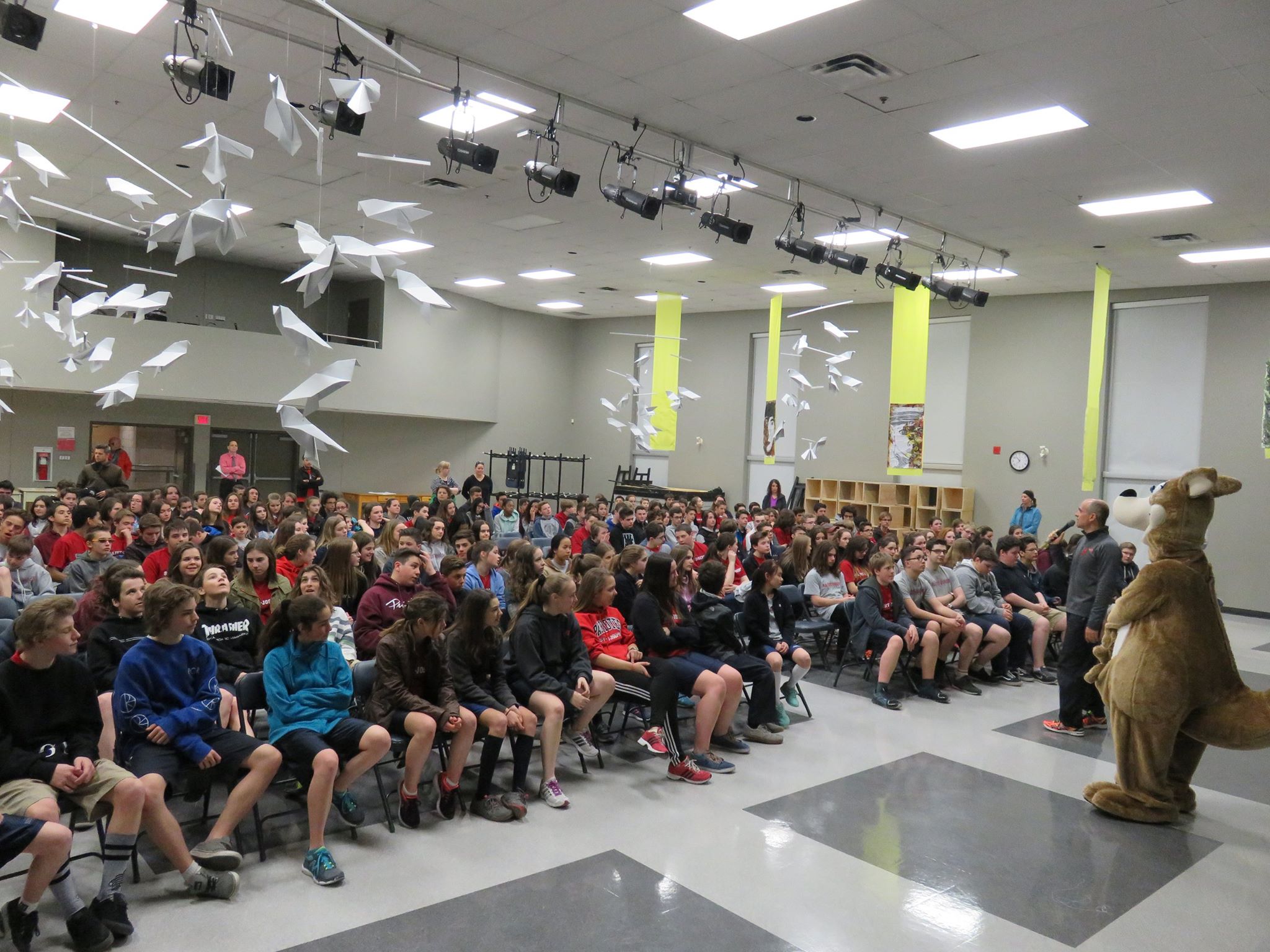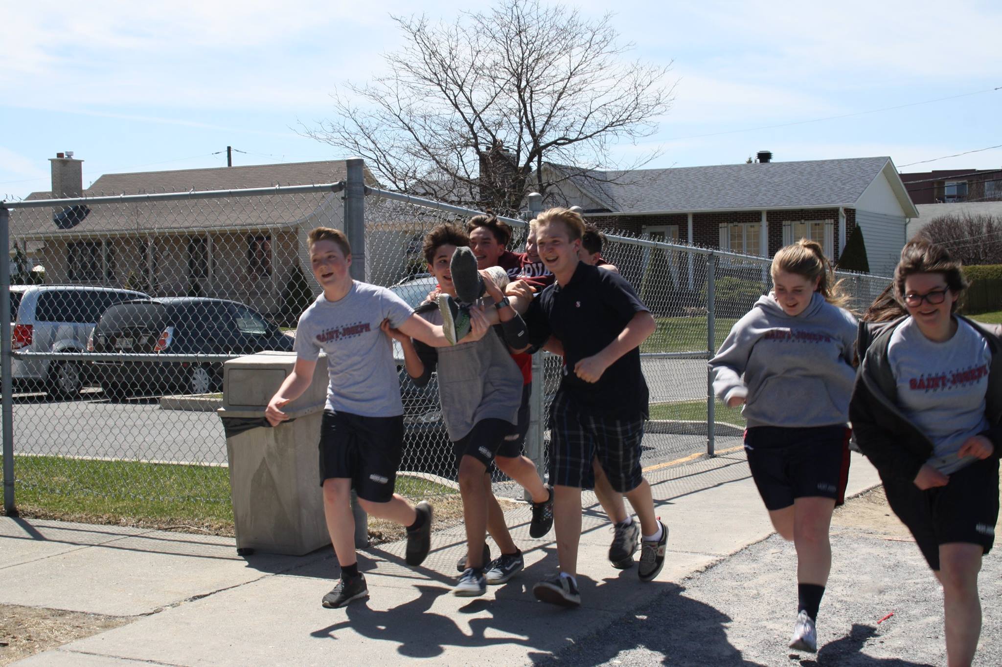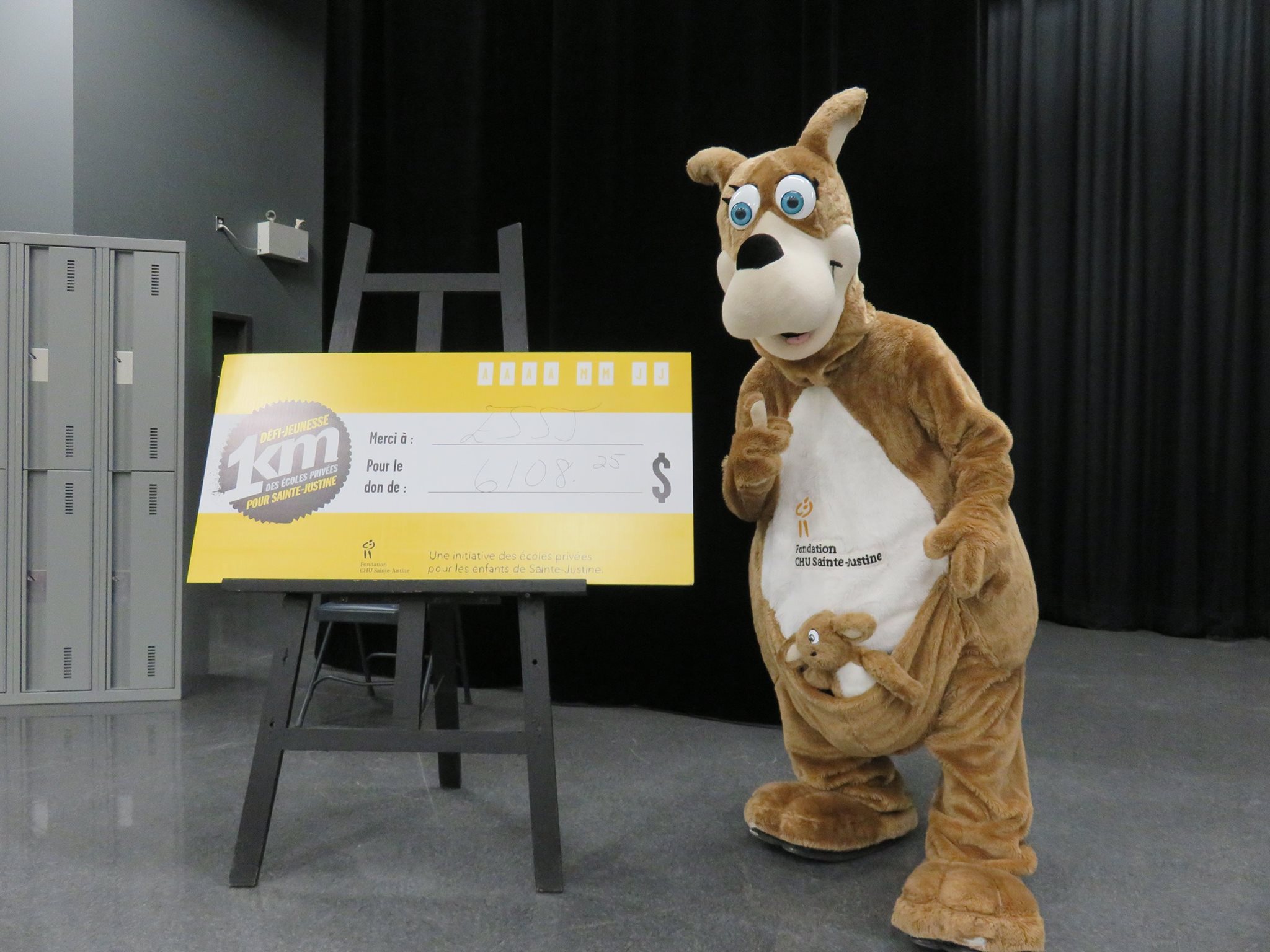 C’est le vendredi 29 avril qu’avait lieu la réalisation du Défi 1 km dans le cadre de la levée de fonds de l’hôpital Ste-Justine. En cette journée ensoleillée où tous les élèves de l’École étaient invités à prendre part à une course non chronométrée sur une distance de 1 kilomètres dans les rues avoisinantes, nous avons tous pu prendre conscience de la chance et du privilège qui nous sont accordés de pouvoir bénéficier d’une bonne santé. Accompagnés et entourés des enseignants, des membres du personnel, de Cachou, la mascotte officielle de l’événement, et de notre invité spécial, M. François Bourdeau, les élèves de tous les niveaux ont pu célébrer après avoir amassé un montant total de $6108,25 pour cette noble cause qui vient en aide aux enfants malades. C’est aussi sous un soleil radieux et baignés par la chaleur des sourires que nous nous sommes rassemblés autour de ce magnifique projet sportif et humanitaire porteur de sens.