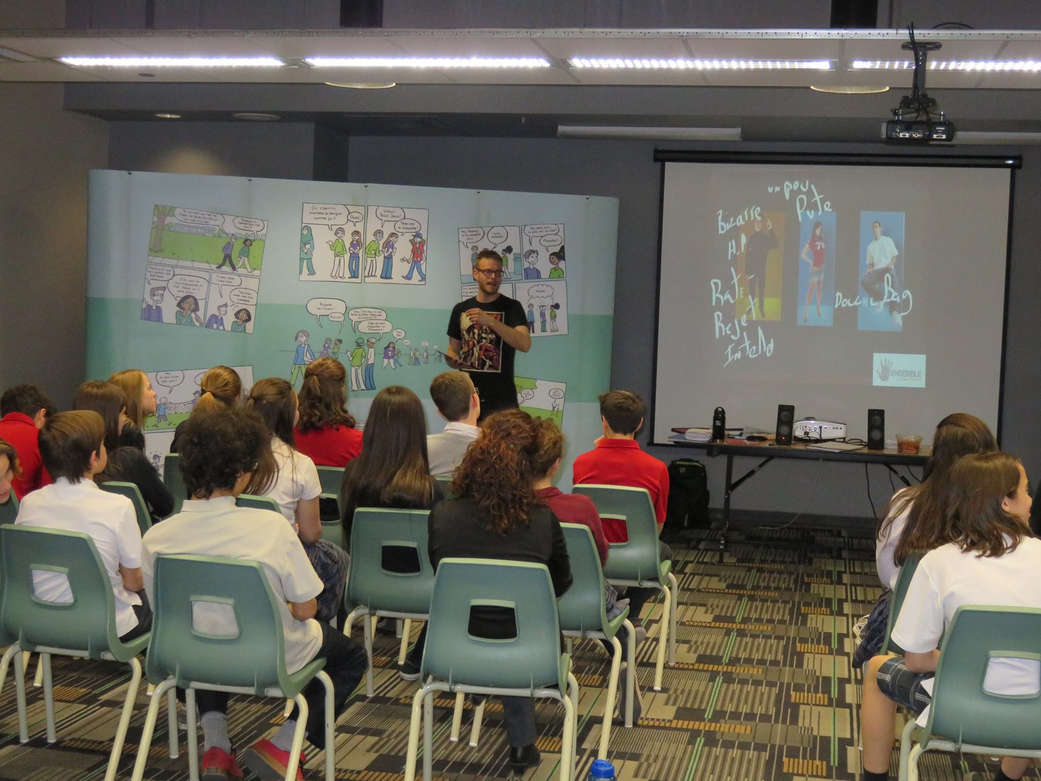 La semaine dernière, l’organisme ENSEMBLE pour la diversité est venu rencontrer chacun des groupes de deuxième secondaire pour leur faire vivre un atelier interactif sur la promotion du respect des différences afin de bâtir un environnement sans discrimination ni intimidation.