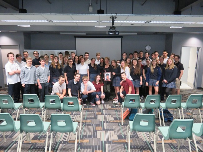 Dans le cadre de la semaine de prévention du suicide, les élèves de 5e secondaire ont eu le privilège d’entendre le témoignage de Madame Johanne Riendeau, venue leur raconter le pacte de suicide de son fils Hubert. Madame Riendeau se fait un devoir, depuis 10 ans, de venir rencontrer les finissants de l’École secondaire St-Joseph pour les faire réfléchir et surtout leur faire prendre conscience que le suicide n’est pas une option. Un grand merci à Madame Riendeau pour ce magnifique partage !