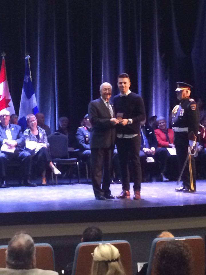 Olivier Jacques, élève de 5e secondaire (groupe 59), s’est vu décerner la médaille du Lieutenant-gouverneur pour la jeunesse.