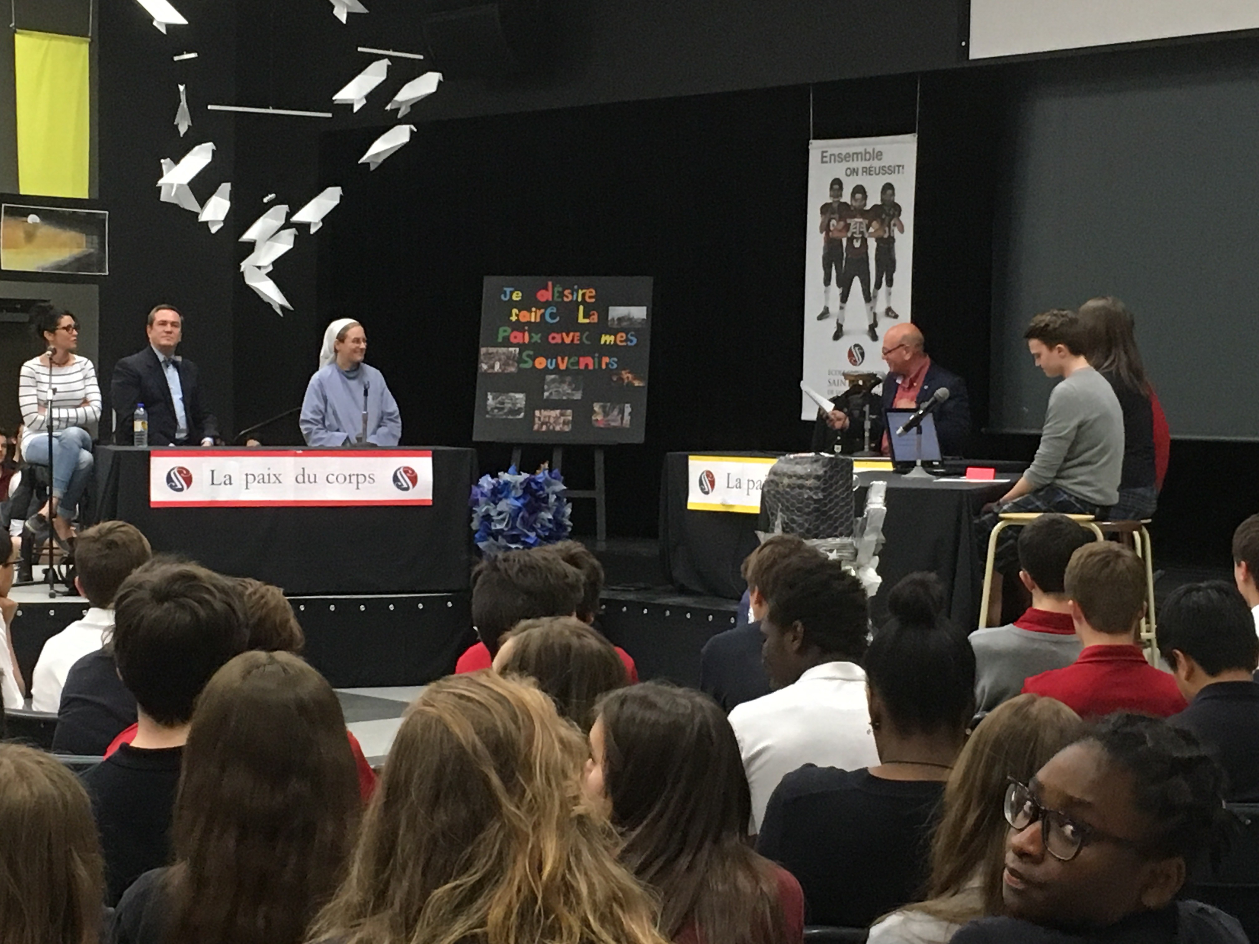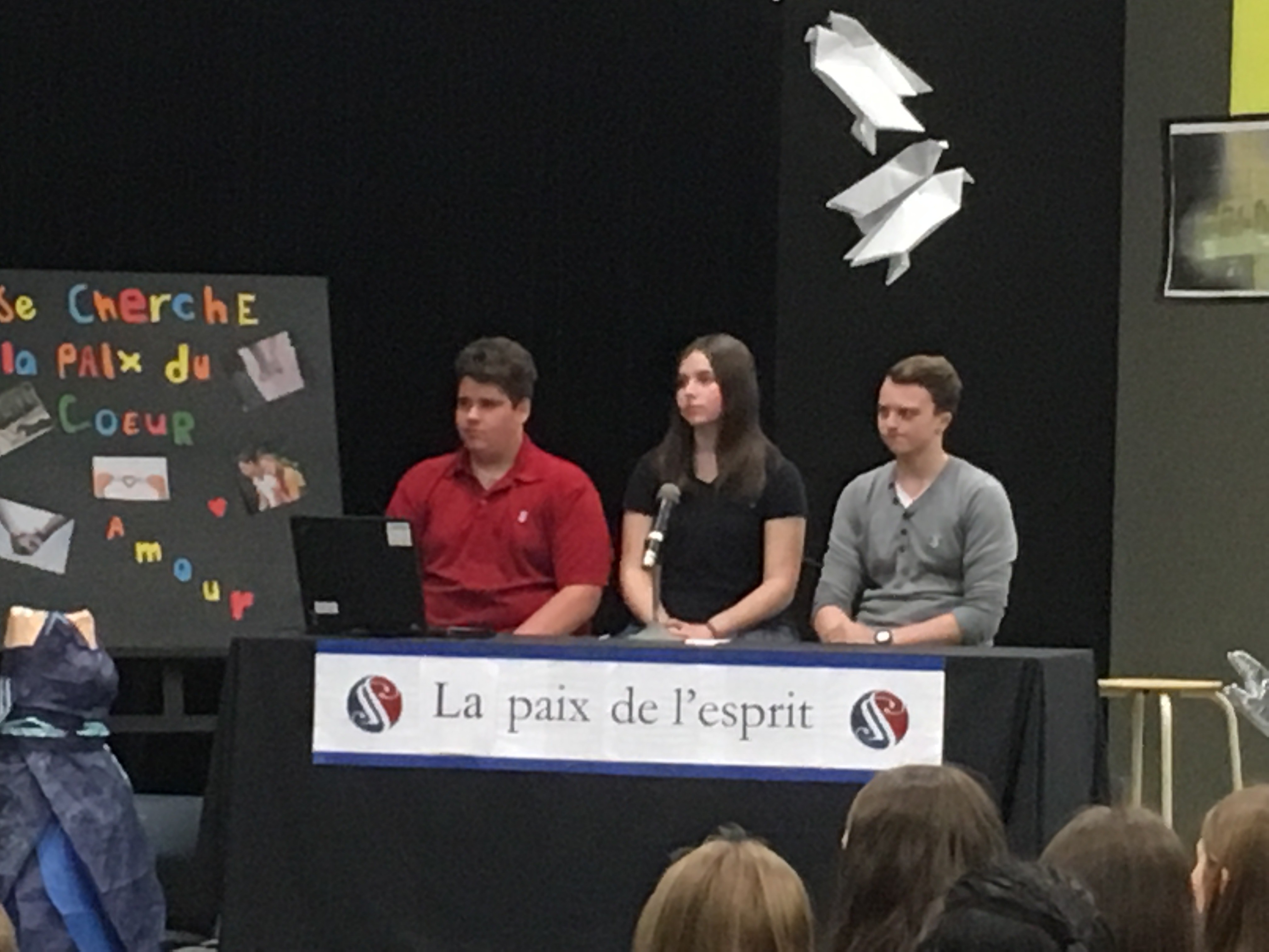 Dans le cadre des activités de Pastorale, les élèves de 3e secondaire ont eu l’occasion d’explorer différentes facettes de la Paix grâce aux témoignages sentis offerts par le panel d’invités. Présentée en formule « Tout le monde en parle », la table ronde a permis de découvrir l’histoire de chacun des invités qui sont parvenus à retrouver la paix malgré les épreuves que la vie a placées sur leur chemin.
