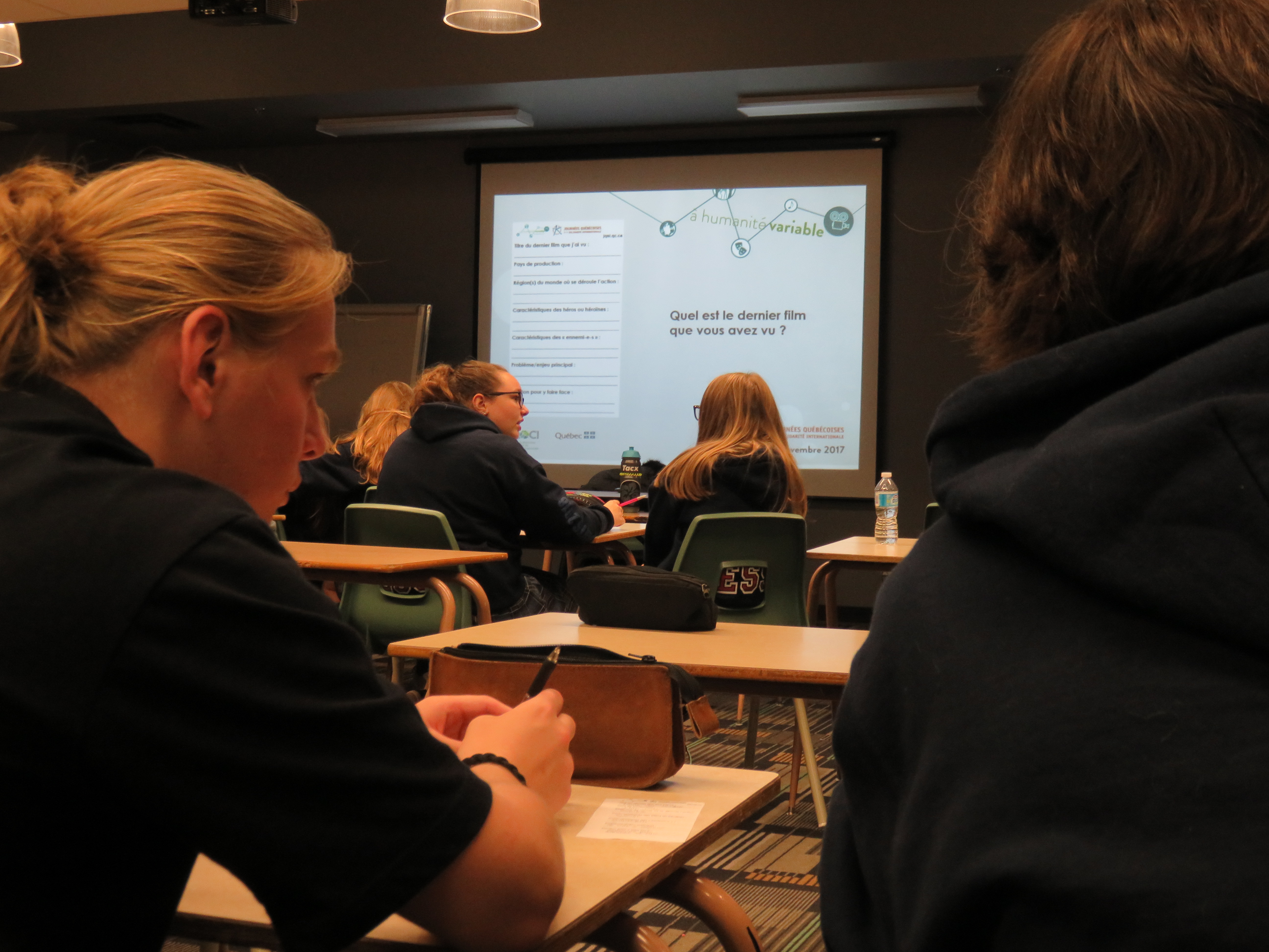 Dans le cadre des Journées québécoises de la Solidarité Internationale qui auront lieu du 9 au 18 novembre 2017, mesdames Frédérique Lefort et Nadia Tranchemontagne ainsi que monsieur Antoine Pourcel sont venus présenter une conférence et un atelier aux élèves du groupe d’option géographie culturelle de 5e secondaire. Ce fut l’occasion d’en apprendre davantage sur la Culture, courroie de transmission entre les populations et la coopération internationale. Un merci tout spécial à Frédérique et Nadia qui nous ont permis de vivre un moment riche de partage, de compréhension et d’ouverture. Pour toute la programmation des activités, consultez le http://www.jqsi.qc.ca/