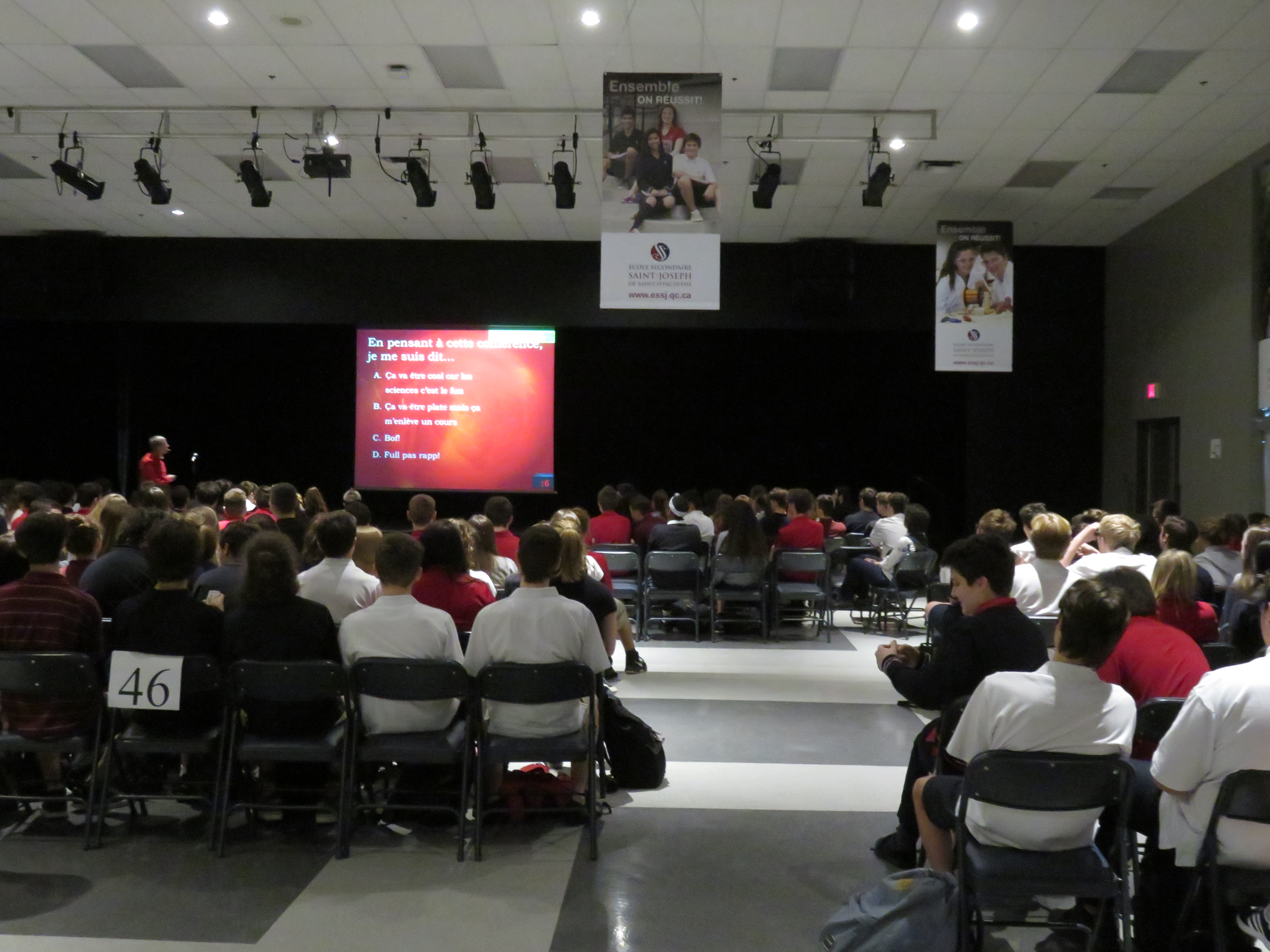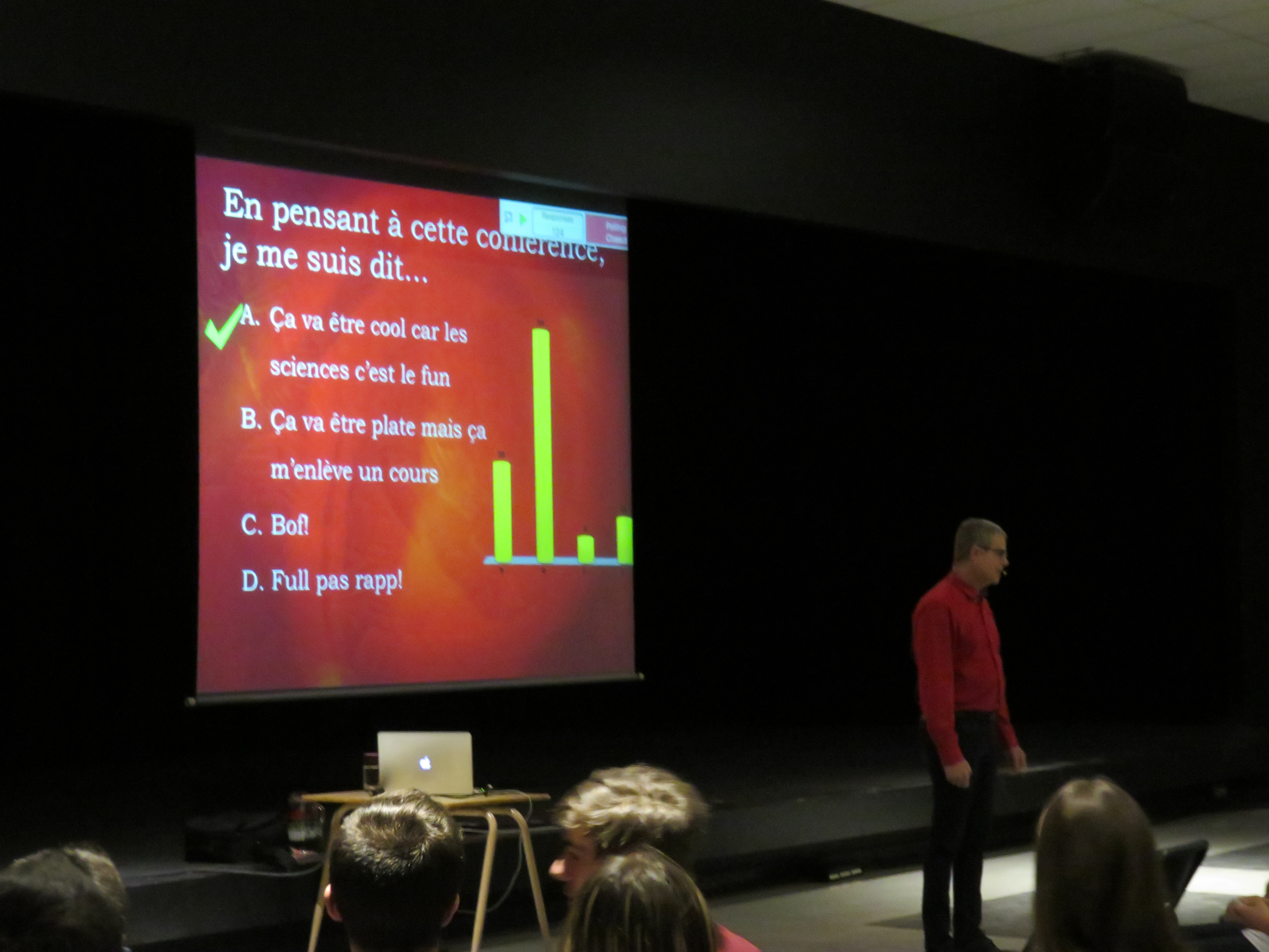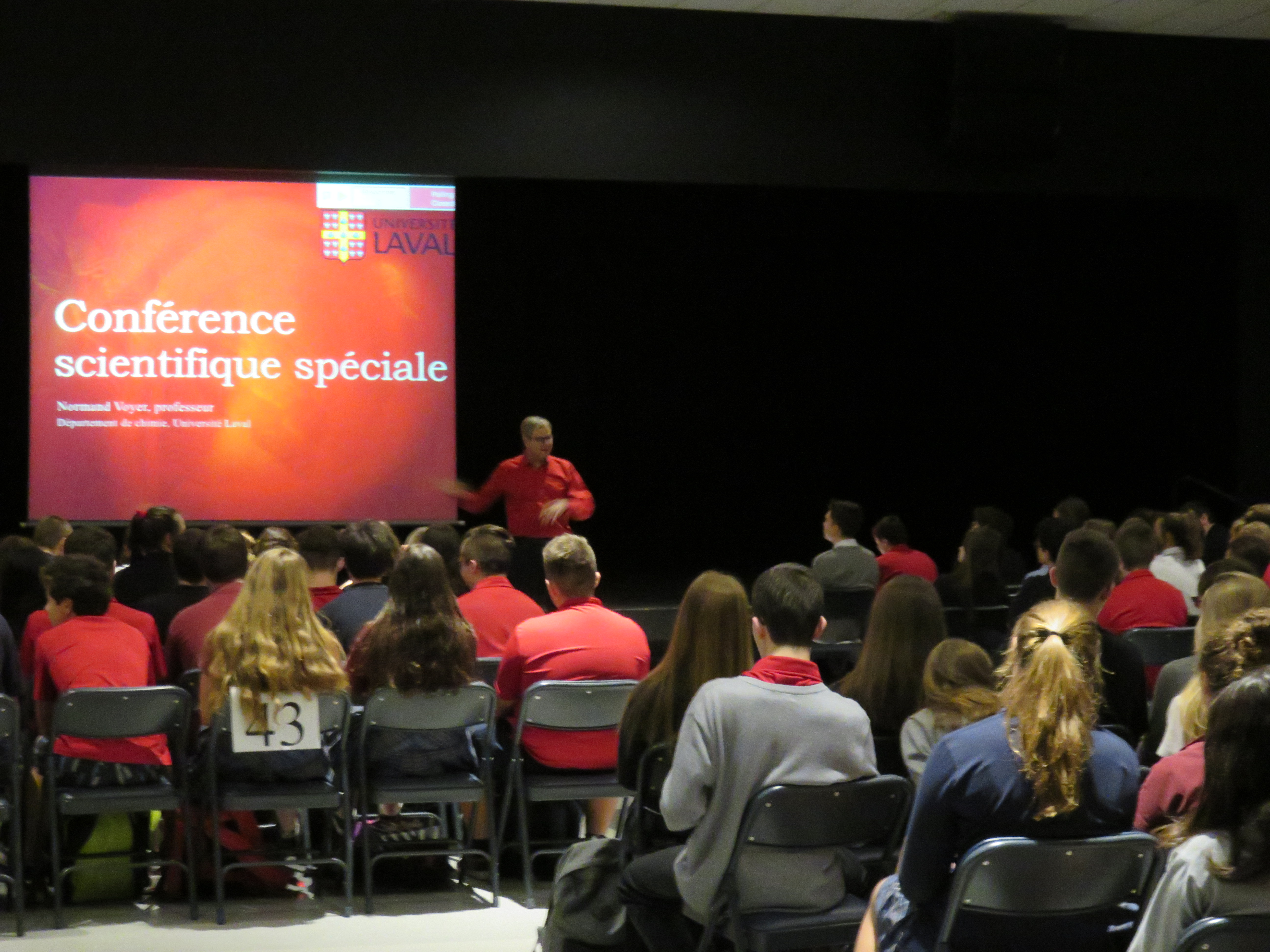 Monsieur Normand Voyer, chimiste et professeur de chimie à l’Université Laval, était présent à l’École le 21 novembre dernier pour présenter sa conférence « La chimie de l’Amour ».  Scientifique reconnu mondialement pour ses recherches sur l’identification de nouveaux composés bioactifs, M. Voyer s’est également donné pour mission de faire de la vulgarisation scientifique et la promotion des sciences auprès du grand public, particulièrement auprès des jeunes.