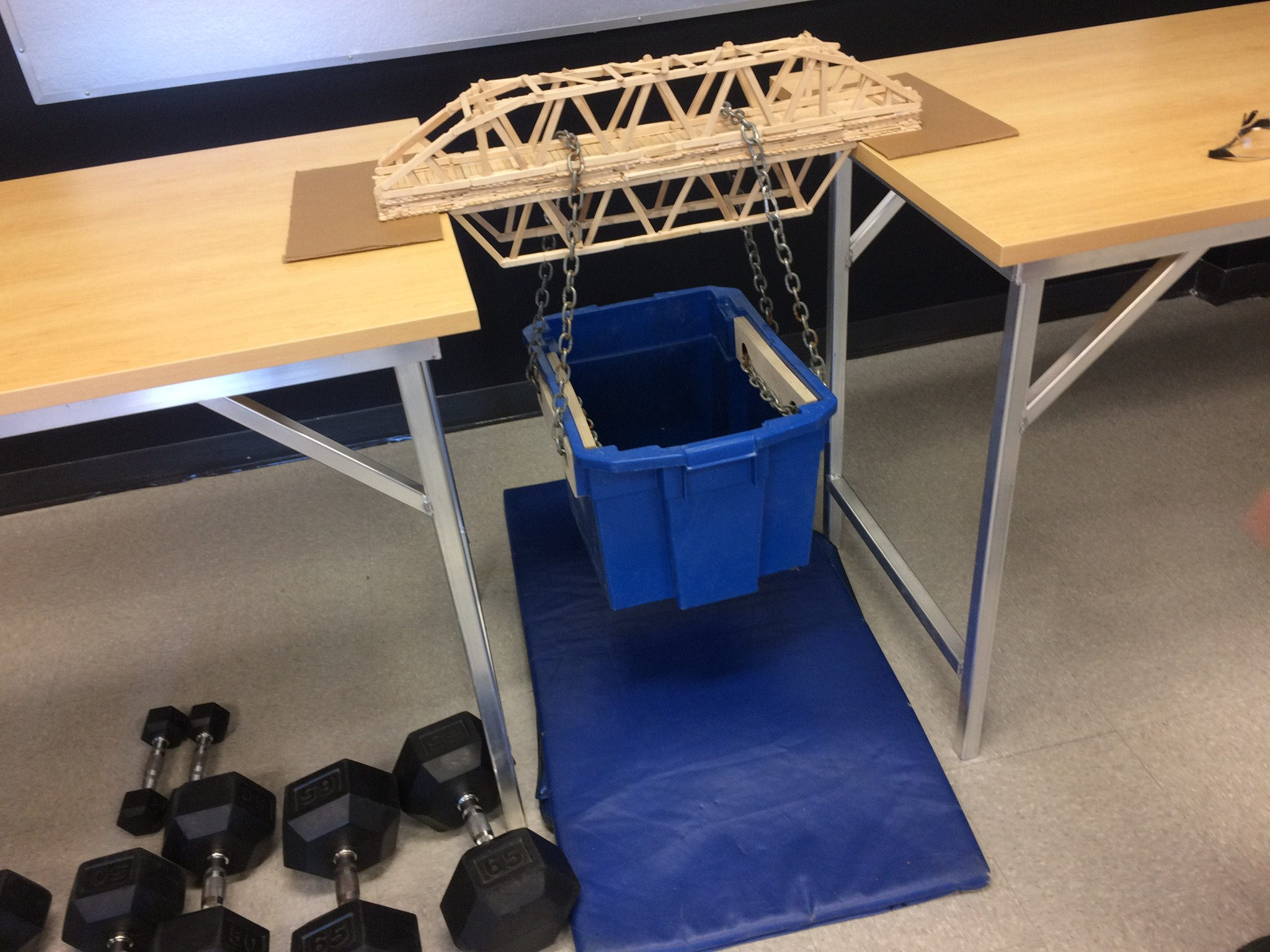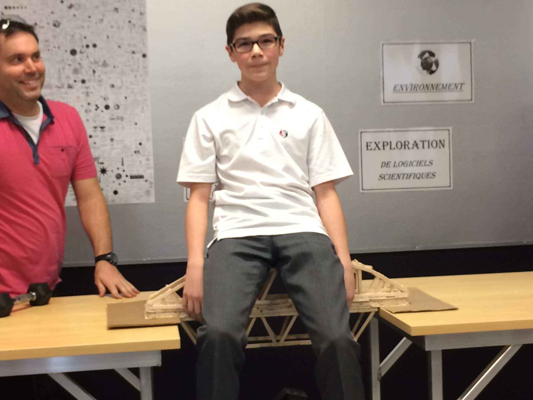 Charge supportée : 115 kg Masse du pont : 0,415 kg - Charles-Éric Bernier et Charles Baril