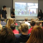 Dans le cadre du cours d’option géographie culturelle de 5e secondaire,  Marie-Jeanne Babeu (groupe 58), Maxence Martel et Maurane Montpetit (du groupe 57) ont présenté leur expérience de 2 semaines en voyage humanitaire au Nicaragua au printemps dernier avec l’École Secondaire St-Joseph. Ils ont expliqué aux autres élèves, leurs camarades de classe pour la plupart, les défis, les réussites et le choc culturel  que peut amener ce genre de voyage. Sur un ton à la fois sérieux et dynamique mais aussi avec beaucoup d’humour, les trois jeunes conférenciers ont retenu l’attention des 70 élèves pendant près d’une heure grâce à leur aisance, leurs photos et leurs anecdotes. Pour l’occasion, durant leur période de géographie, les élèves du groupe 10 se sont joints à l’auditoire afin de bénéficier de ce partage. Dans un mélange de passion, d’énergie et d’humanité, Marie-Jeanne, Maxence et Maurane nous ont surtout livré une partie de leur vie.