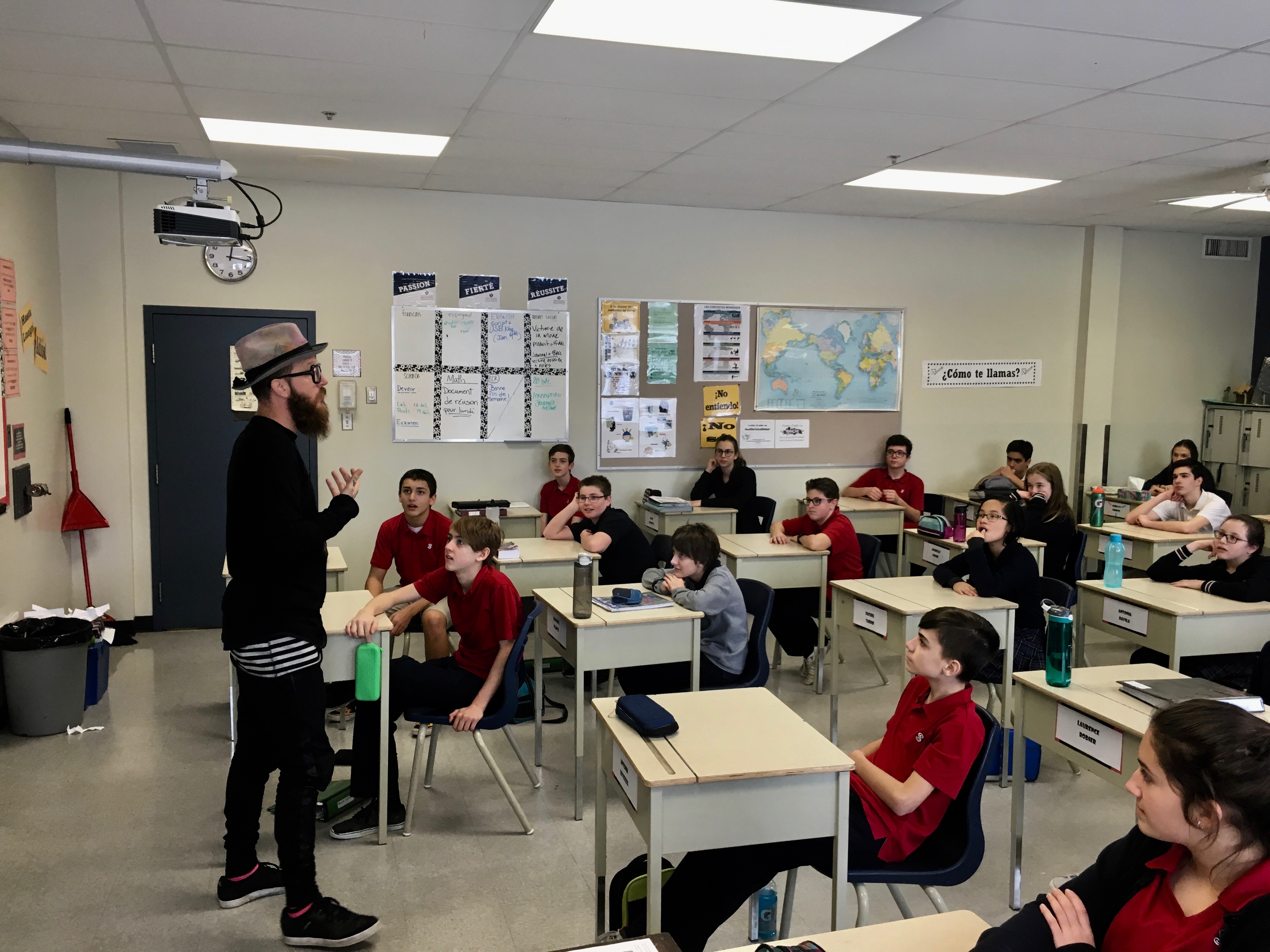 L’industrie du textile : voilà une occasion d’en apprendre davantage sur les enjeux économiques en plus de faire une incursion dans le domaine de la mode au Québec. Les élèves des groupes 25 et 26 ont étudié la question dans le cadre de leur cours d’univers social. Une fois les notions de base abordées, ils ont eu l’occasion de visionner le film documentaire « Le coût réel » (the true cost) pour ensuite mettre en pratique leurs apprentissages sur une pièce de vêtement. Pour couronner le tout, ils ont reçu la visite de Marc Lessard, alias Master Bougaricci, un créateur de vêtement québécois qui fait de plus en plus sa marque ici comme ailleurs.