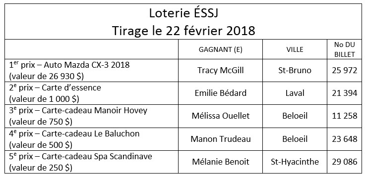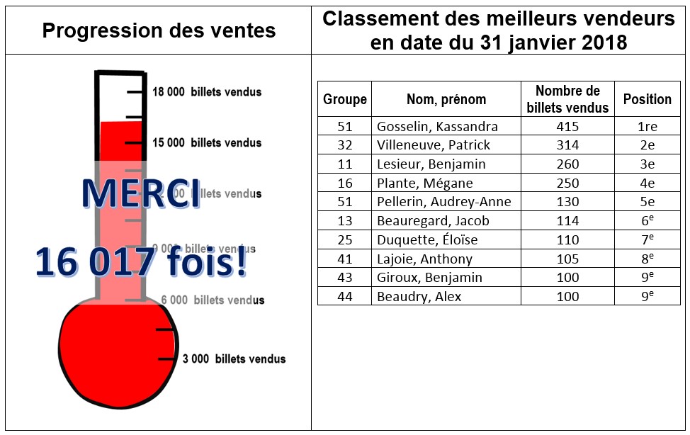 Je tiens à vous remercier, au nom de l’École, pour votre grande participation encore une fois cette année. Grâce à cet encouragement, l’École pourra offrir diverses activités et projets pour leurs élèves.