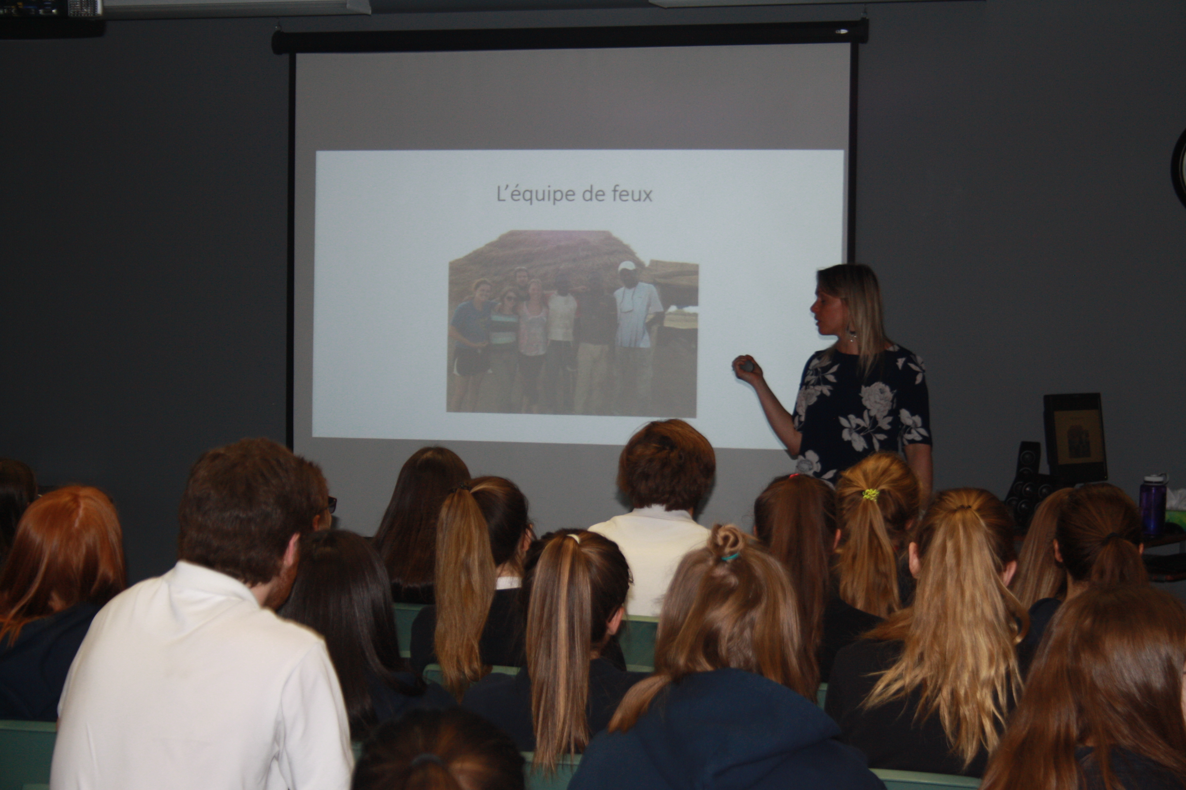 Dans le cadre de l’étude de l’aire culturelle africaine en géographie culturelle de 5e secondaire, Madame Marie-Hélène Ladouceur-Parent, travailleuse sociale et aventurière, est venue présenter aux élèves son voyage humanitaire au Sénégal en 2014. Durant près d’une heure, elle a présenté l’objectif de ce voyage et les défis que comporte la mise en chantier d’une station de filtration des eaux dans la brousse sénégalaise. Encore une fois, durant leur période de géographie, les élèves du groupe 10 se sont joints au groupe afin de bénéficier de cette conférence. Avec passion, douceur et humilité, Marie-Hélène nous a partagé son expérience africaine, les échanges culturels qu’elle a vécus et les découvertes qui l’ont transformée.