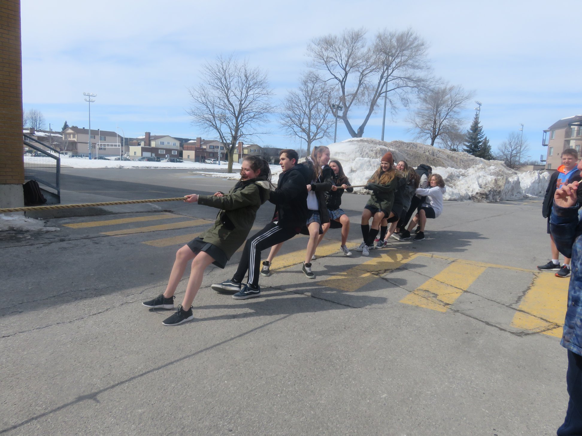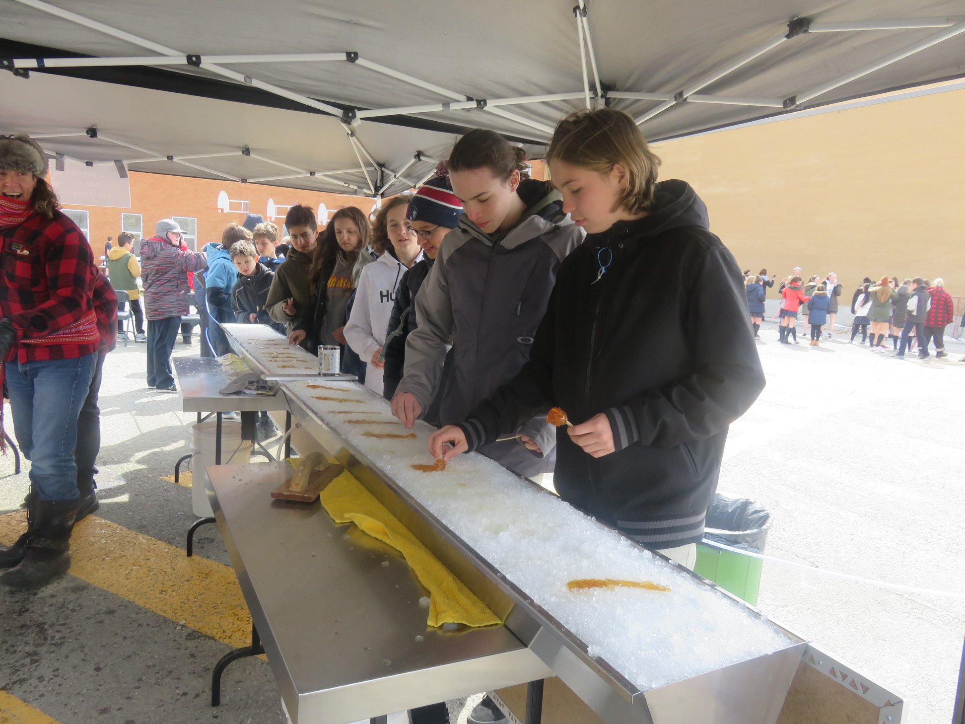 Jeudi dernier, l’arrivée du printemps a été célébrée à l’École secondaire Saint-Jospeh avec une journée cabane à sucre. L’équipe de la cafétéria a préparé et servi un succulent repas de cabane … un délice pour la centaine d’élèves et membres du personnel qui ont pu s’en régaler. De plus, durant le dîner, animation, musique traditionnelle, danse et souque à la corde étaient au rendez-vous. Bien évidemment, qui dit cabane dit tire sur la neige… Nous avons été nombreux à nous sucrer le bec !