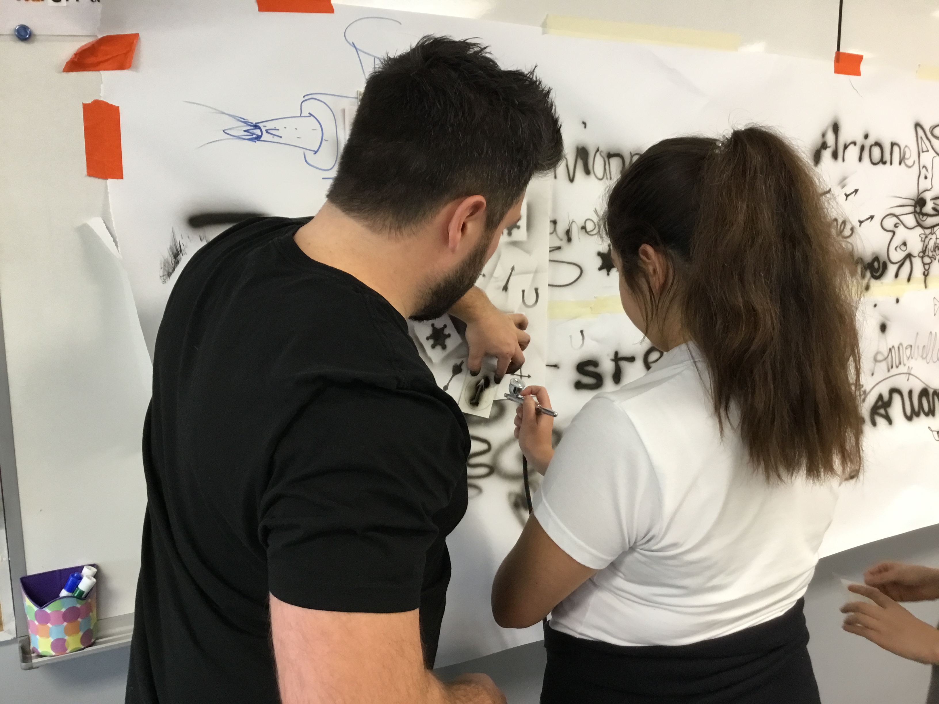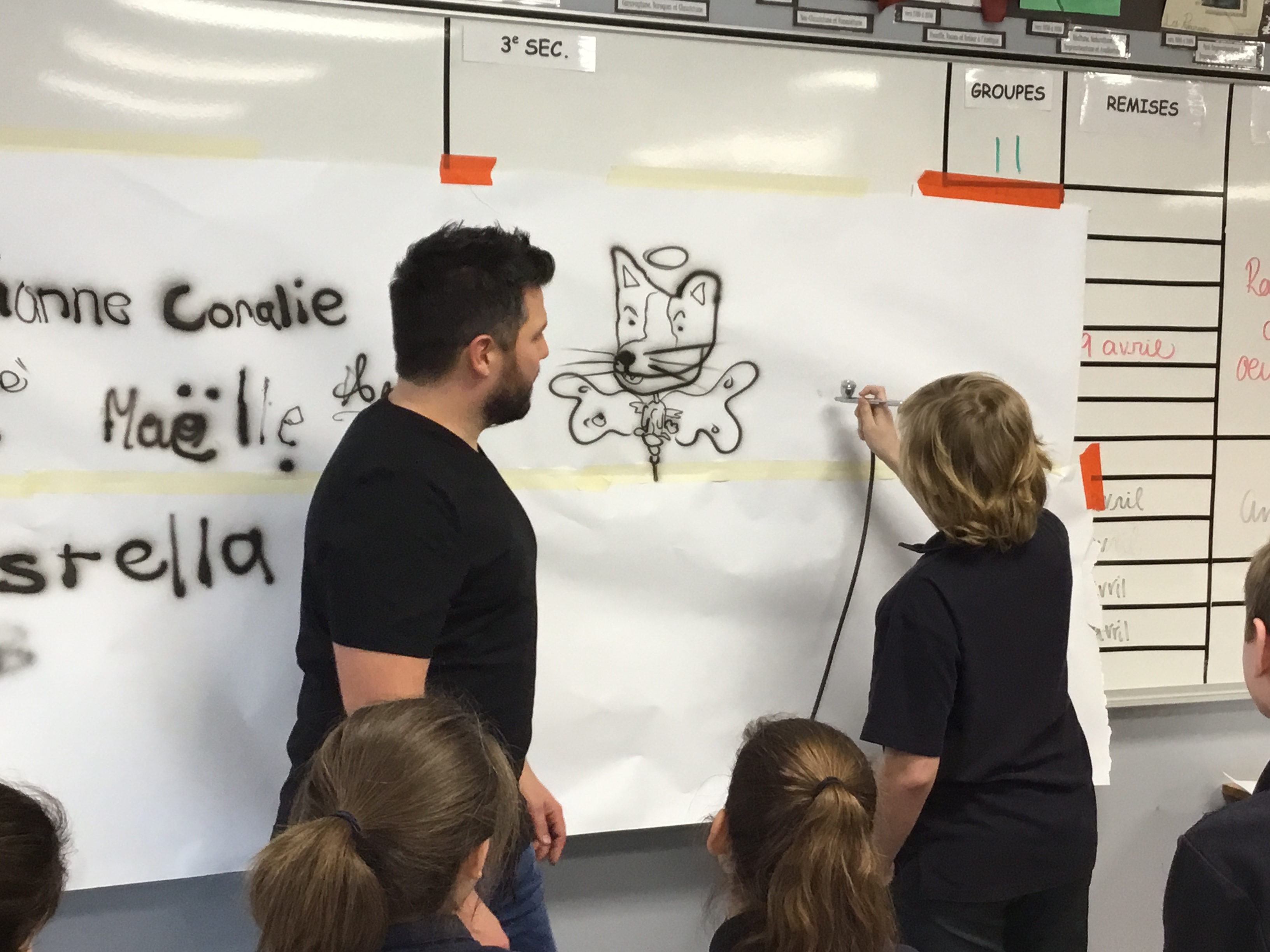 Les élèves inscrits en Multimédia et arts visuels ont reçu la visite de l’artiste David Leroux, qui œuvre dans le monde du airbrush depuis plus de 13 ans. Ancien joueur de hockey et artiste, il embellit plus de 70 casques de gardien par année avec son art. Sa visite fut un vrai succès et les élèves ont eu le privilège d’essayer l’outil principal de l’artiste, soit le fusil à airbrush.