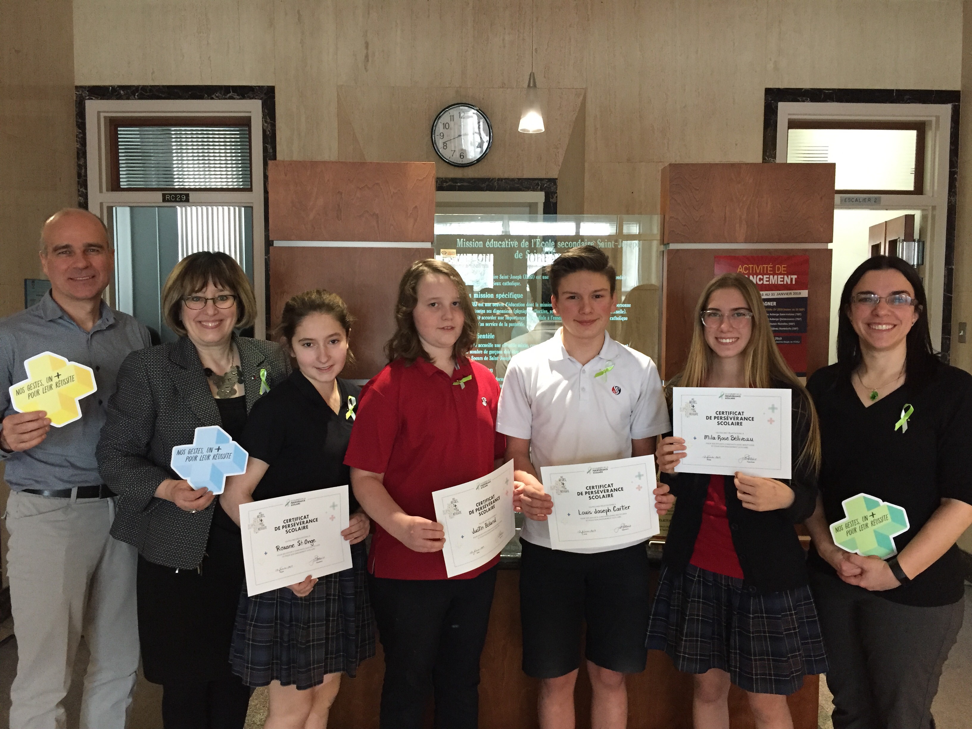 Aujourd’hui, nous avons l’honneur de souligner la persévérance de quatre élèves du premier cycle :