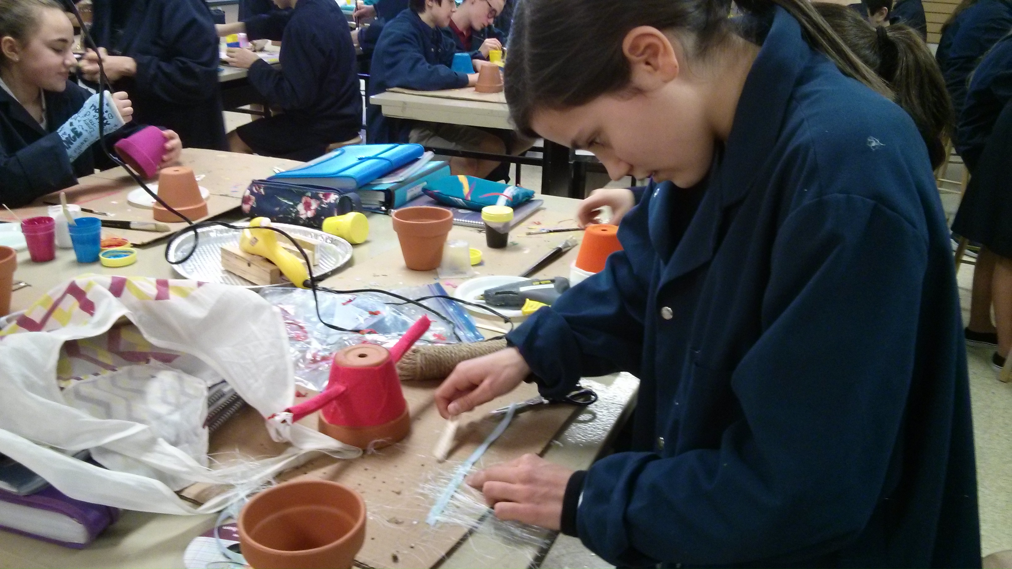 En février, mars et avril, les élèves des groupes PEI secondaire 2 participent à un projet interdisciplinaire dans le cadre de la semaine de la prévention du suicide et du Jour de la Terre. Les cours d’ECR et de design se joignent ensemble pour proposer une activité spéciale dont l’objectif est de prendre symboliquement soin de soi et des autres. Ainsi, chaque élève est invité à créer un personnage en pots à leur image qui aura la fonction de faire pousser une plante dont il sera responsable jusqu’à la fin de l’année scolaire. Une belle expérience haute en couleur!
