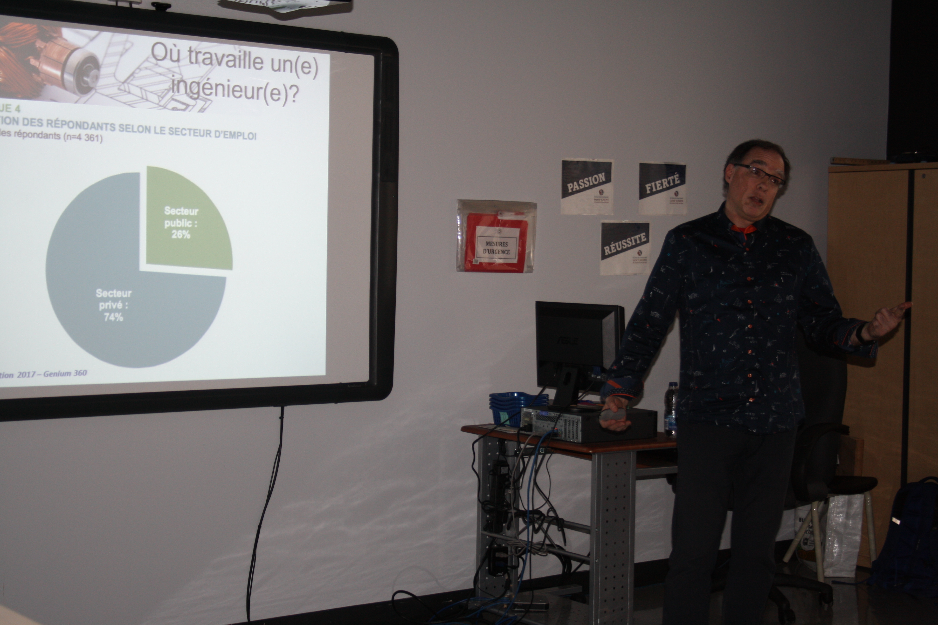 Pas moins de 28 professionnels provenant de multiples secteurs d’emploi sont venus témoigner de leur parcours professionnel et partager leur passion avec les élèves. Selon leurs intérêts, les élèves ont choisi et participé à quatre ateliers leur permettant d’explorer des possibilités de carrières dans des domaines tels que la santé, l’éducation, la construction, le génie, l’informatique, la mécanique, la comptabilité, les arts, les médias sociaux, la télévision, l’agriculture, etc. Ce fut un franc succès!