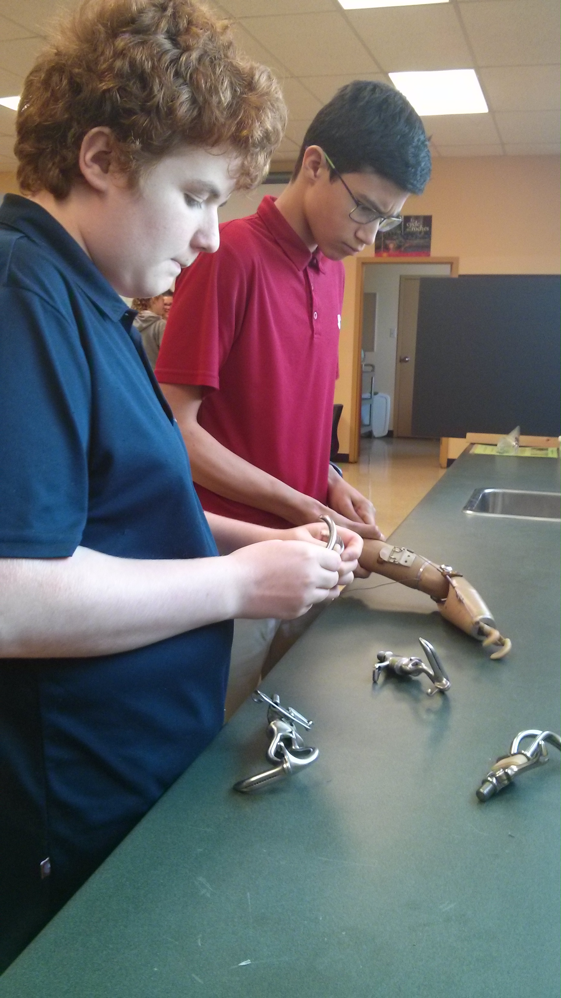 Le 31 mai 2019, les élèves des groupes PEI de 2e secondaire ont rencontré Mme Annie Goulet, orthoprothésiste et propriétaire du laboratoire NovaMedic à St-Hyacinthe, qui est venue leur parler de l’histoire de l’évolution des prothèses pour les personnes amputées. Après la conférence, les élèves ont eu le plaisir de faire des expérimentations avec de vraies mains articulées et bioniques. Beaucoup de plaisir en perspective!