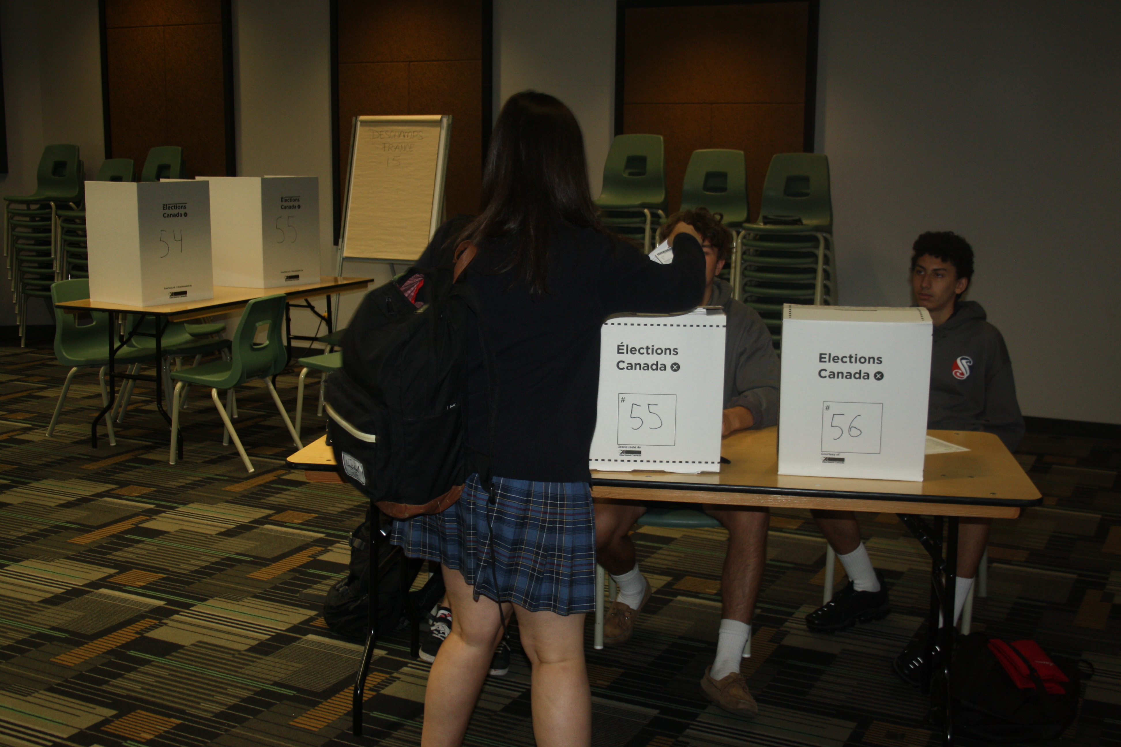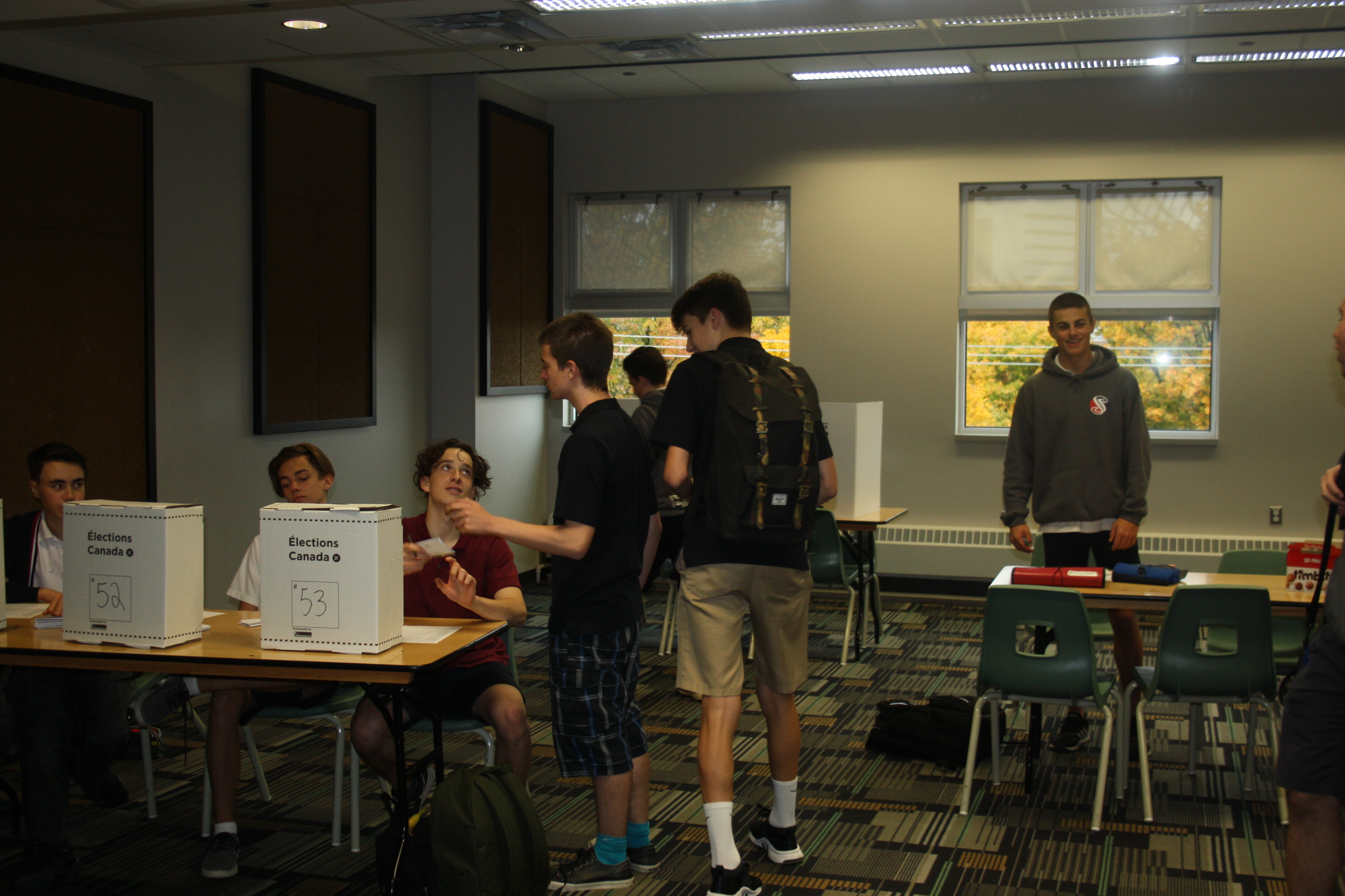 Dans le but de conscientiser les élèves aux élections fédérales qui arrivent à grands pas, des boites de scrutins ont été installées dans un local et des bulletins de vote distribués à nos élèves de 5e secondaire. C’est avec enthousiasme qu’ils se sont prêtés au jeu, carte étudiante en main en guise de pièce d’identité, afin de faire valoir leur droit fondamental de voter. Ils font partie du million d’élèves du primaire et du secondaire au Canada à s’être prêtés au jeu, chapeauté par l’organisme Civix d’Élections Canada.