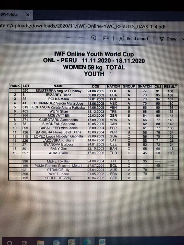 Charlotte Simoneau (4e secondaire), 9e place à sa première compétition internationale d’haltérophilie. Une belle performance avec 62 kilos à l’arraché et 80 kilos à l’épaulé-jeté pour un total de 142 kilos.