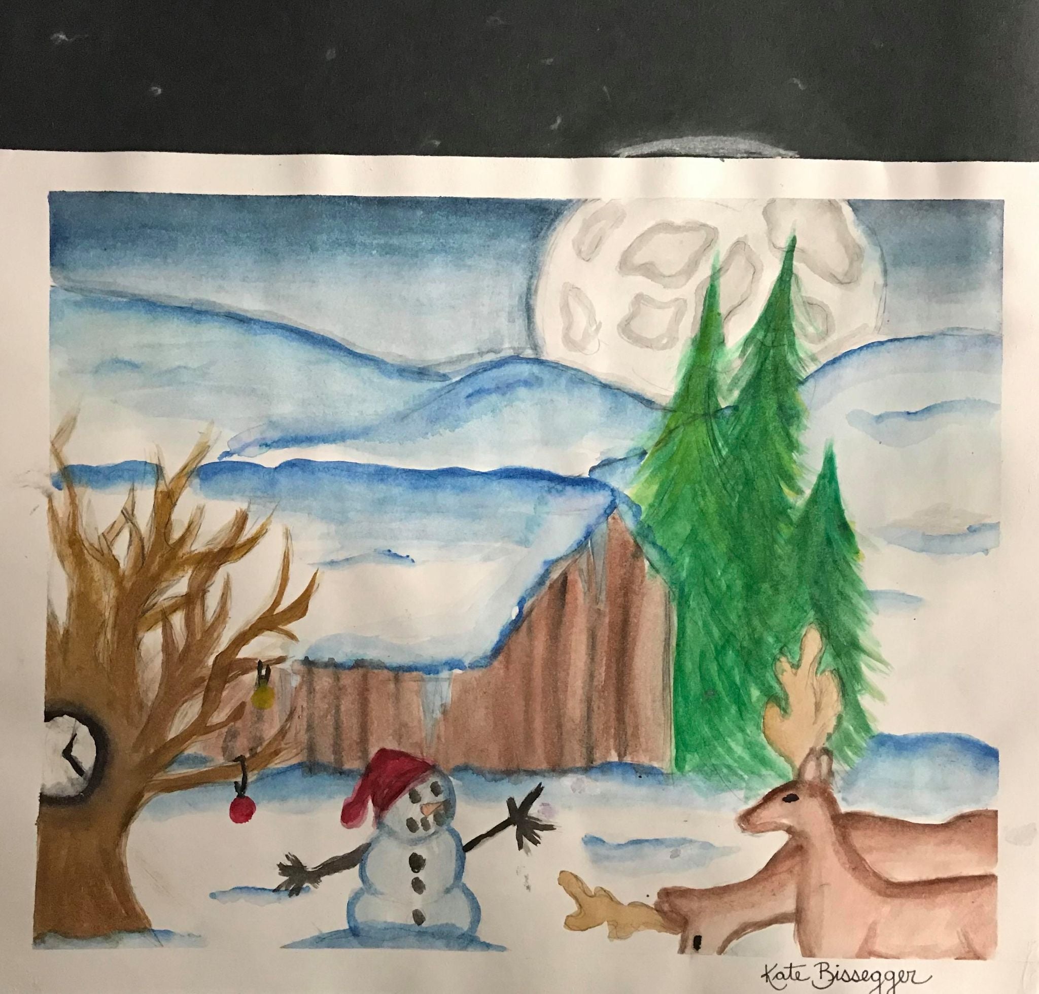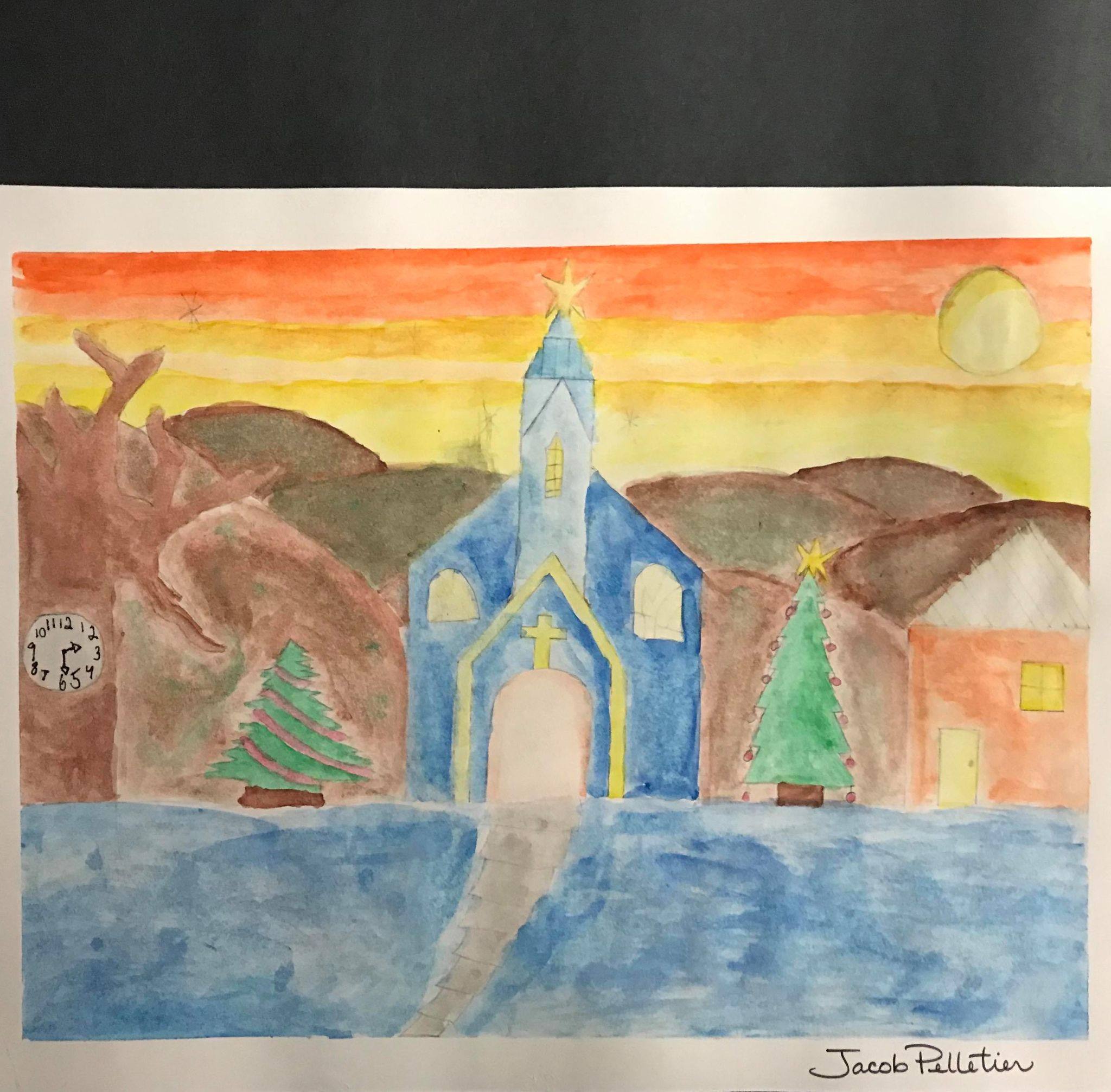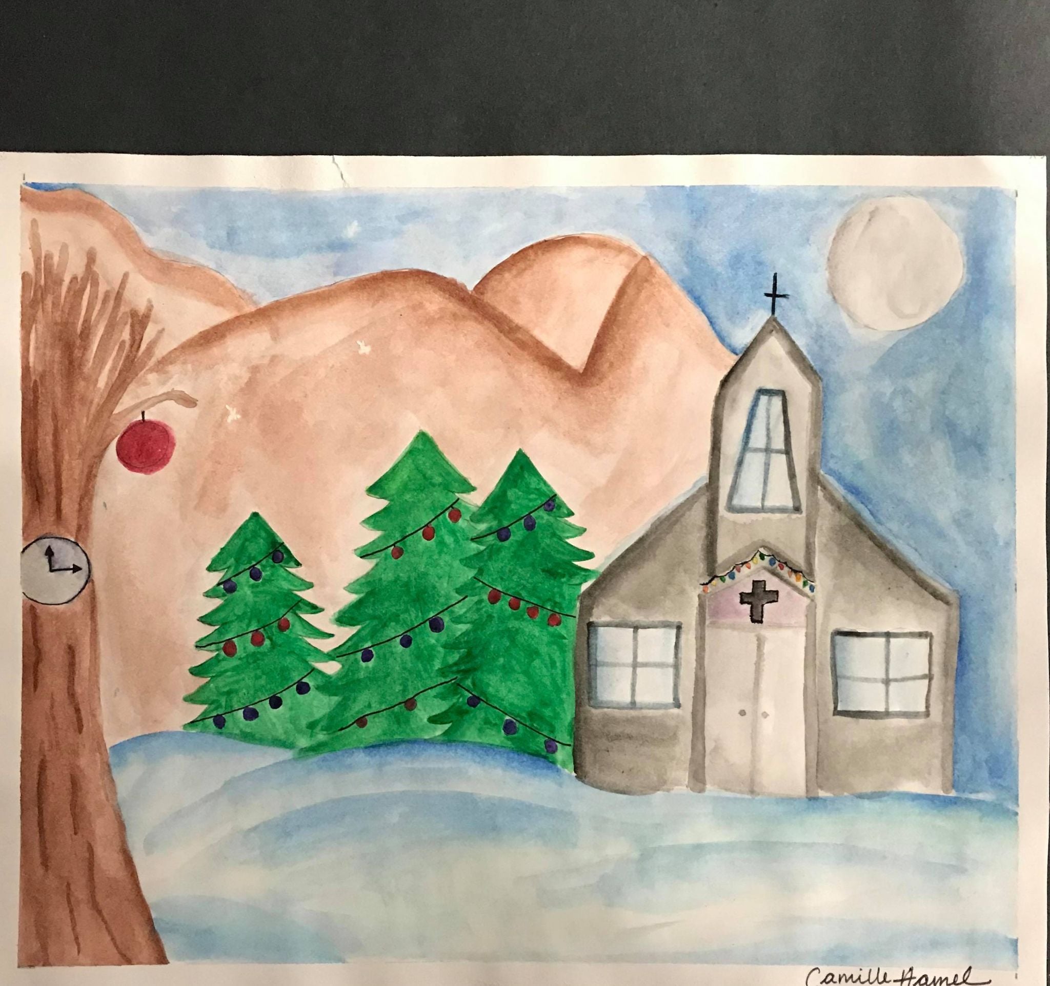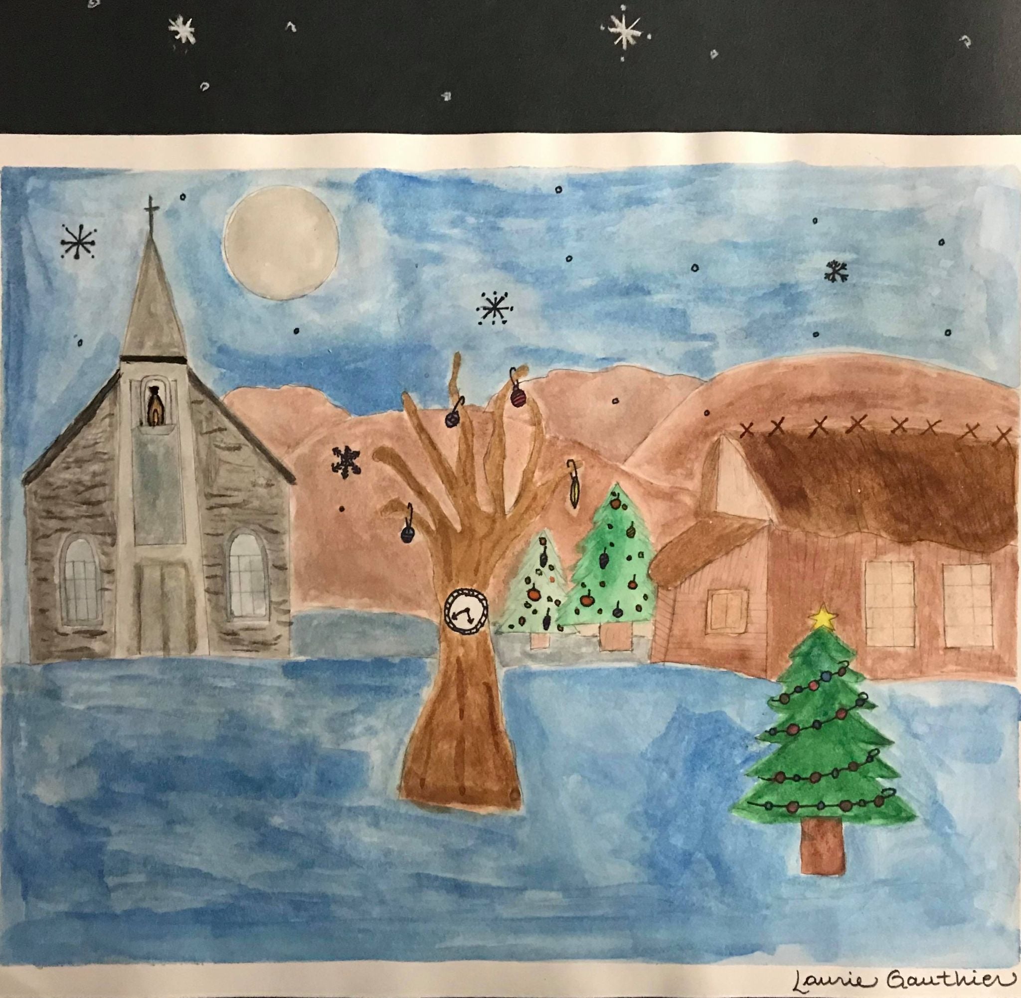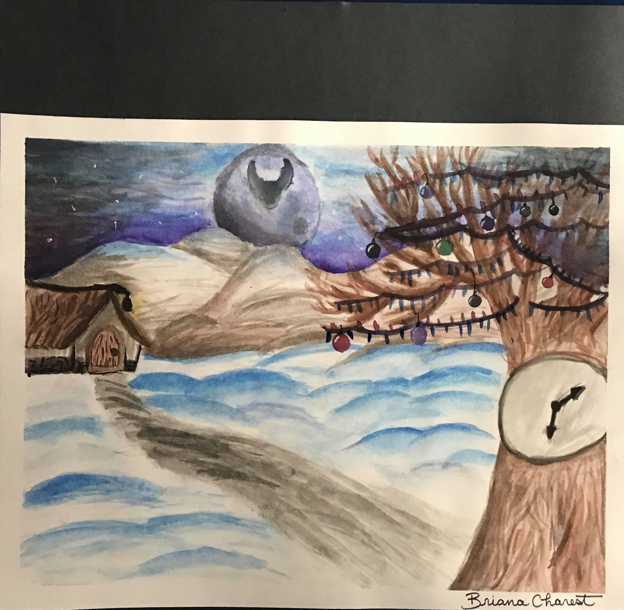 Suite au visionnement du film québécois Babine, les élèves devaient représenter un paysage hivernal s’inspirant de l’univers visuel du film. Ils devaient aussi introduire le fameux « arbre à horloge » dans leur aquarelle. Les projets seront exposés lors de l’exposition de Noël dans la cafétéria Moreau.