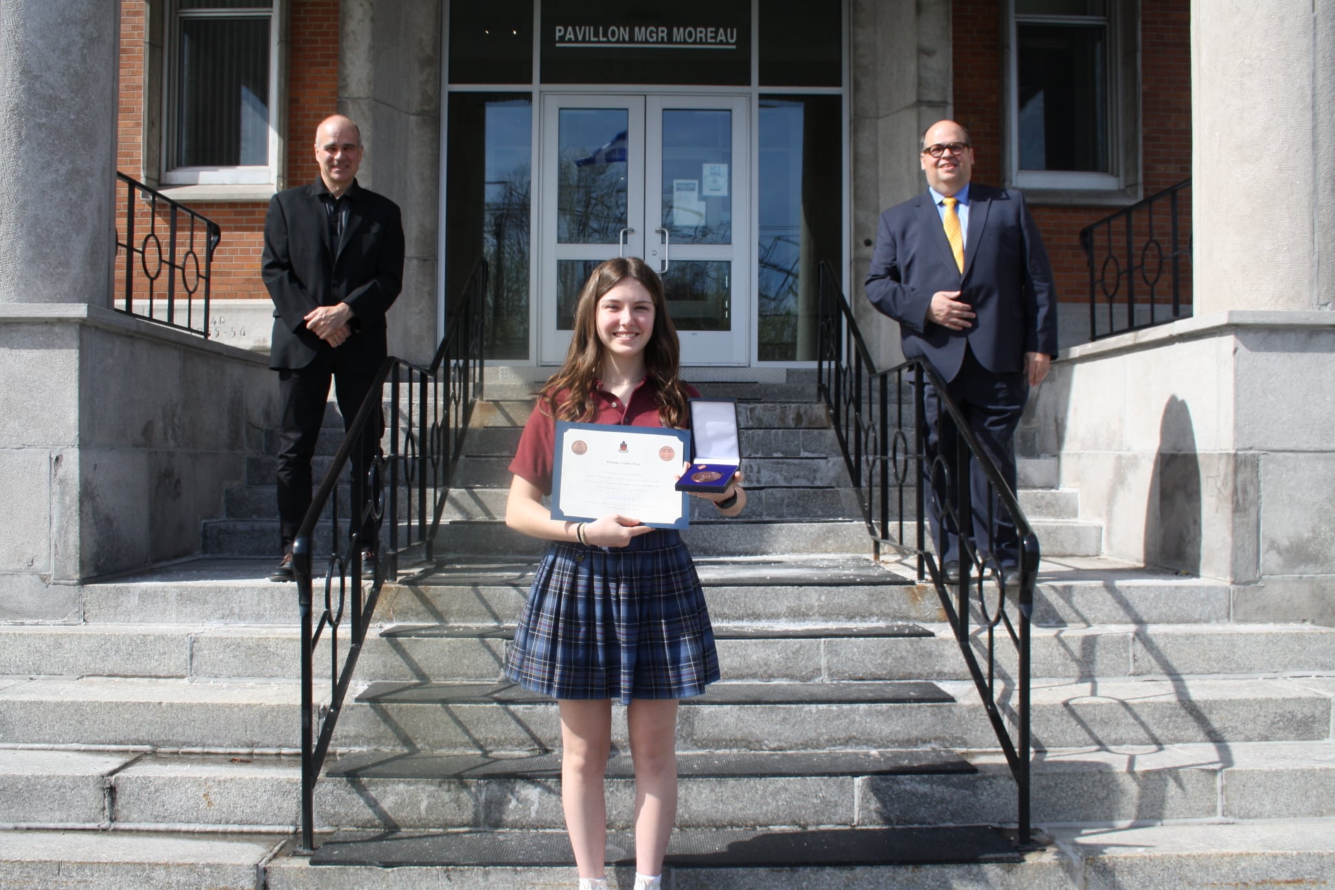 Ce matin, nous avons remis la Médaille du lieutenant-gouverneur pour la jeunesse à Noémie Dion du groupe 57.