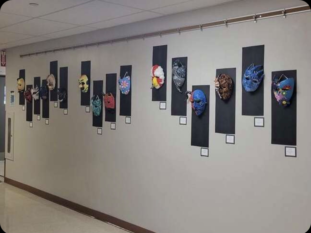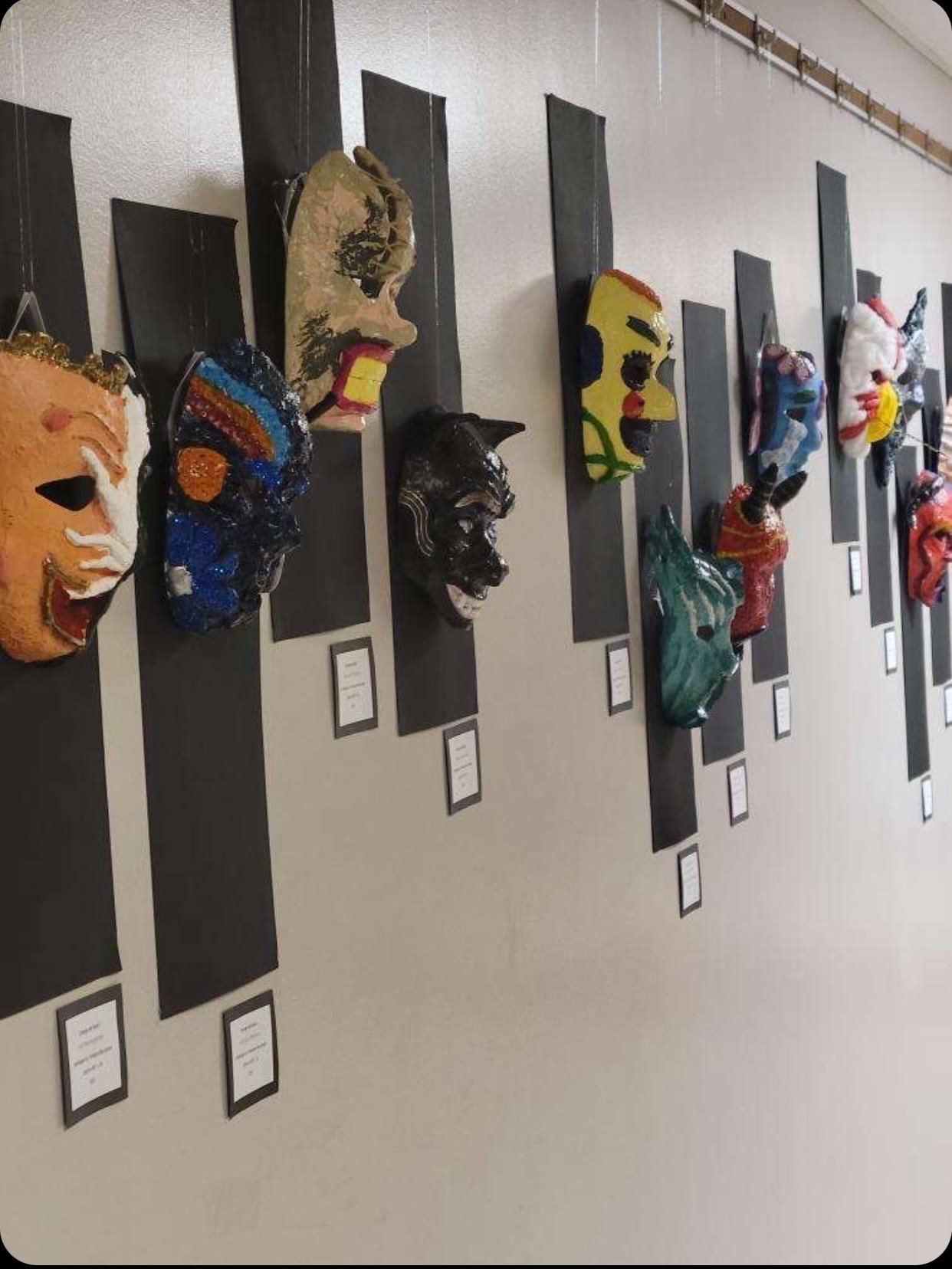 Au cours des périodes du programme Arts + proposé en 5e secondaire, les élèves des groupes A & B ont dû créer un masque à partir d’un thème de leur choix. Ils ont modelé le tout sur un masque déjà fourni au départ pour obtenir le résultat qu’il désirait.