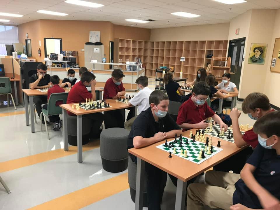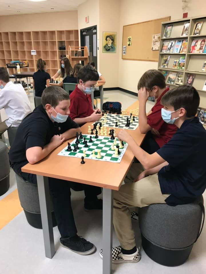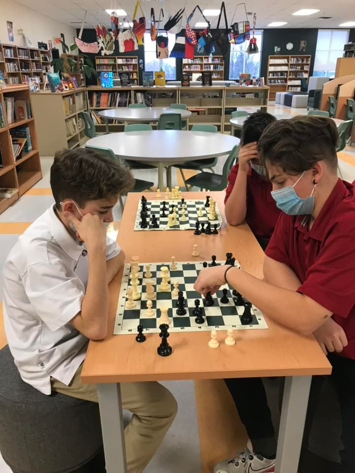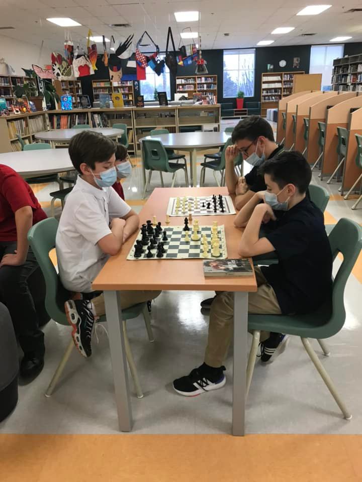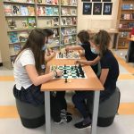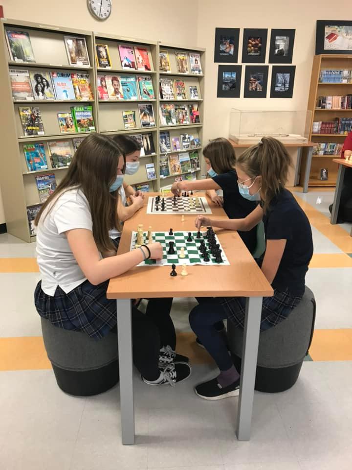Depuis quelques semaines, nous avons plusieurs élèves qui découvrent les rudiments du jeu d’échecs. Tous les vendredis, des élèves participent au club d’échecs, mais ils peuvent passer tous les jours pour jouer aux échecs à la bibliothèque. Les jeux restent en place pour placer un pion ou gagner une partie !
