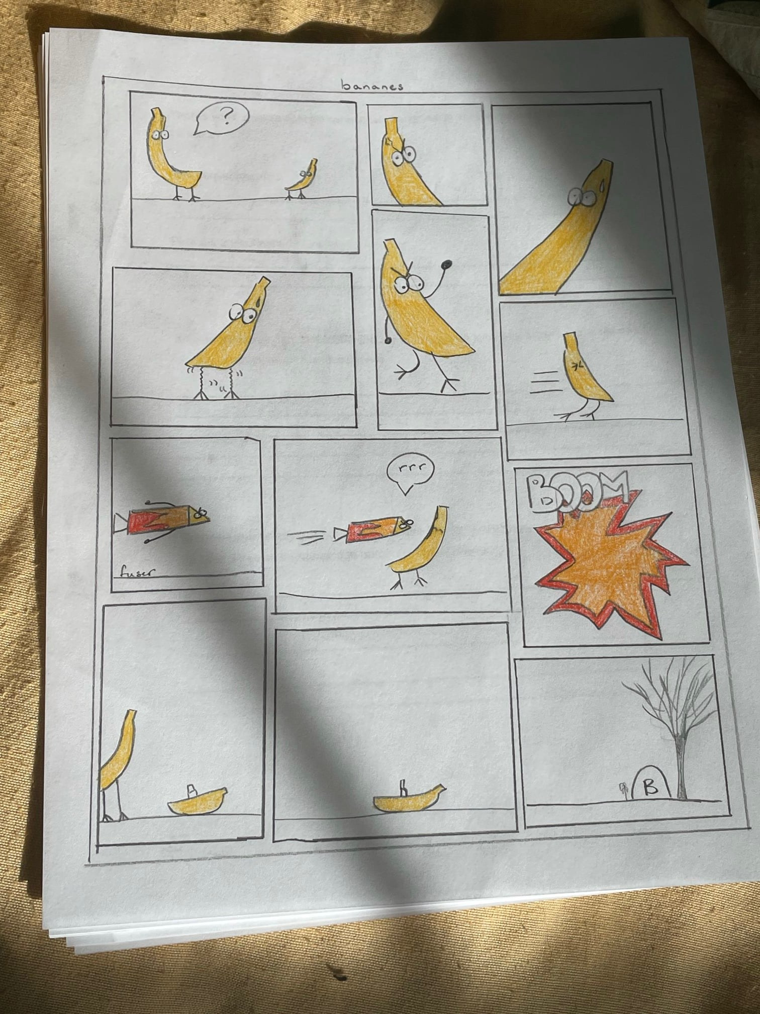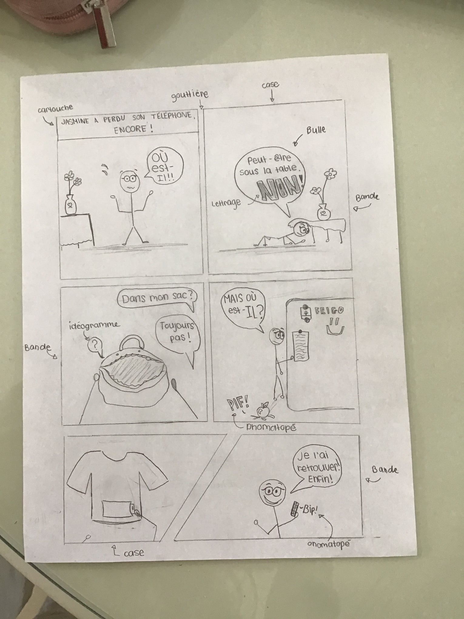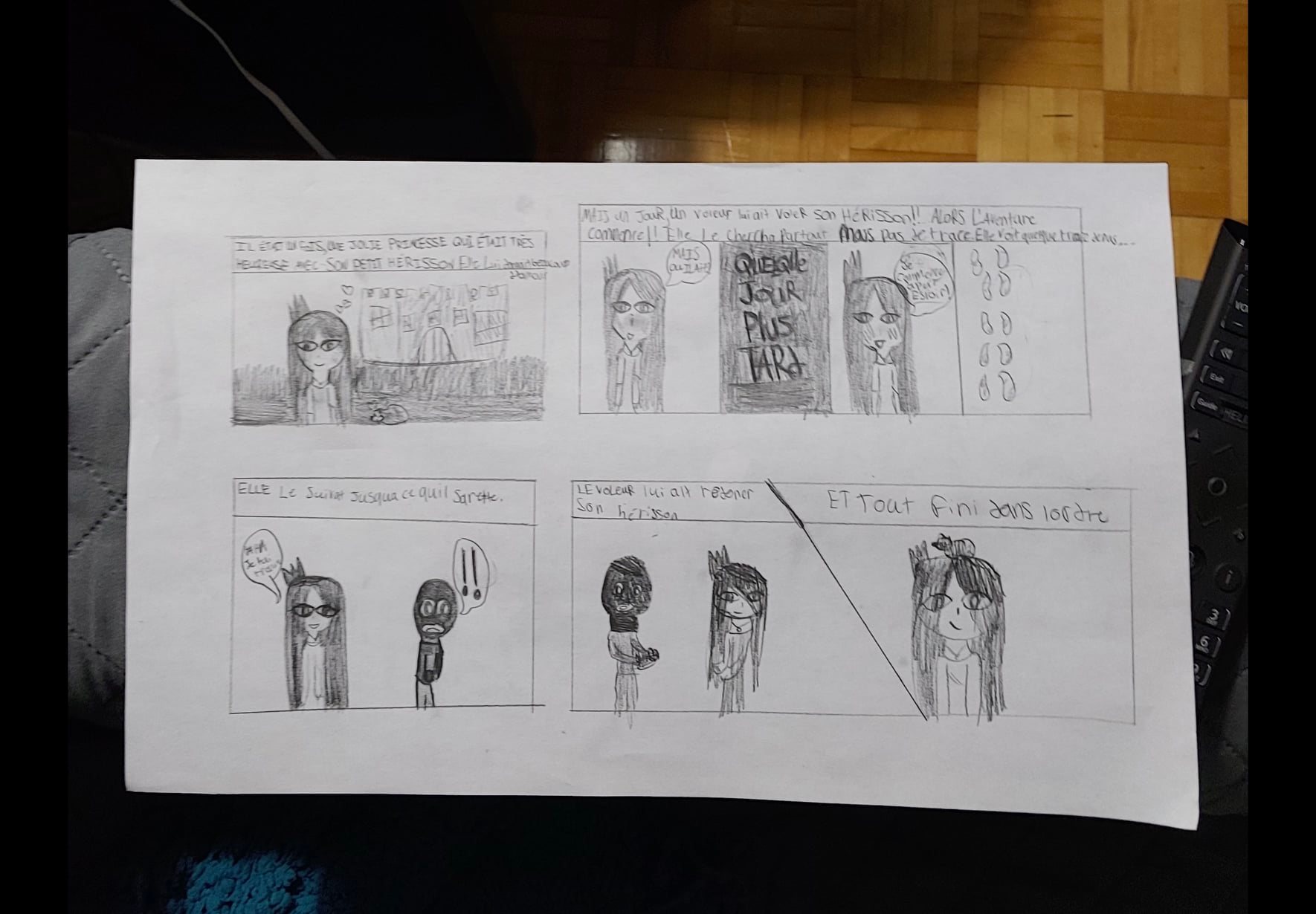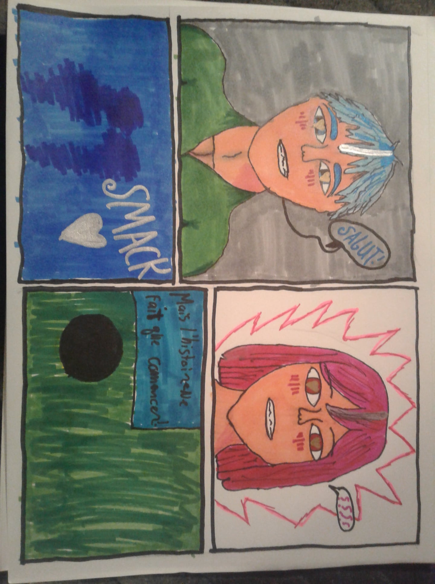 Dans le cadre du cours de français de première secondaire, les élèves des groupes 13-18 et 19 ont créé une «mini-bande dessinée» où ils avaient à intégrer le vocabulaire de la bande dessinée. En voici quelques exemples!