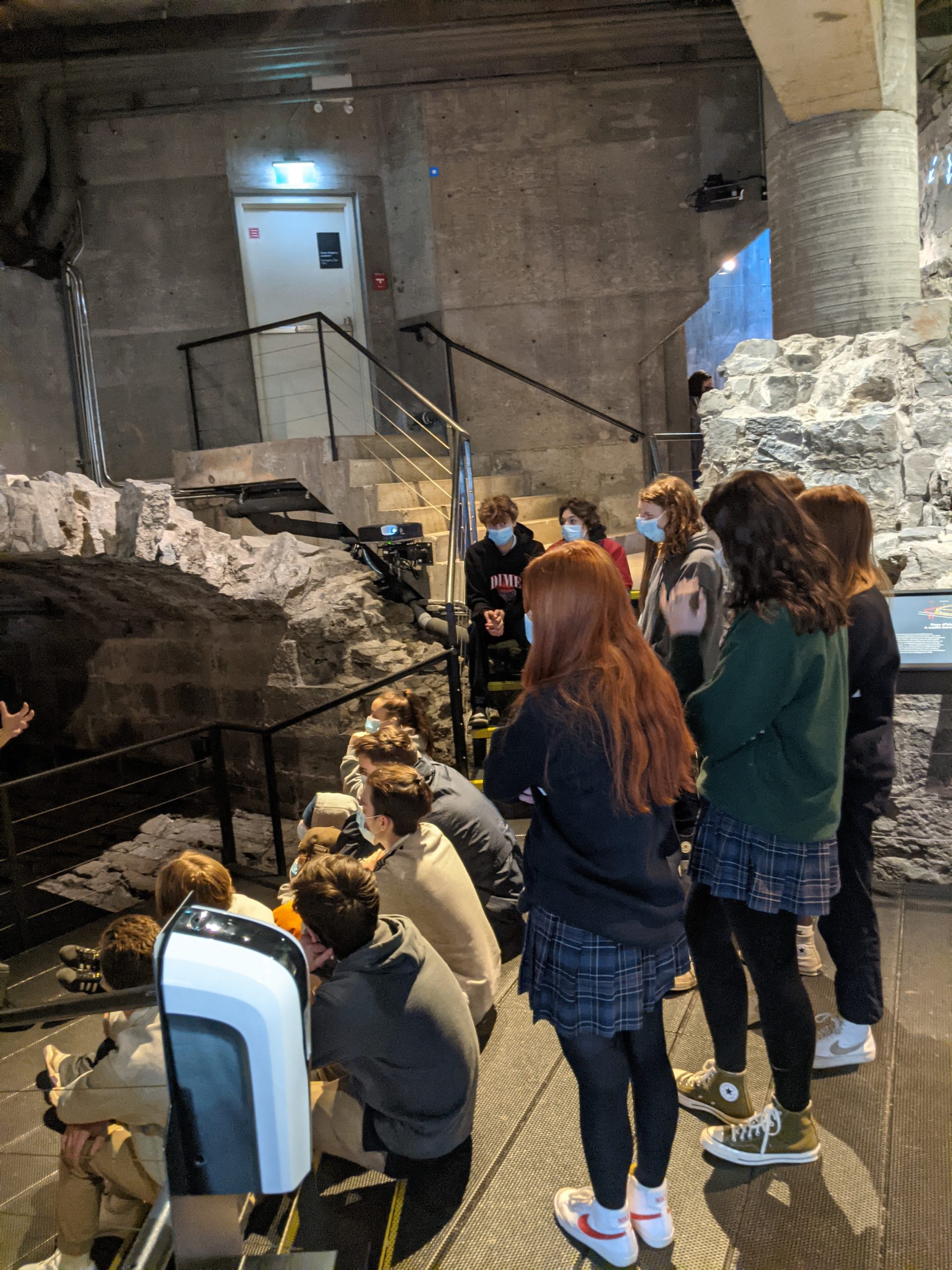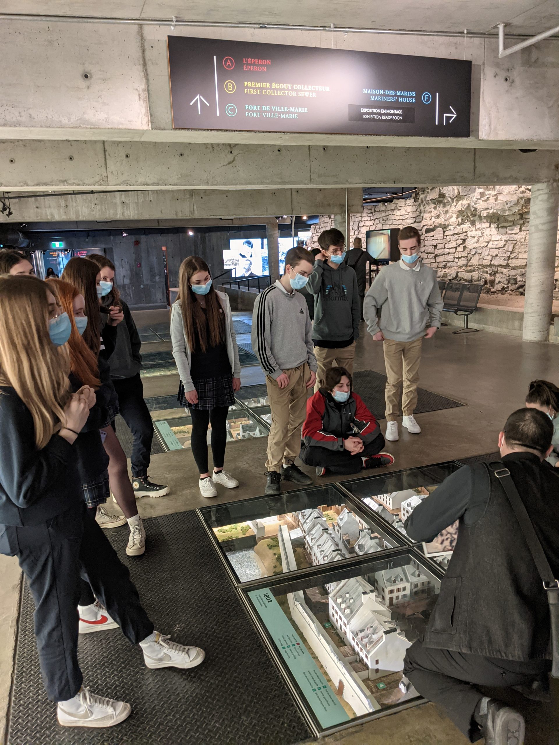 Le mardi 22 mars dernier, les élèves des groupes 46 et 47 ont visité le musée Pointe-à-Callière de Montréal. Ils ont effectué, grâce aux découvertes archéologiques des dernières années, un voyage dans le temps, du début de la colonie de Ville-Marie en 1642 jusqu’à aujourd’hui. En après-midi, ils ont expérimenté, pour la première fois de l’histoire du musée, une visite interactive sur le thème de l’histoire du traitement des eaux usées.