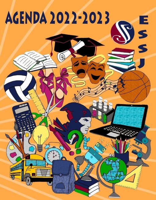 Plusieurs élèves en arts plastiques ont proposé des dessins intéressants et deux ont été retenus. Suite au vote, voici la couverture gagnante pour notre agenda de l’an prochain!