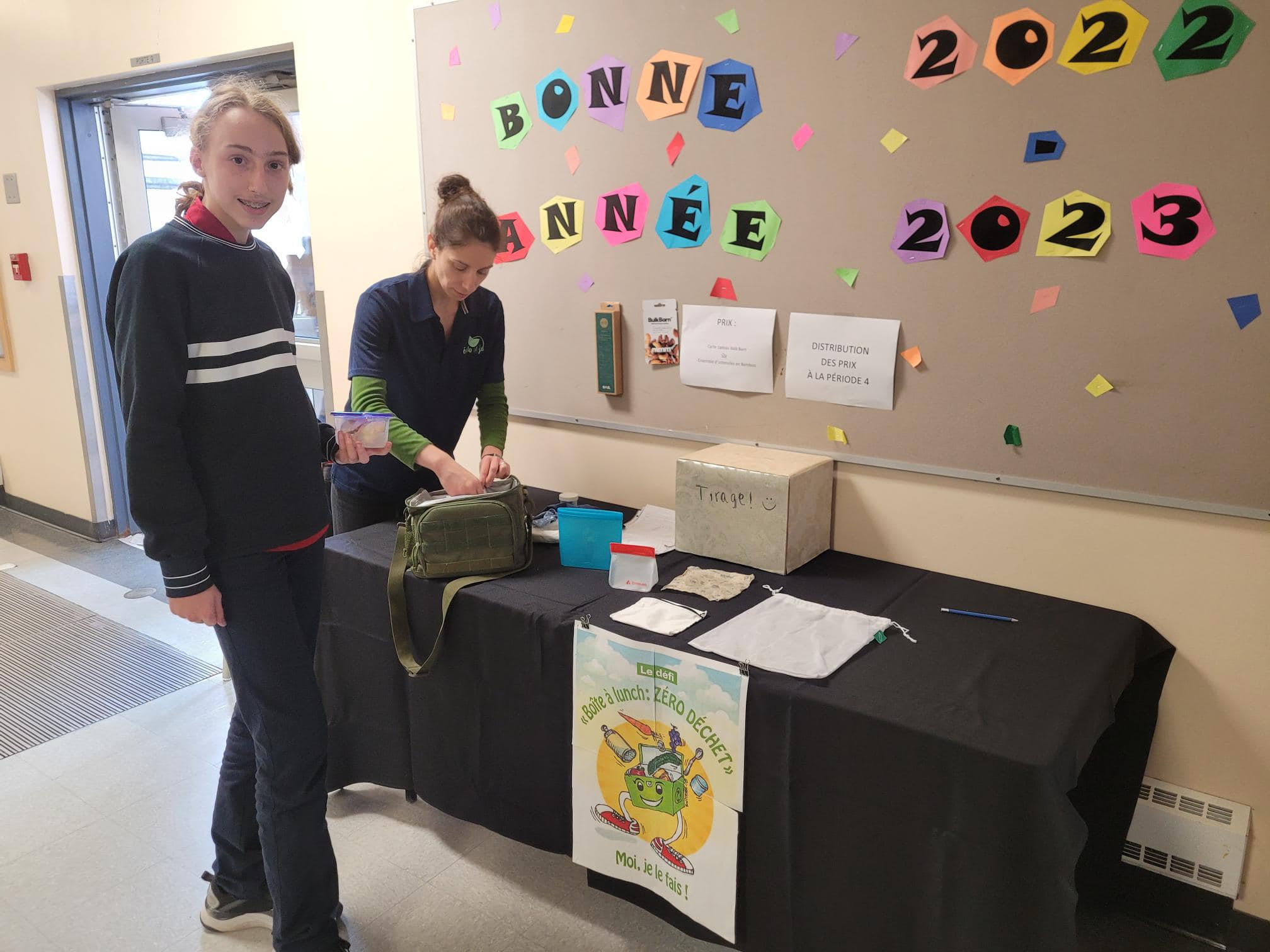 Près d’une cinquantaine d’élèves se sont prêtés au jeu et ont été félicités pour avoir fourni l’effort de préparer pour l’occasion une boîte à lunch qui ne contient que des contenants réutilisables ou écoresponsables.
