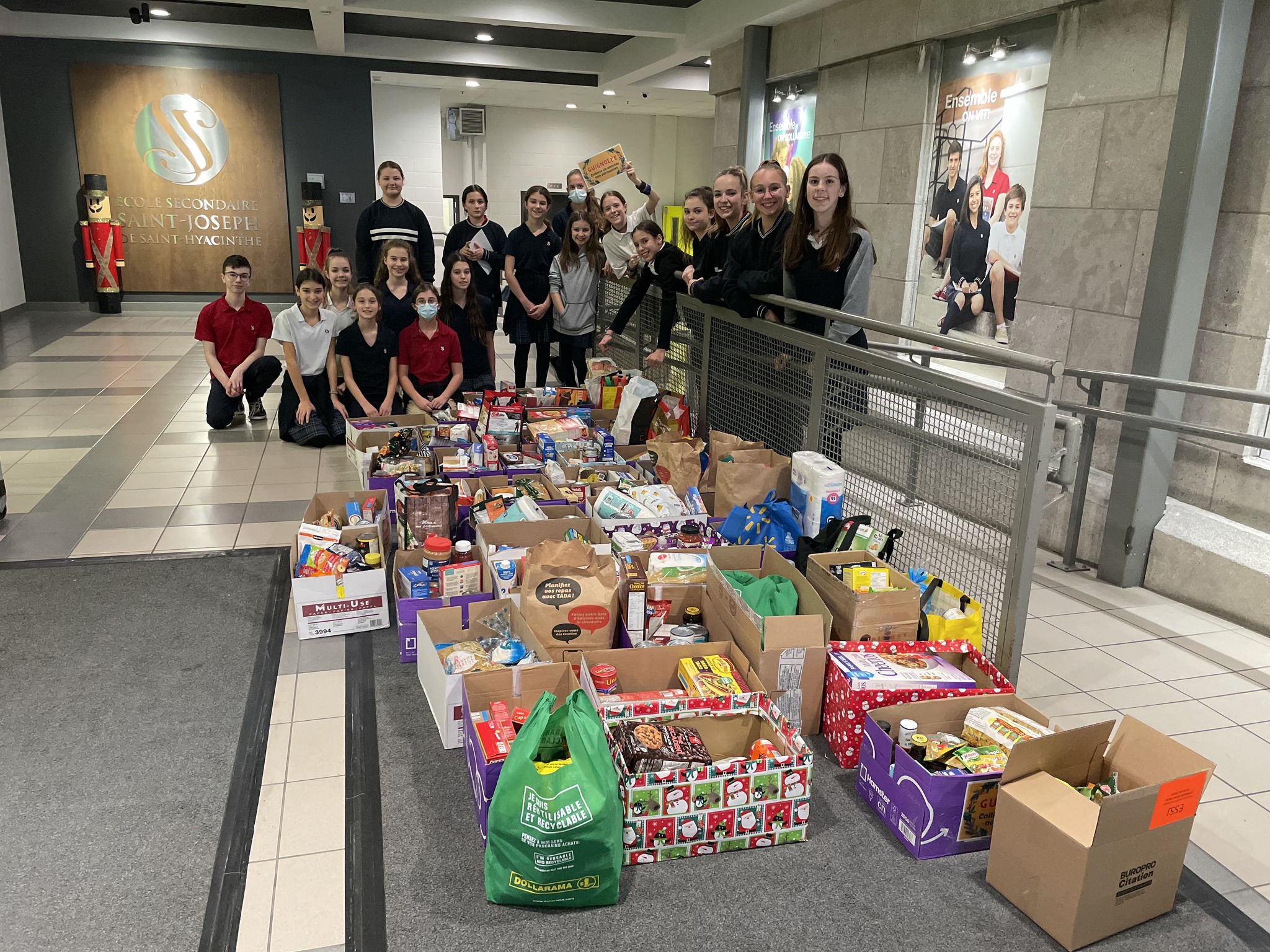 Dans le cadre des festivités de Noël, la grande famille de l’ÉSSJ a donné un grand coup de main à plusieurs personnes qui vivront un Noël plus difficile. Parrainage de 90 enfants des Centres jeunesse de la Montérégie qui recevront un beau cadeau de Noël, collecte de jouets, livres neufs ou en bon état et finalement collecte de denrées non périssables et tri des aliments à la Moisson Maskoutaine.