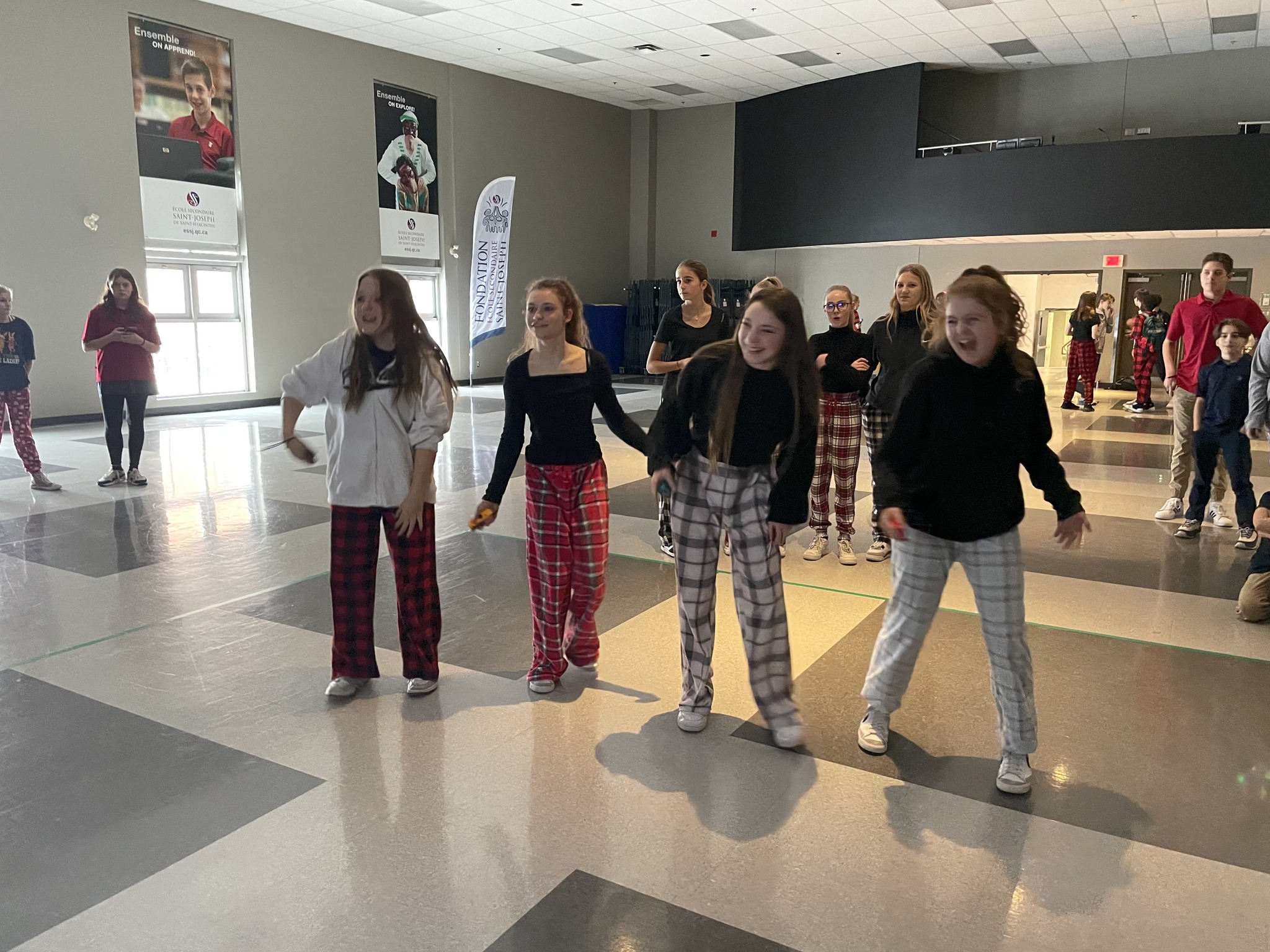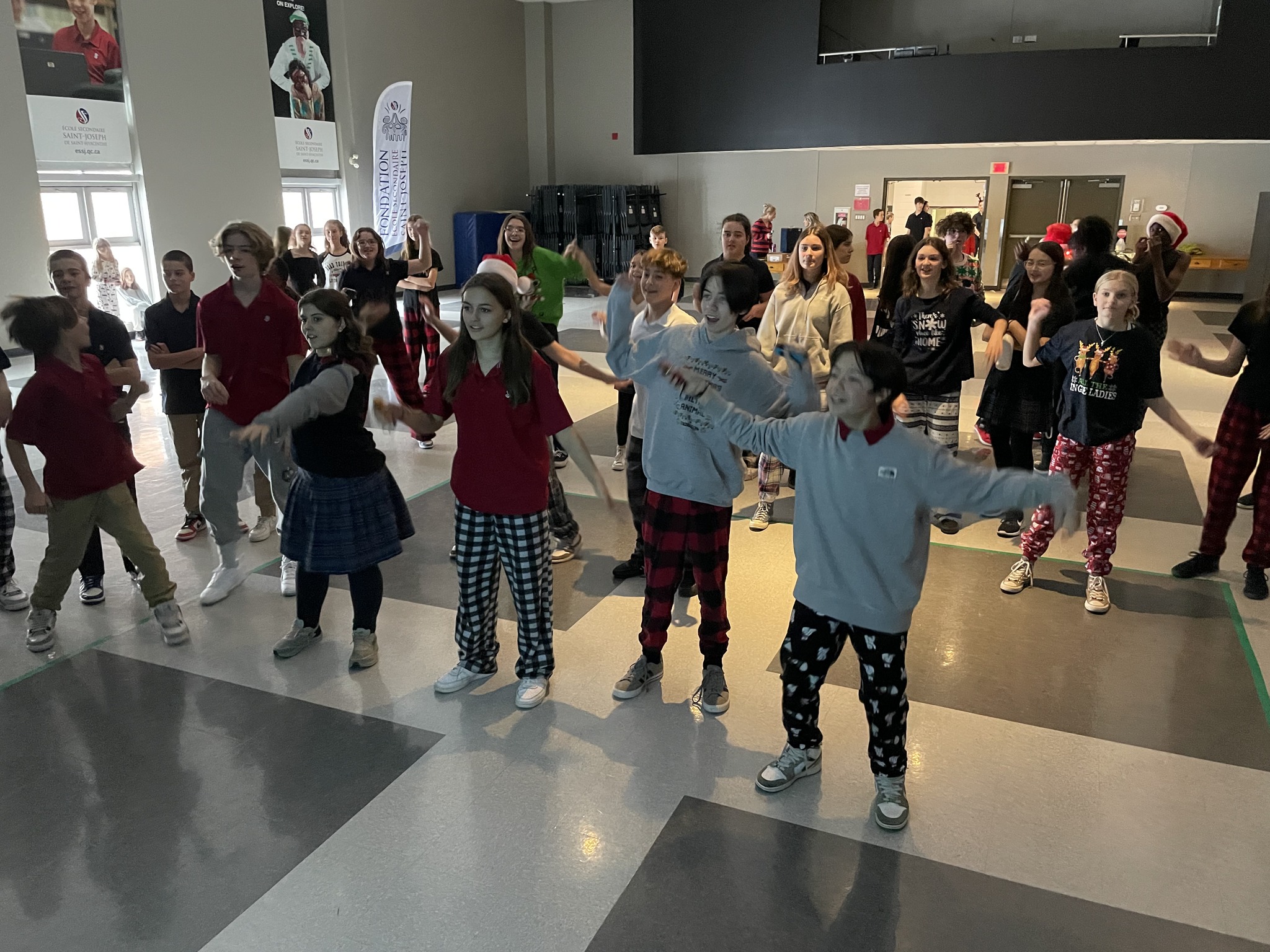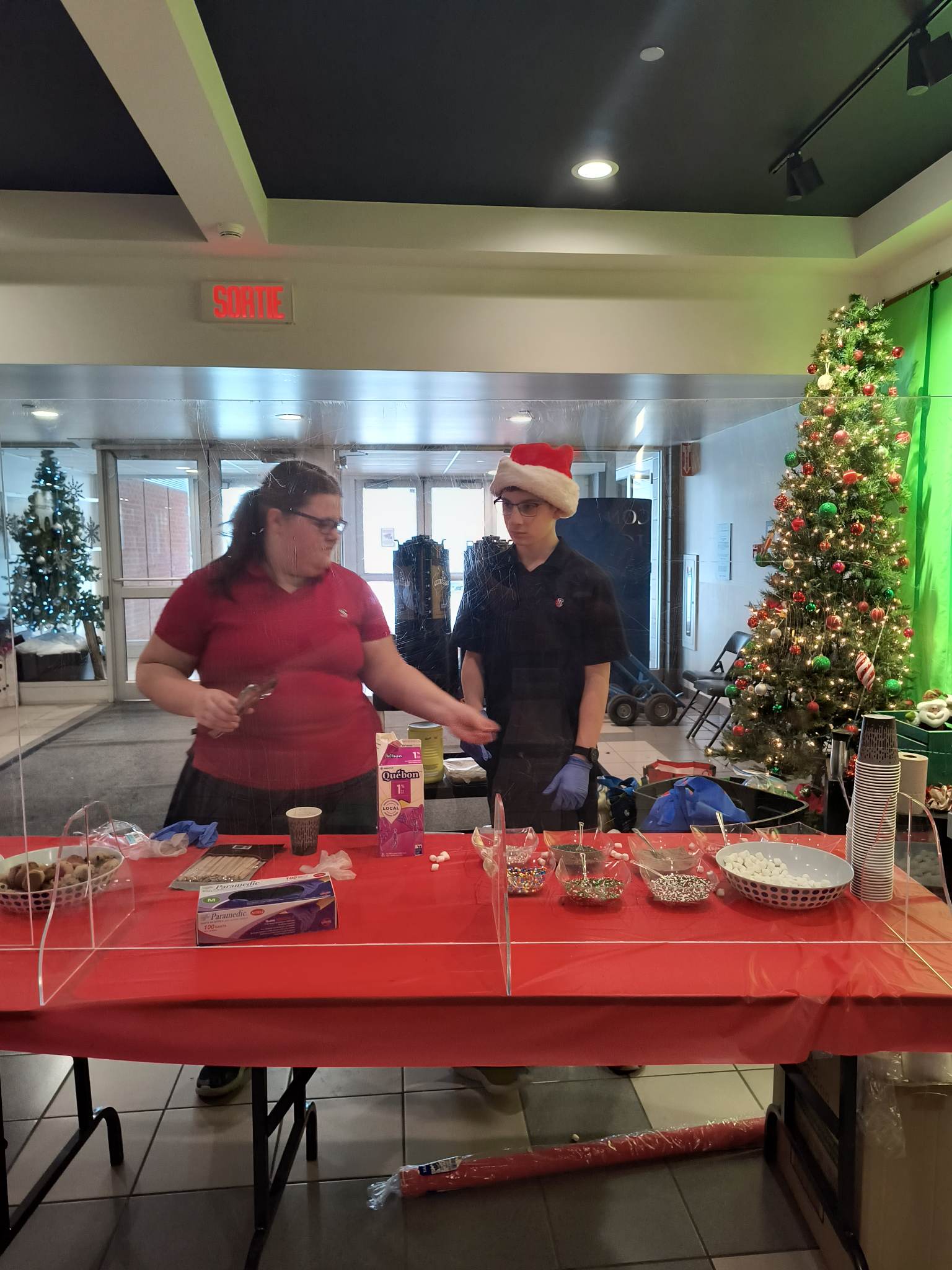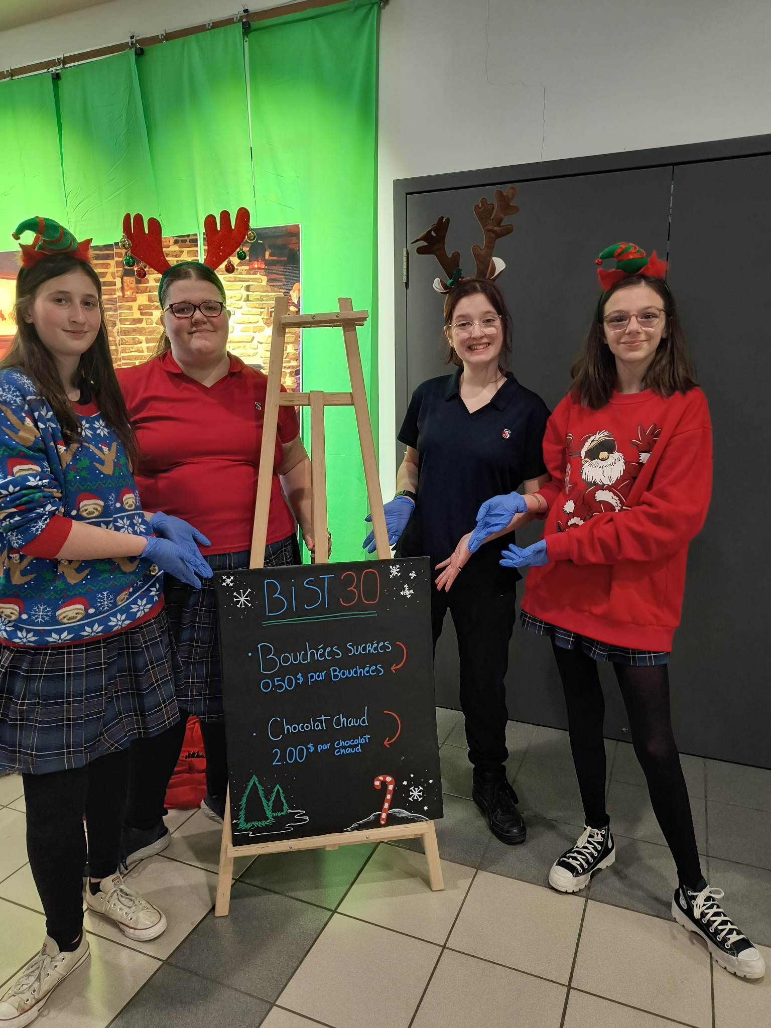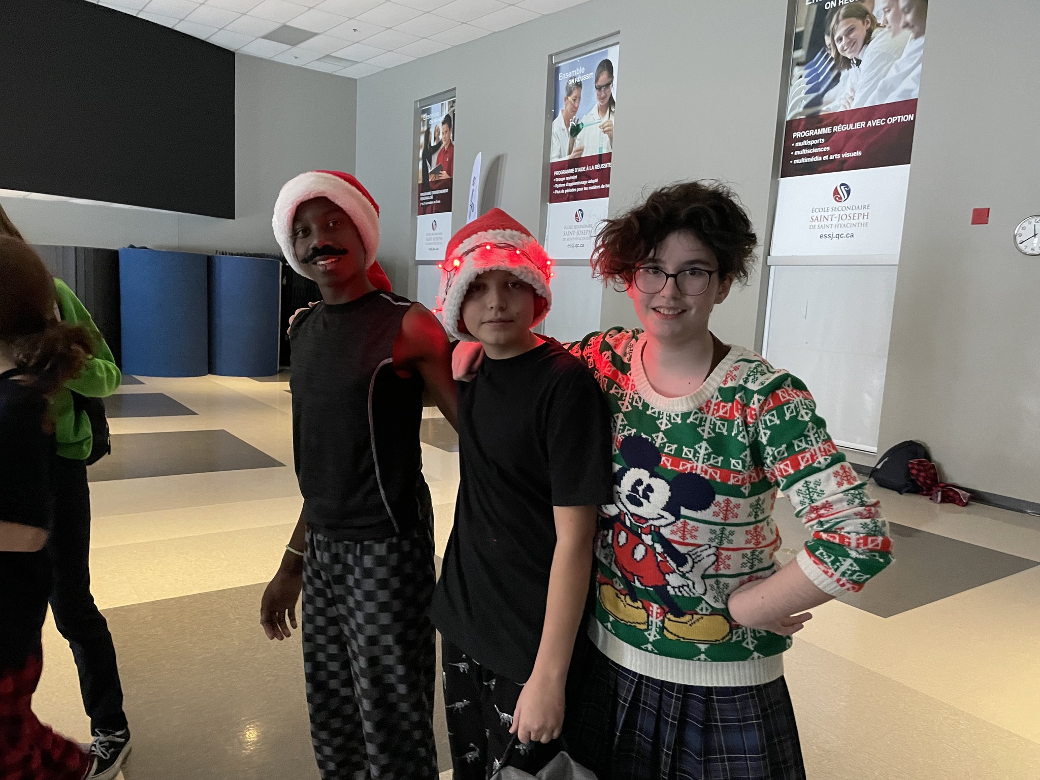 Vendredi dernier, les élèves étaient invités à porter un chandail de Noël ou un pyjama. Une belle journée sous le thème de Noël. Les élèves du groupe 30 ont servi des bouchées sucrées et des  verres de chocolat chaud. Les bouchées avaient été faites par les élèves du groupe 10 et 20 dans le cadre du projet cuisine. Finalement, tous étaient invités à venir sortir leur fou dans une compétition de Just Dance !
