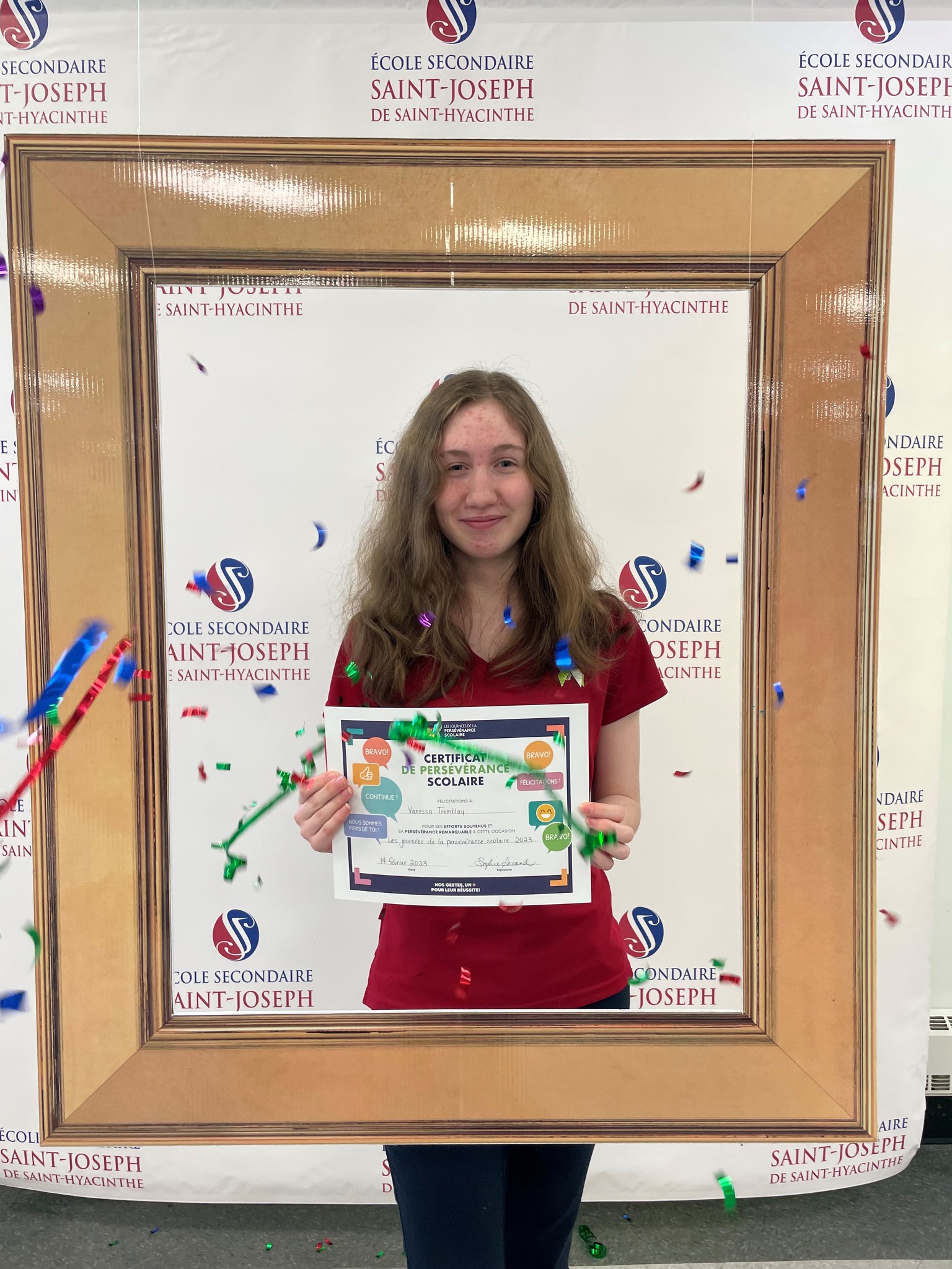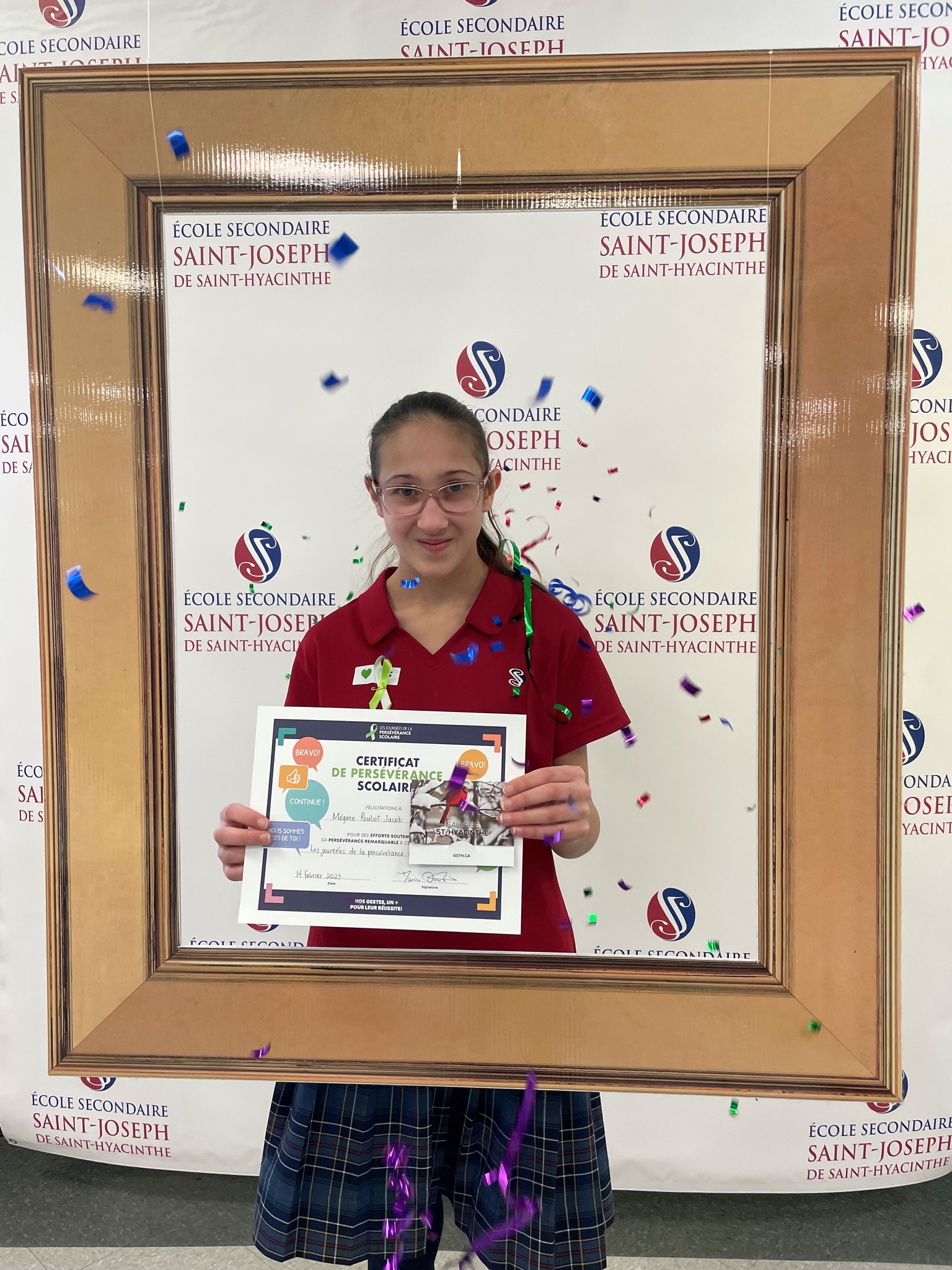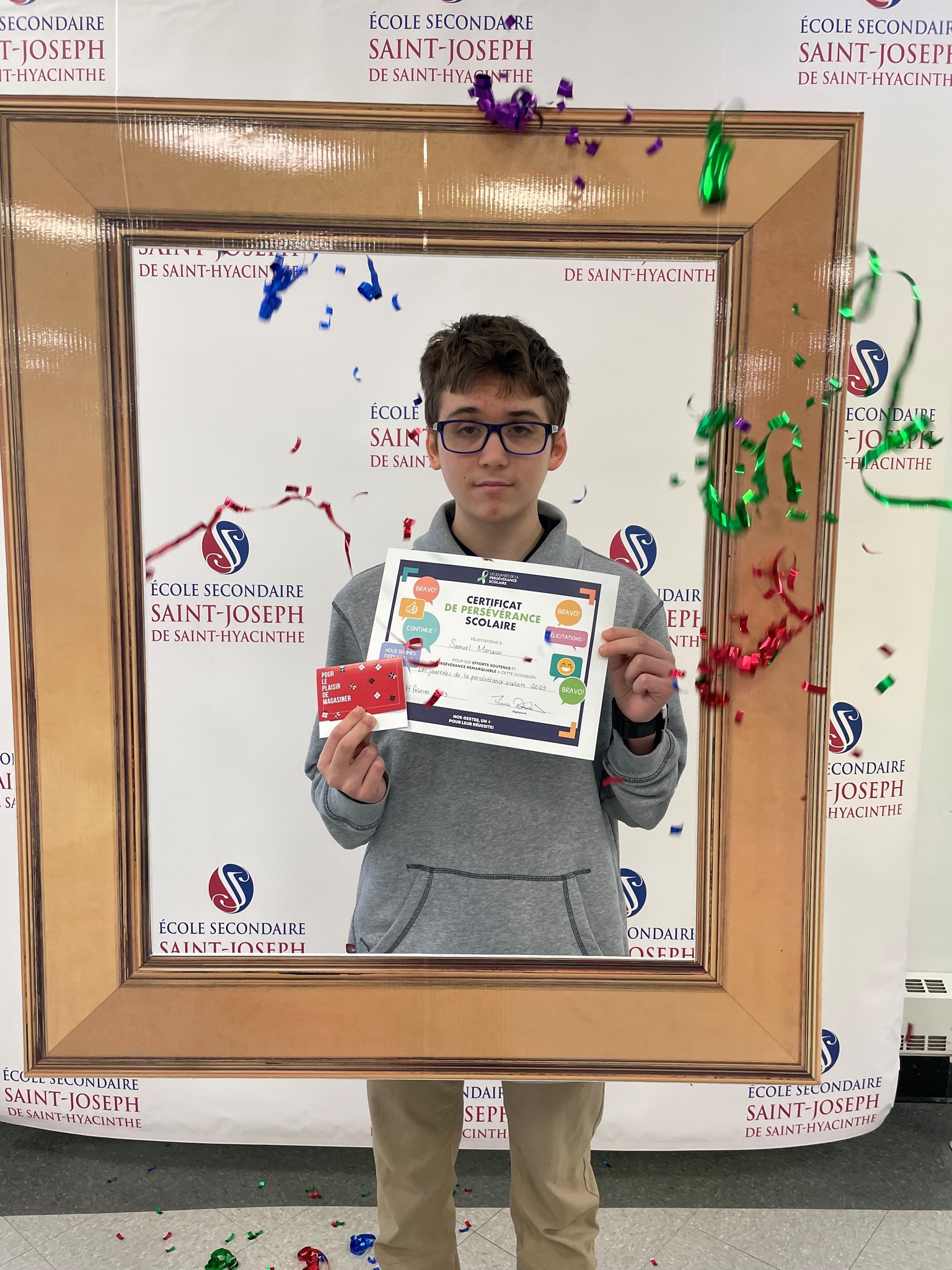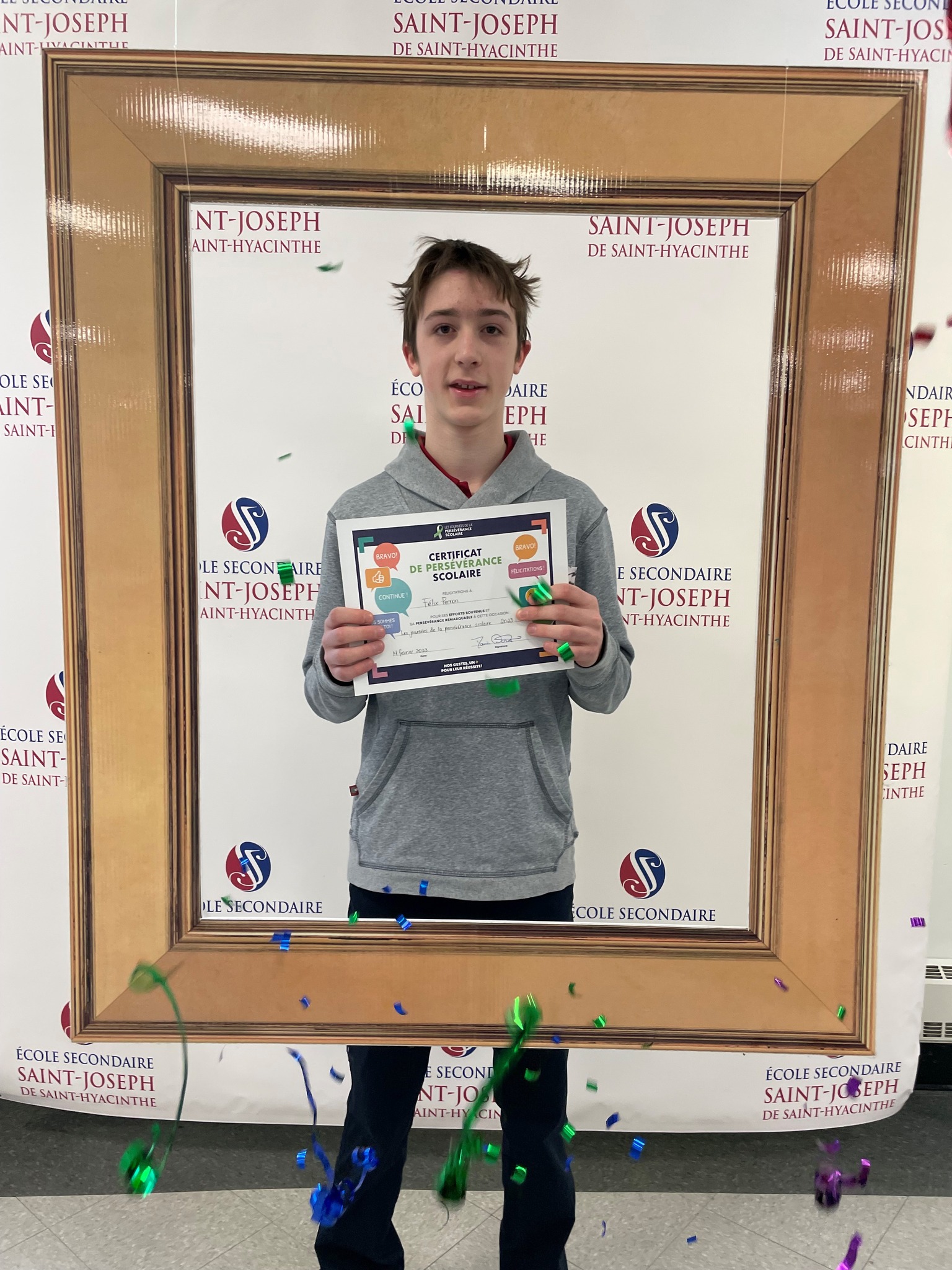 Nous poursuivons maintenant avec les élèves de 2e secondaire. Pour votre résilience et votre capacité d’adaptation, chacun d’entre vous mériterait un certificat, mais comme nous devons choisir, voici les 4 élèves sélectionnés :
