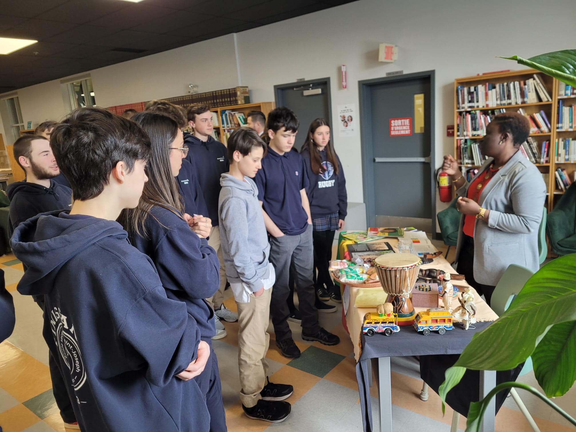 Pour l’occasion, aux périodes 4 et 5, des kiosques ont été installés à la bibliothèque avec des invités dont : un Prêtre, un Imam, un Rabbin, deux intervenantes de l’organisme APEH et des représentants de différentes cultures : l’Algérie, le Sénégal et l’Uruguay. Des membres de notre comité LGBTQAA+ étaient également présents.
