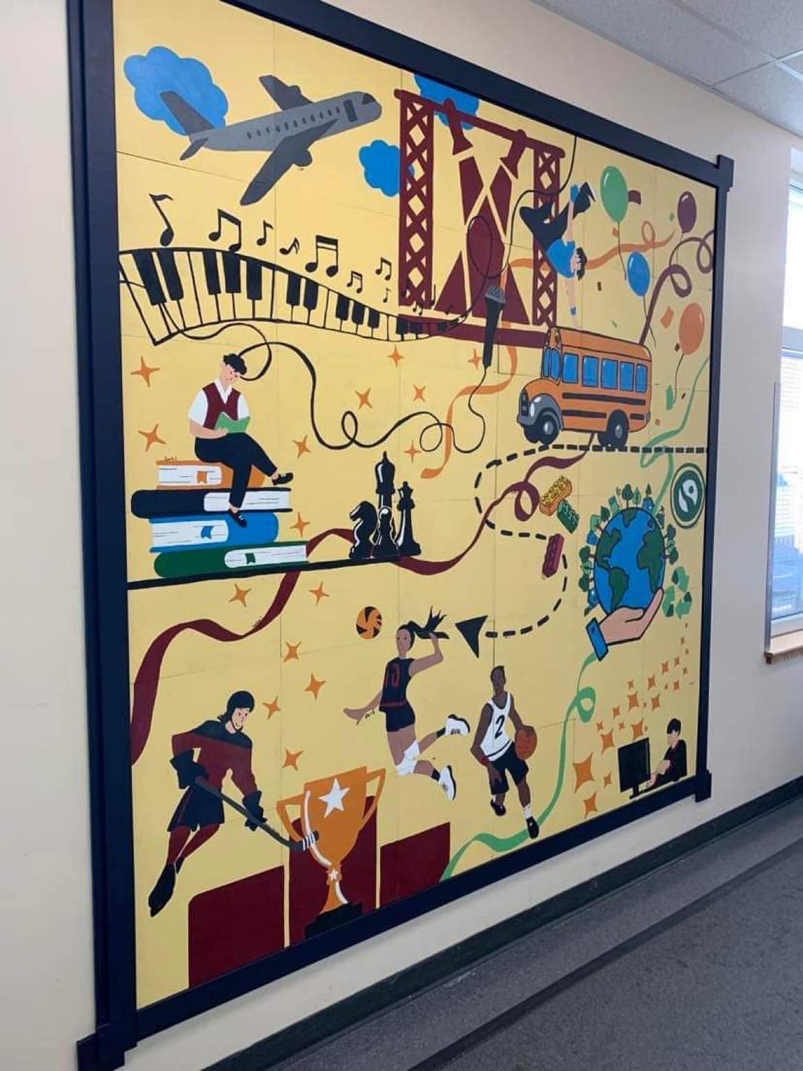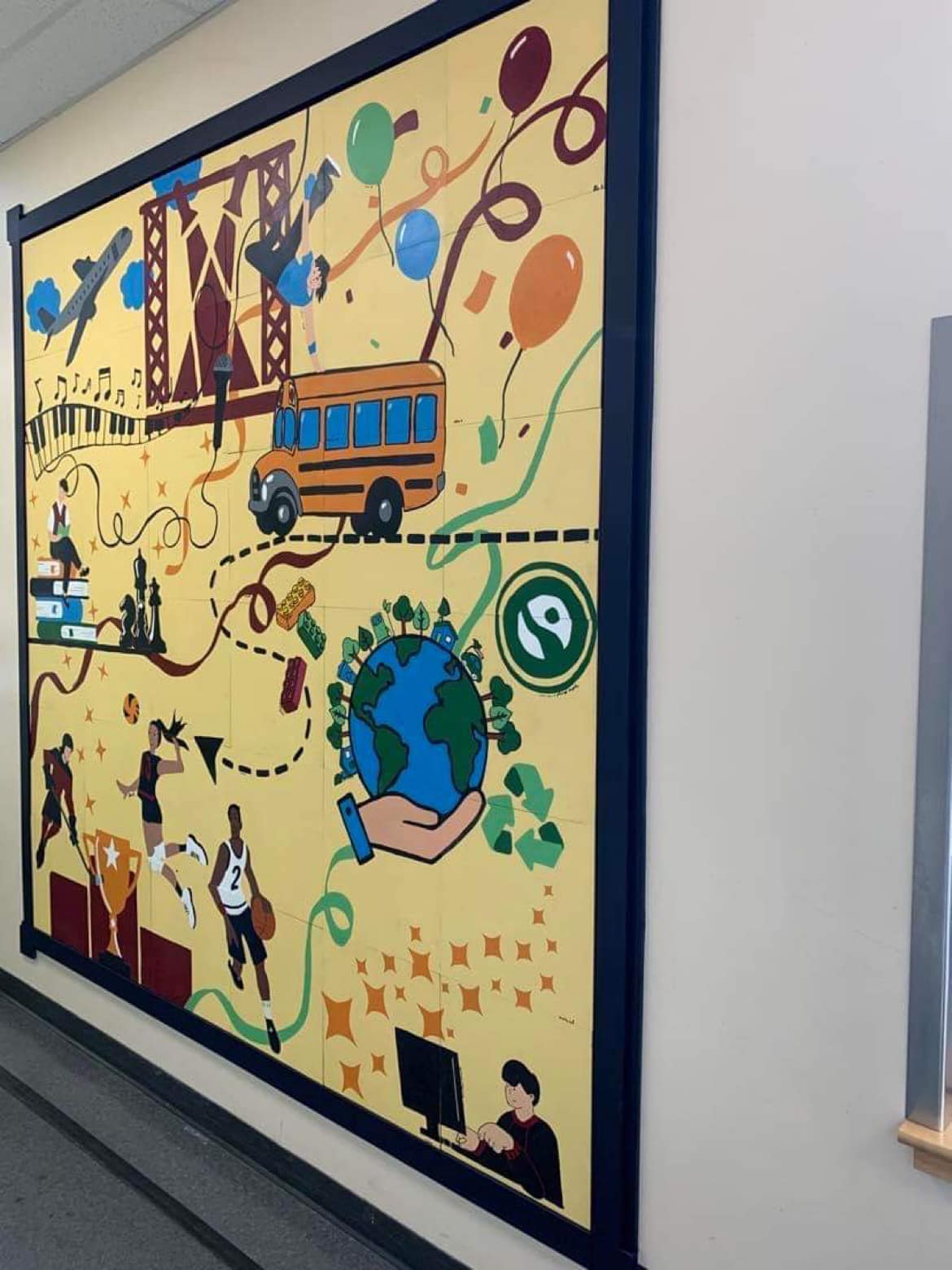 Les élèves de MultiArts de 1re secondaire sont fiers de vous dévoiler leur magnifique murale, une œuvre collective réalisée en avril.