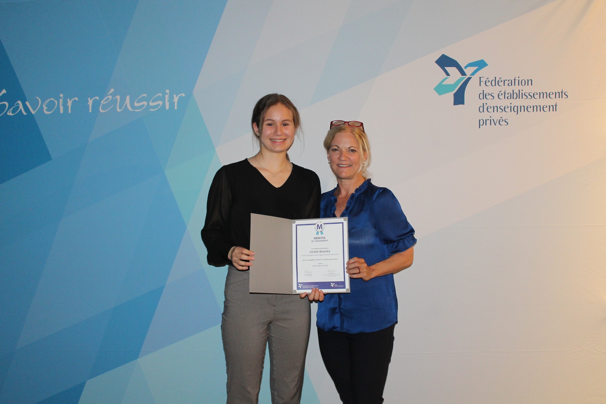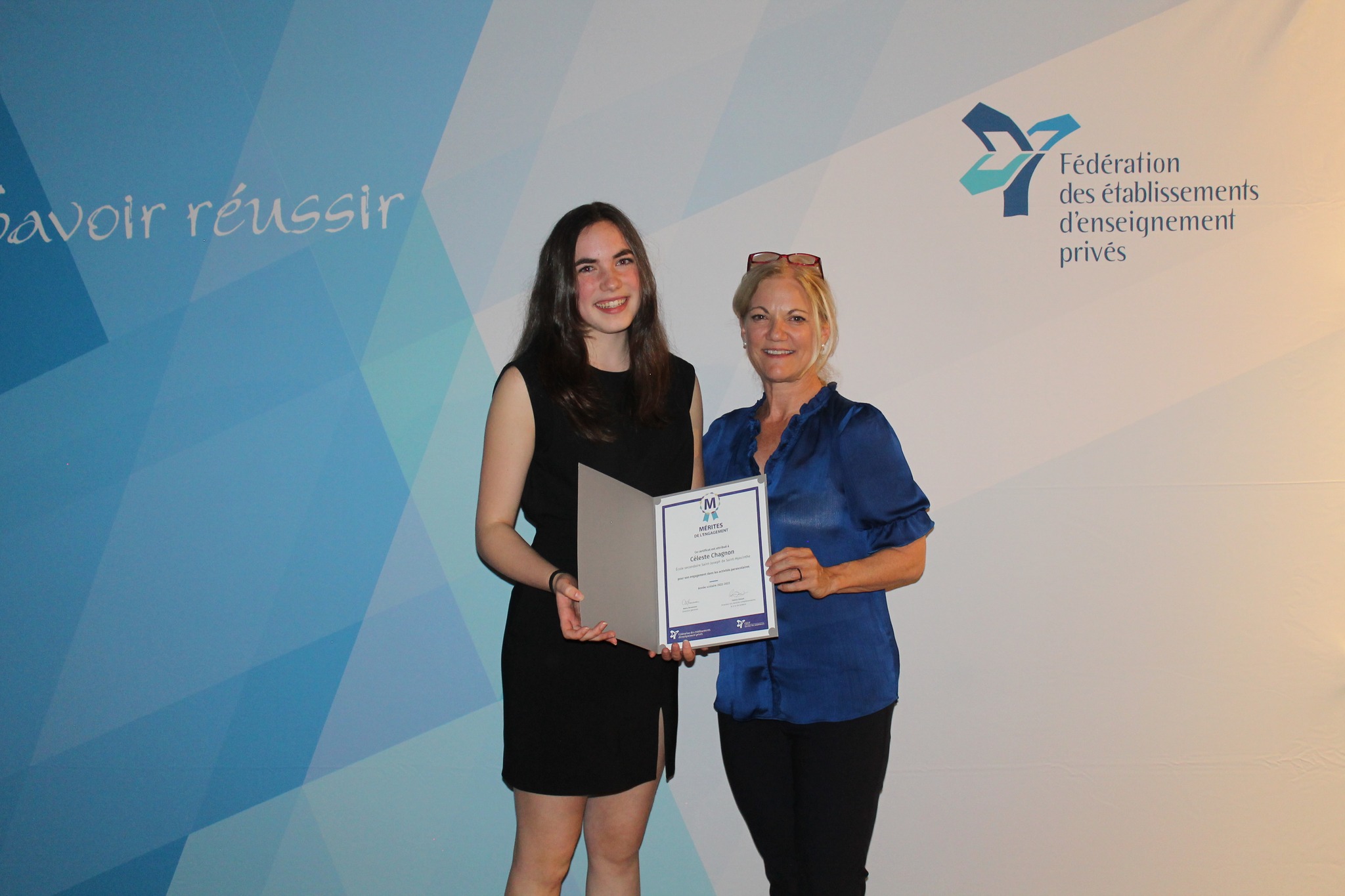 Félicitations à Coralie Beaudry et à Céleste Chagnon, élèves en 4e secondaire qui ont remporté le Prix Mérites de l’engagement scolaire.