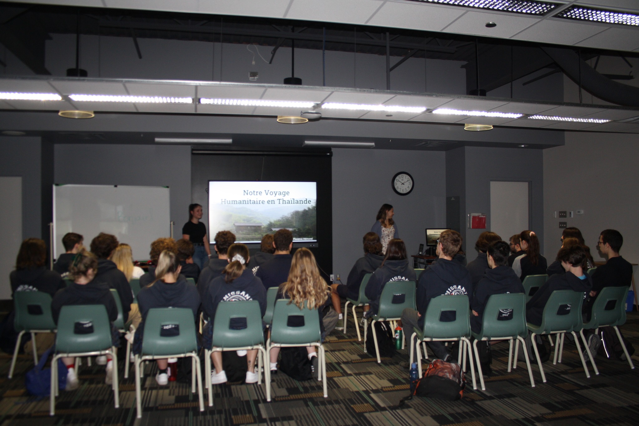 Le 18 mai dernier, dans le cadre du chapitre sur l’aire culturelle orientale, les élèves du groupe d’option géographie culturelle de 5e secondaire ont eu le privilège d’assister à la conférence de deux anciennes de l’ÉSSJ : Sarah Dozois et Florence Émond. En 2016, alors qu’elles étaient en 4e secondaire, Sarah et Florence ont participé au stage humanitaire en Thaïlande. Elles nous ont donc partagé leurs expériences, leurs réactions, leurs joies et leurs réflexions sur l’expérience de coopérante, mais surtout sur la culture thaïlandaise. Nous avons pu en apprendre un peu plus sur les coutumes de ce pays à la fois traditionnel, moderne, coloré et spirituel.